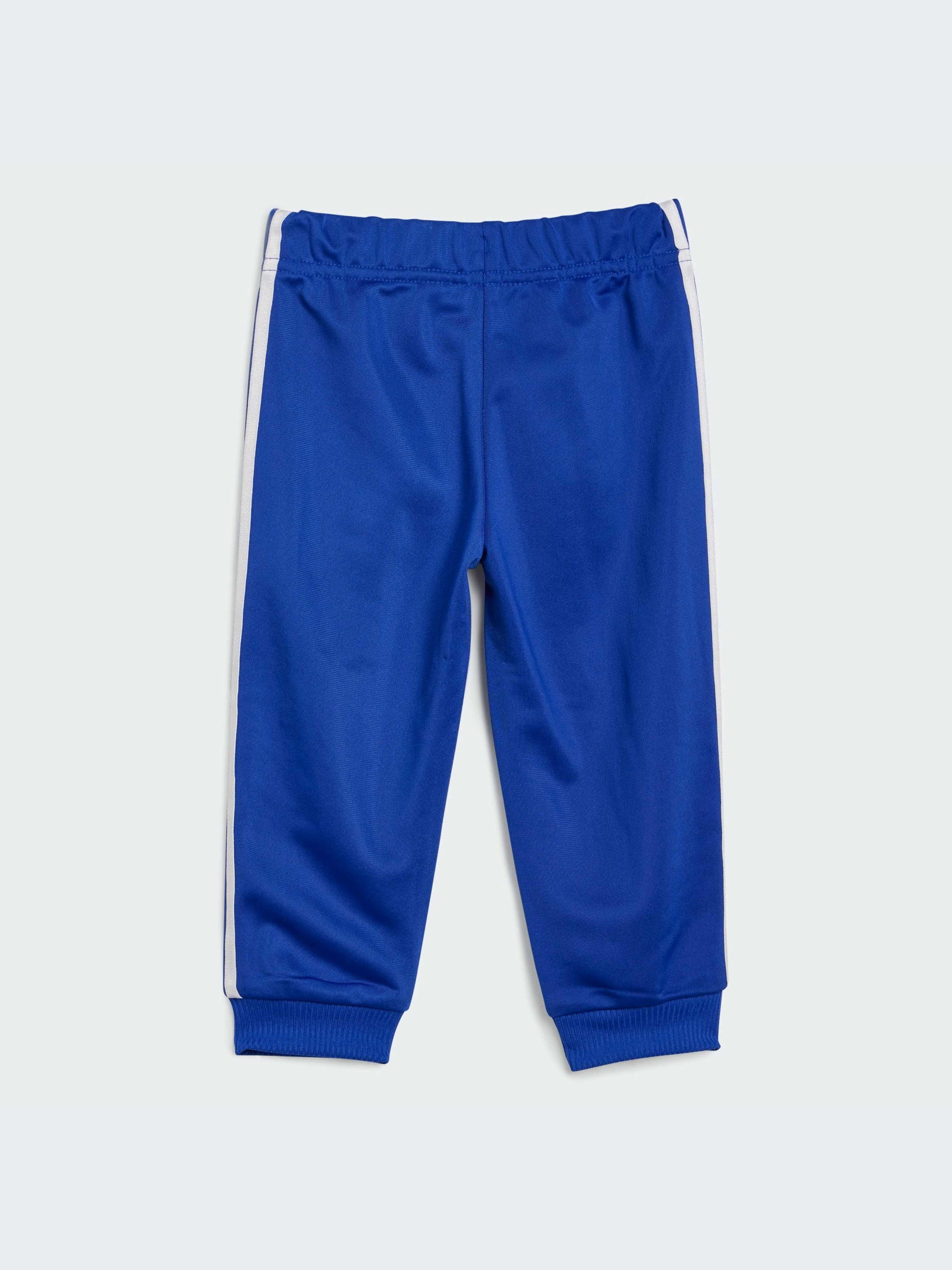 В этом спортивном костюме adidas для детей можно легко двигаться. Он не только удобен, но и привлекает внимание. Фирменный принт и три полоски по бокам штанин - это характерный стиль adidas. Мягкая ткань позволяет детям чувствовать себя комфортно, когда они идут в игровую группу или собираются послушать сказку. Твой малыш будет самым стильным ребенком в округе. Этот продукт изготовлен на 100% из переработанных материалов. Повторное использование уже созданных материалов помогает нам сократить количество отходов и зависимость от ограниченных ресурсов, а также уменьшить воздействие производимой нами продукции на окружающую среду.