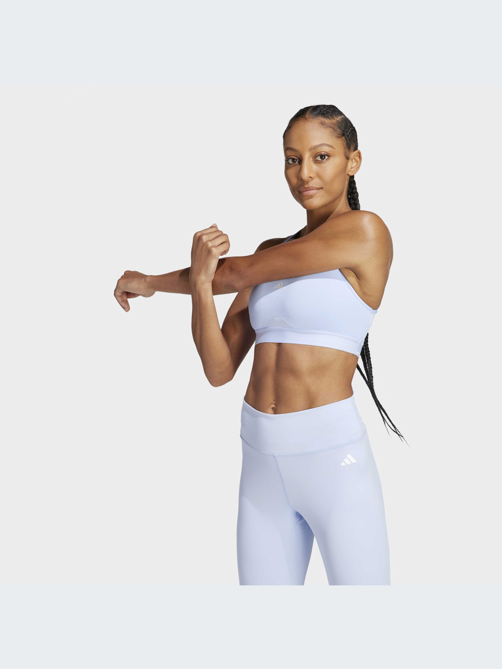 Капли пота не должны тебя отвлекать. Поэтому тренируйся в этом спортивном бра adidas и думай только об упражнениях. Модель выполнена из дышащей ткани, гладкой и прохладной на ощупь. Впитывающий влагу материал с технологией AEROREADY сохраняет ощущение комфорта, а дышащие сетчатые вставки усиливают вентиляцию. Продолжай совершенствоваться. Именно для этого и был создан спортивный бра Powerreact.