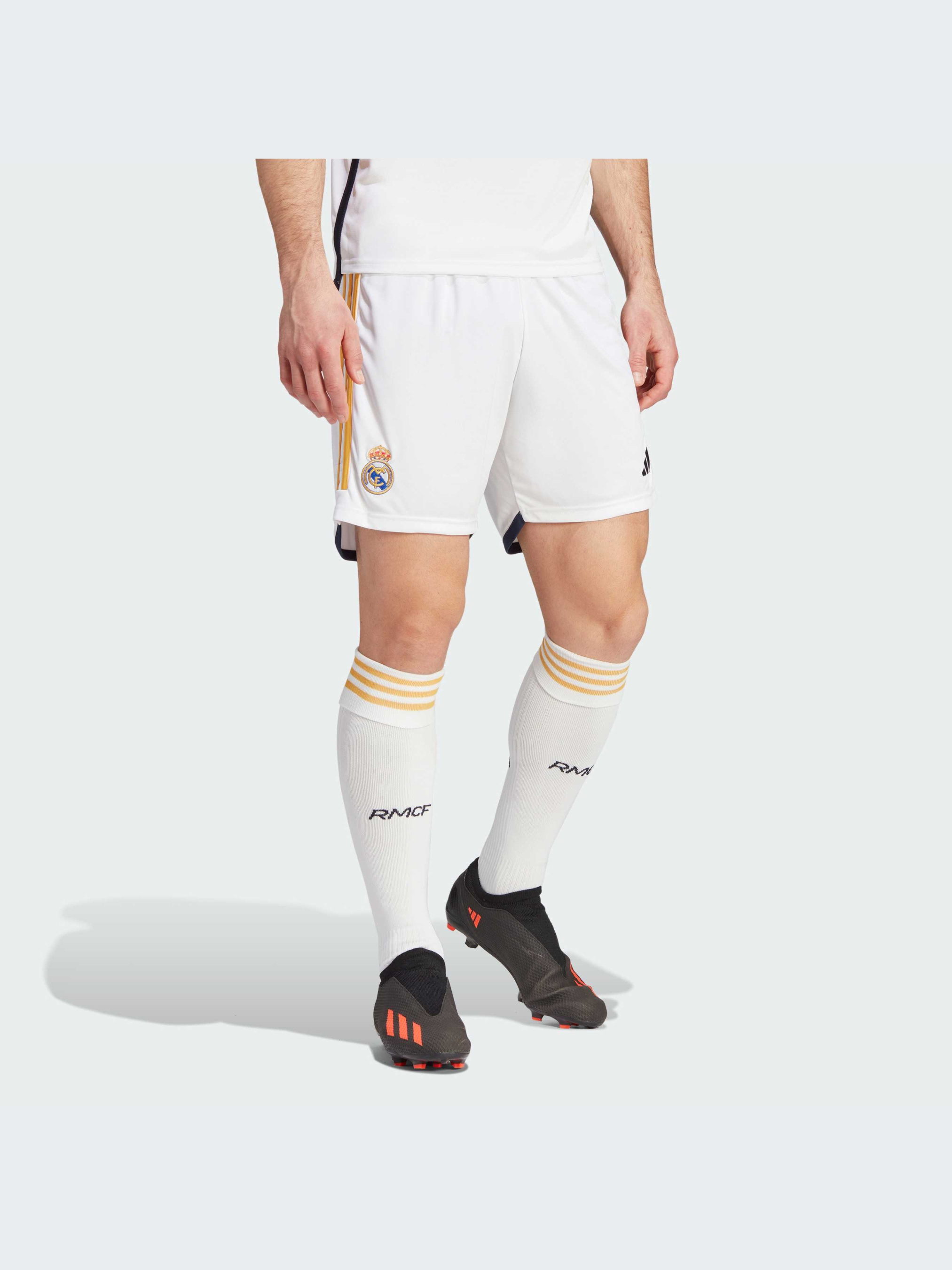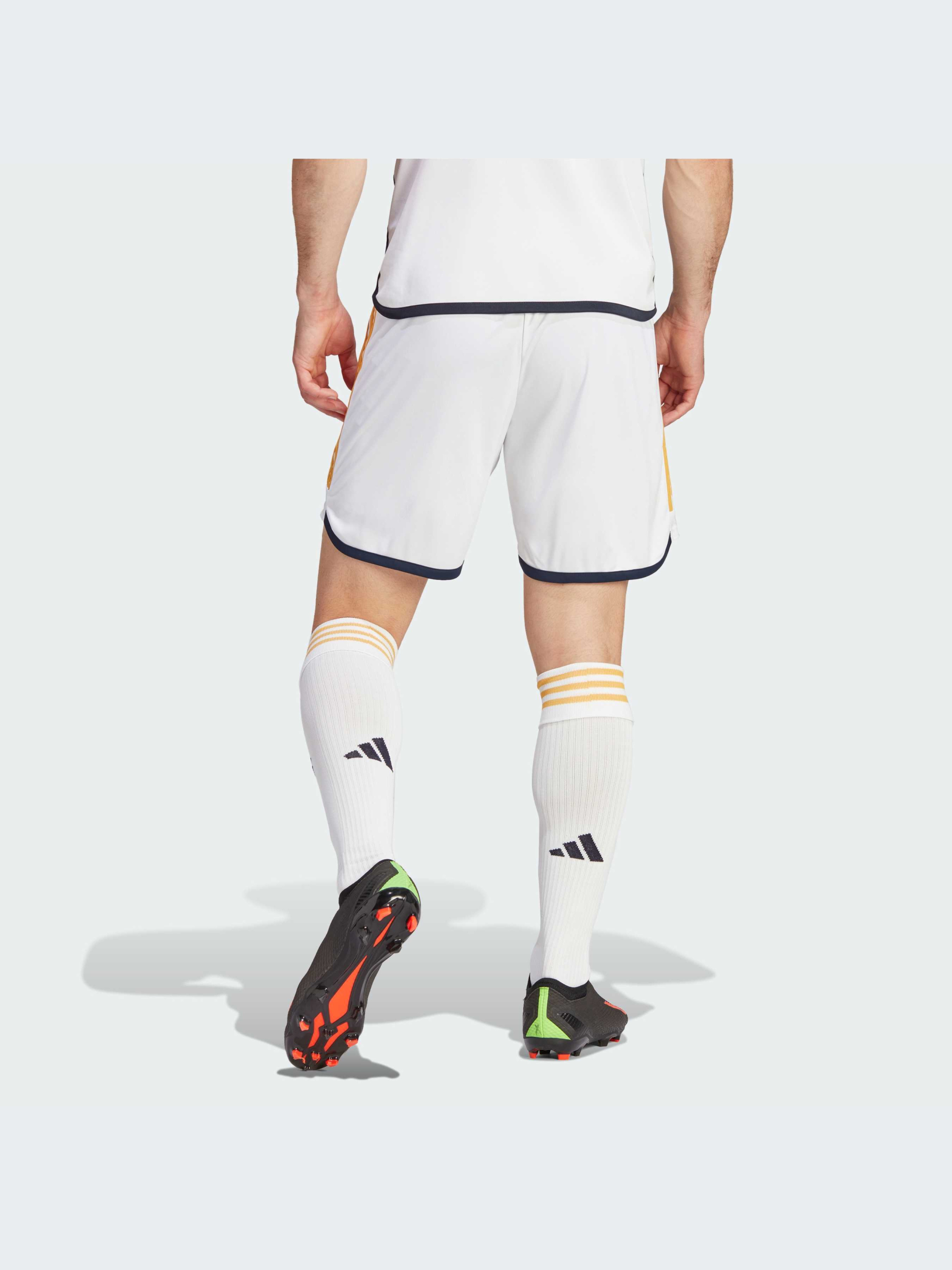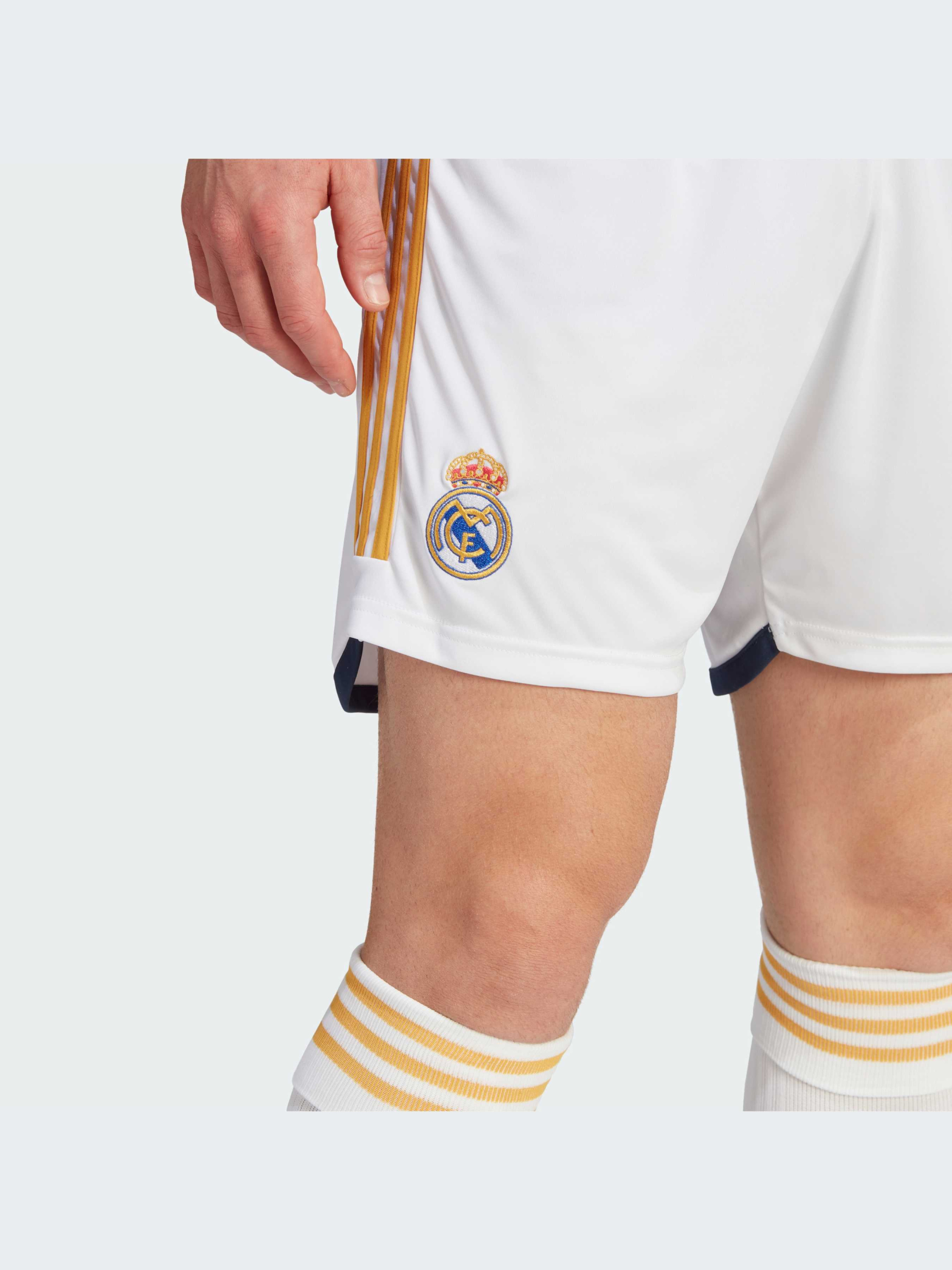 Торжество истории футбольной эпохи. Эти шорты adidas Real Madrid, являющиеся частью классического домашнего комплекта, украшены вытканным клубным значком и знаменитыми белыми цветами. Созданные для болельщиков клуба, они обеспечивают комфорт благодаря мягкой и гладкой ткани. Модель на 100% состоит из переработанных материалов и представляет одно из наших решений по сокращению пластиковых отходов.