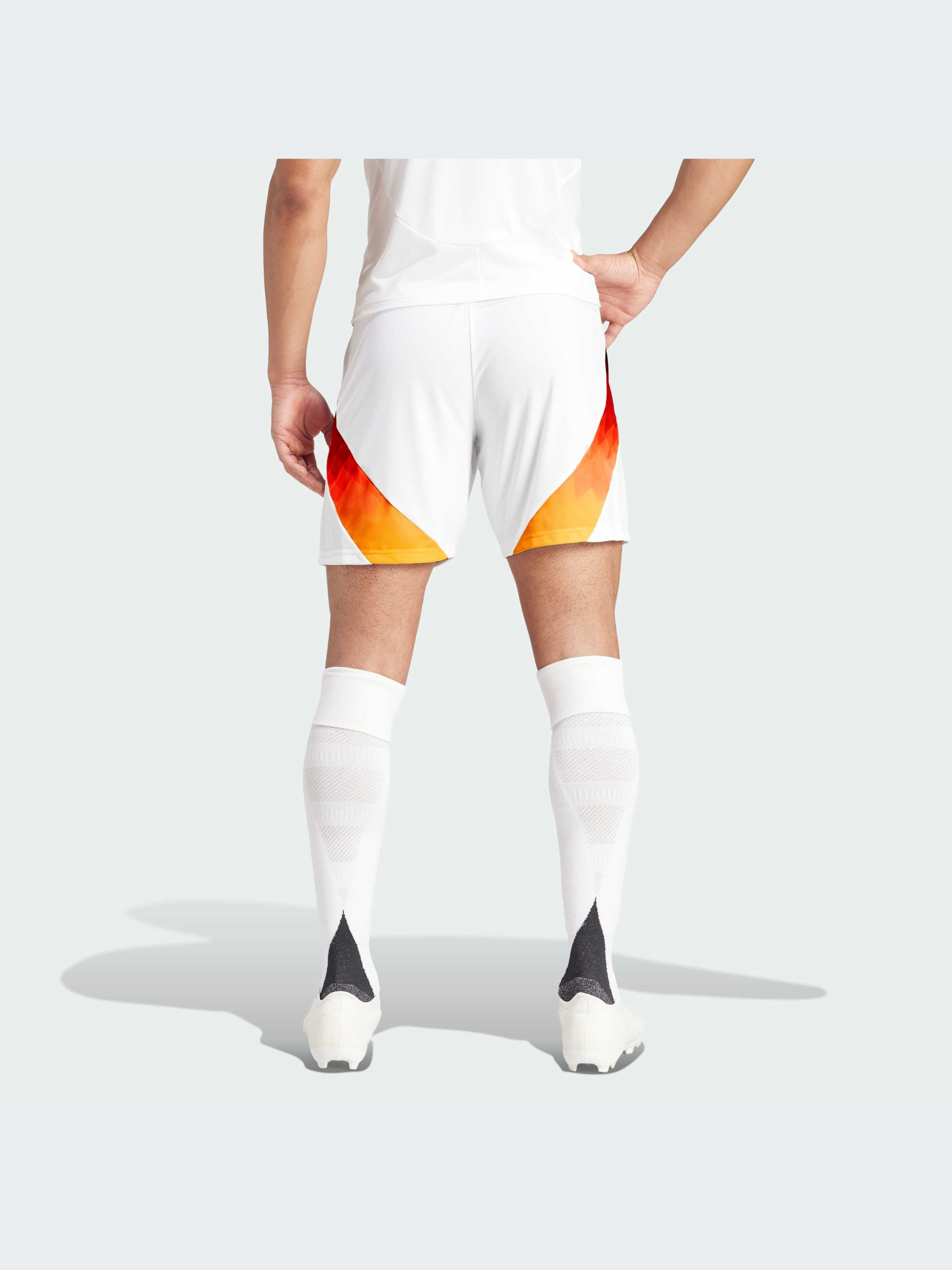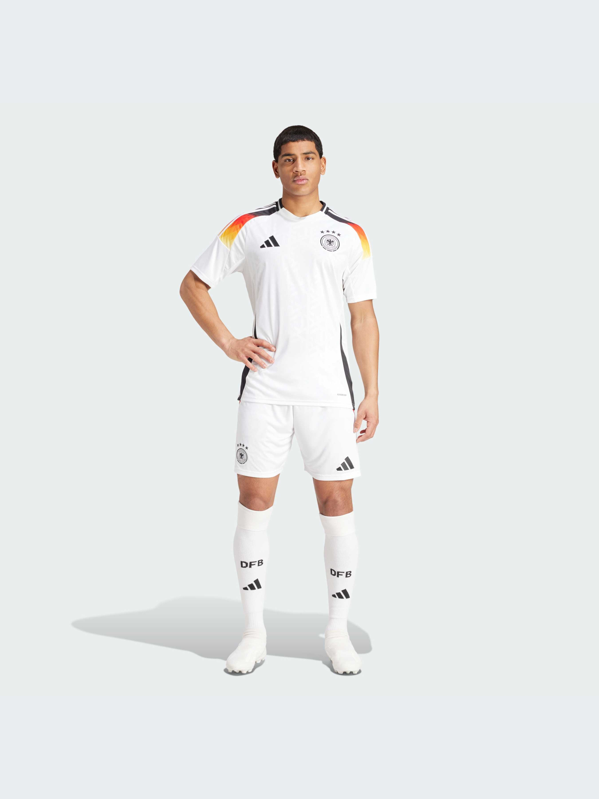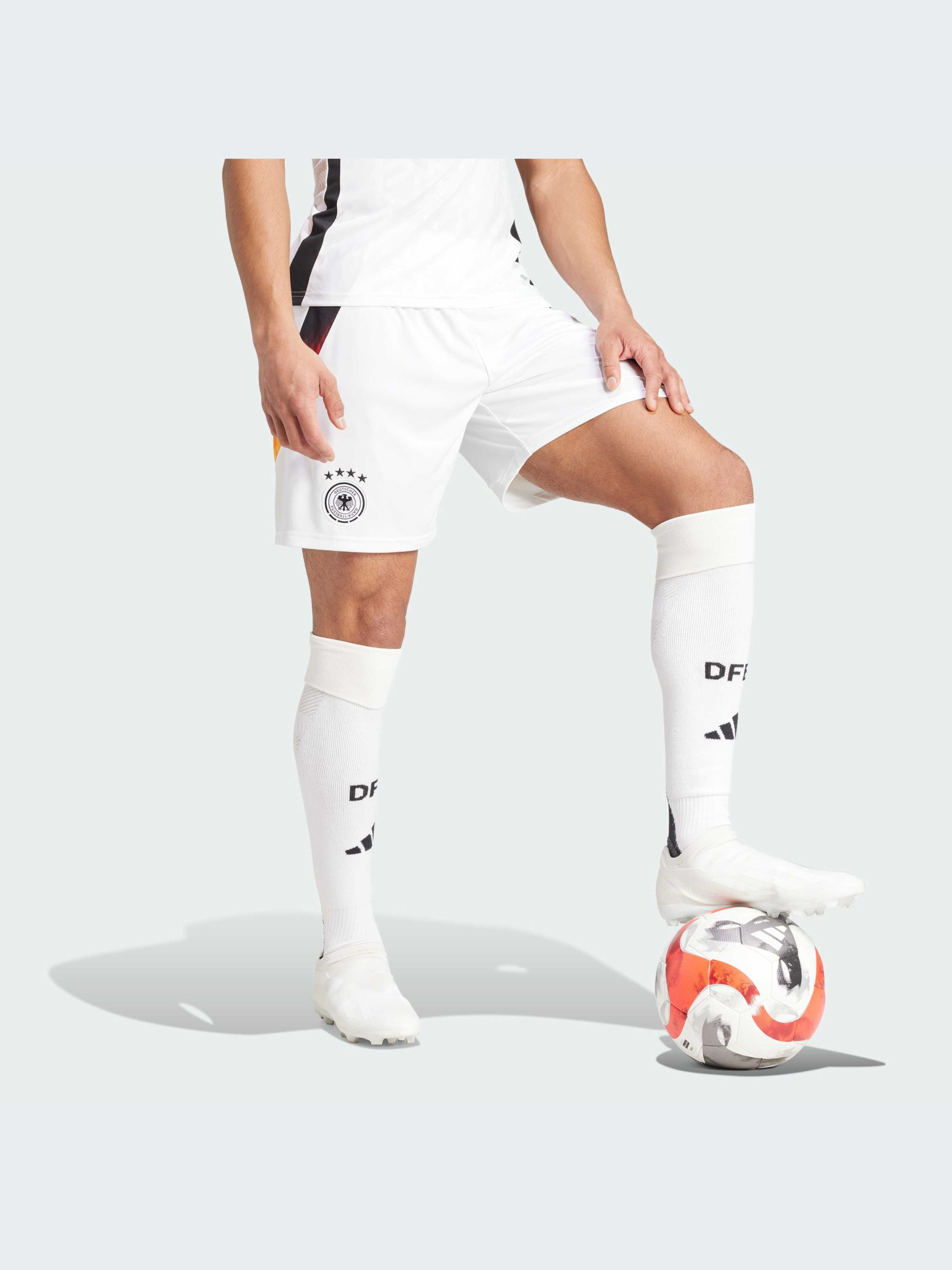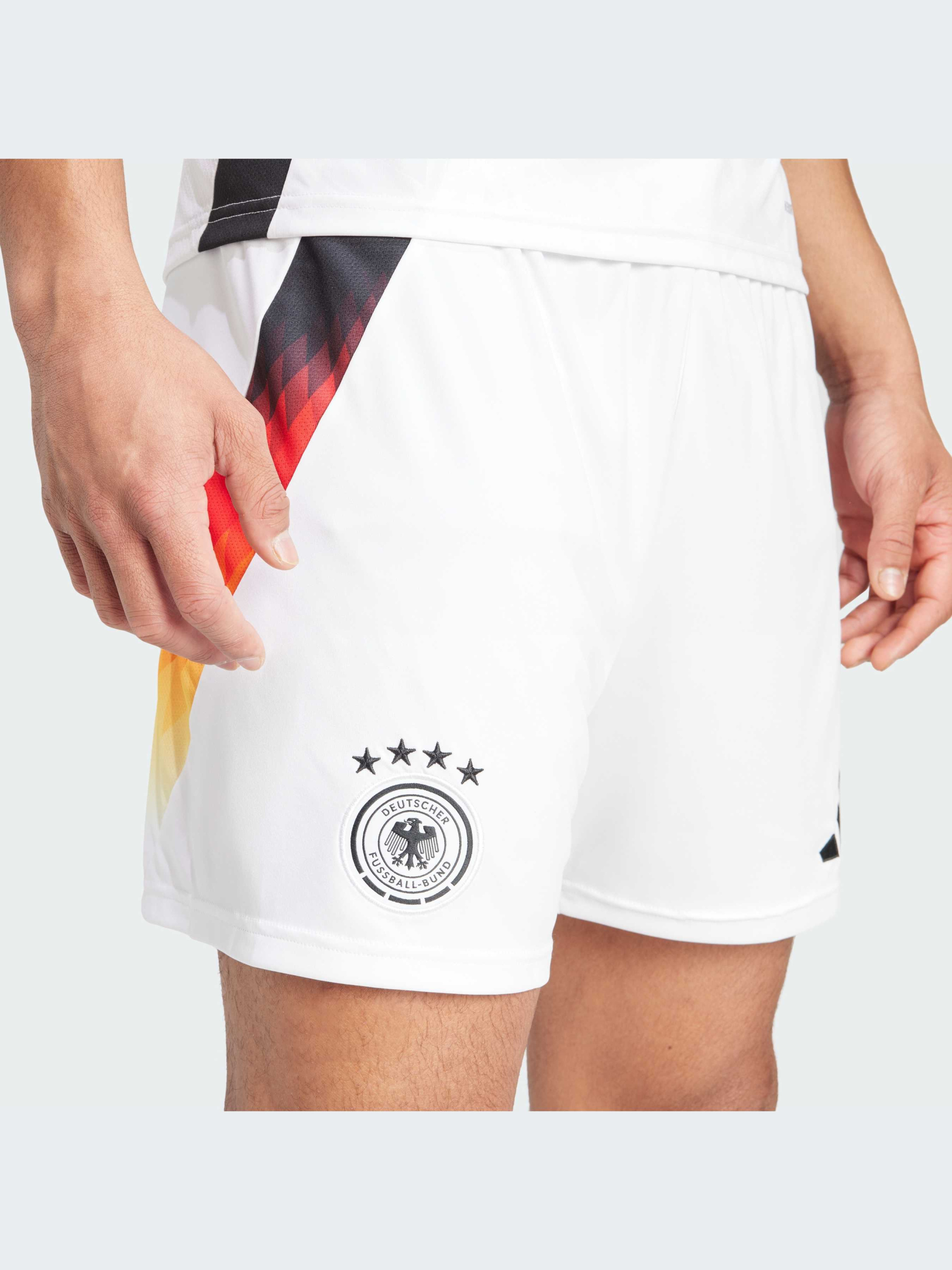 Характеристики AEROREADY Боковые сетчатые вставки Стандартный крой Ткань интерлок: 100% переработанный полиэстер Эластичный пояс на завязках-шнурках Тканый герб Германии Описание Представляй свою нацию с гордостью. Эти футбольные шорты adidas являются частью домашнего комплекта, объединяющего символы Германии. На них нанесена графика в цветах национального флага, а по бокам выделяется рисунок в виде орлиного пера. Влагоотводящая система AEROREADY помогает болельщикам чувствовать себя комфортно, выражая свою поддержку. Этот продукт изготовлен на 100% из переработанных материалов. Повторное использование уже созданных материалов помогает нам сократить количество отходов и зависимость от ограниченных ресурсов, а также уменьшить воздействие производимой нами продукции на окружающую среду. Идет размер в размер. Мы рекомендуем заказать модель твоего обычного размера.