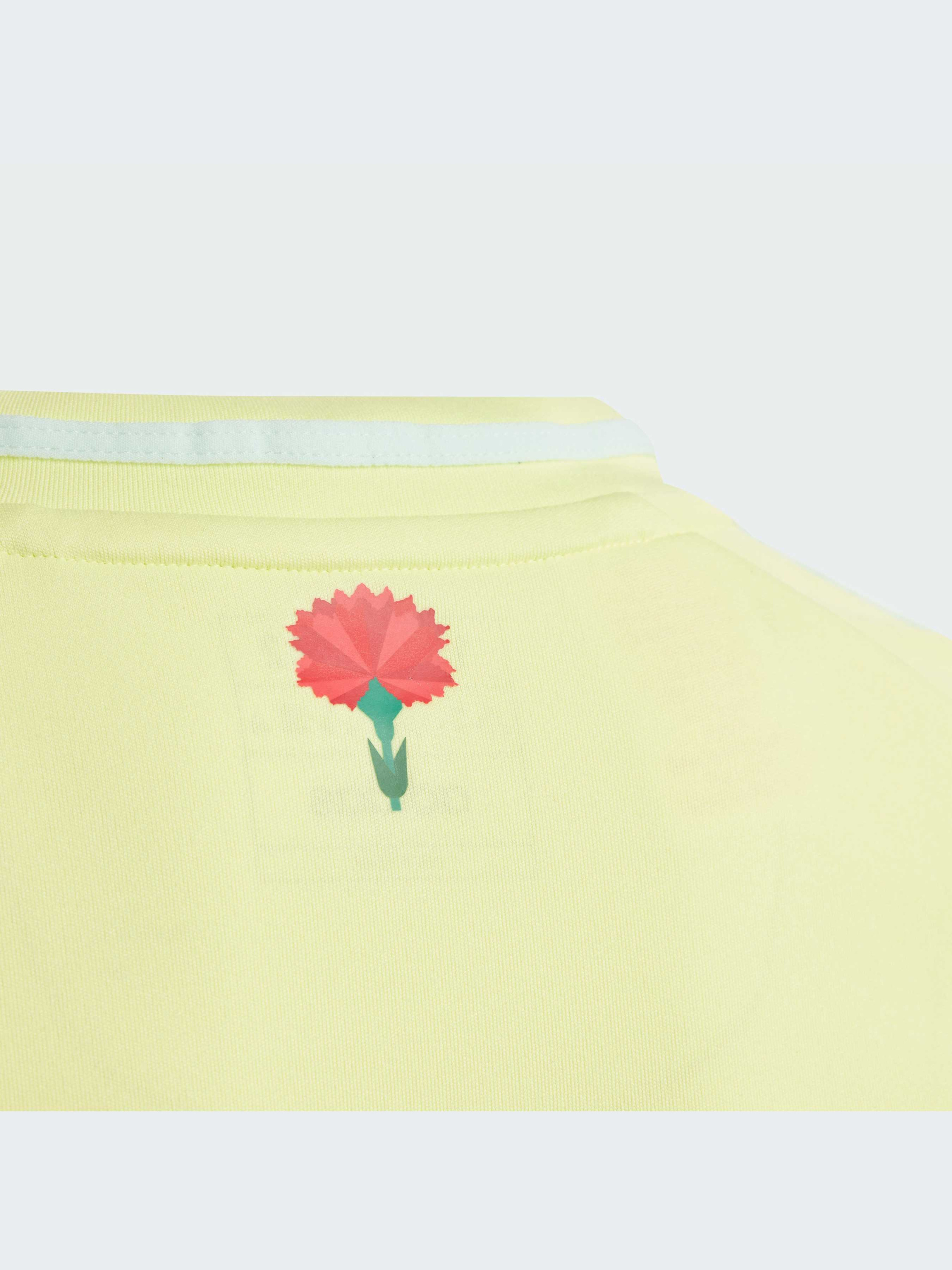Цветущая на солнце. Вдохновленная символами испанского лета, эта выездная футболка adidas для подростков бросает свежий свет на твой футбольный стиль с тканым значком команды и гвоздикой. Созданная для того, чтобы юным болельщикам было комфортно, она сочетает в себе мягкую ткань и влагоотводящий материал AEROREADY. Этот продукт изготовлен на 100% из переработанных материалов. Повторное использование уже созданных материалов помогает нам сократить количество отходов и зависимость от ограниченных ресурсов, а также уменьшить воздействие производимой нами продукции на окружающую среду.