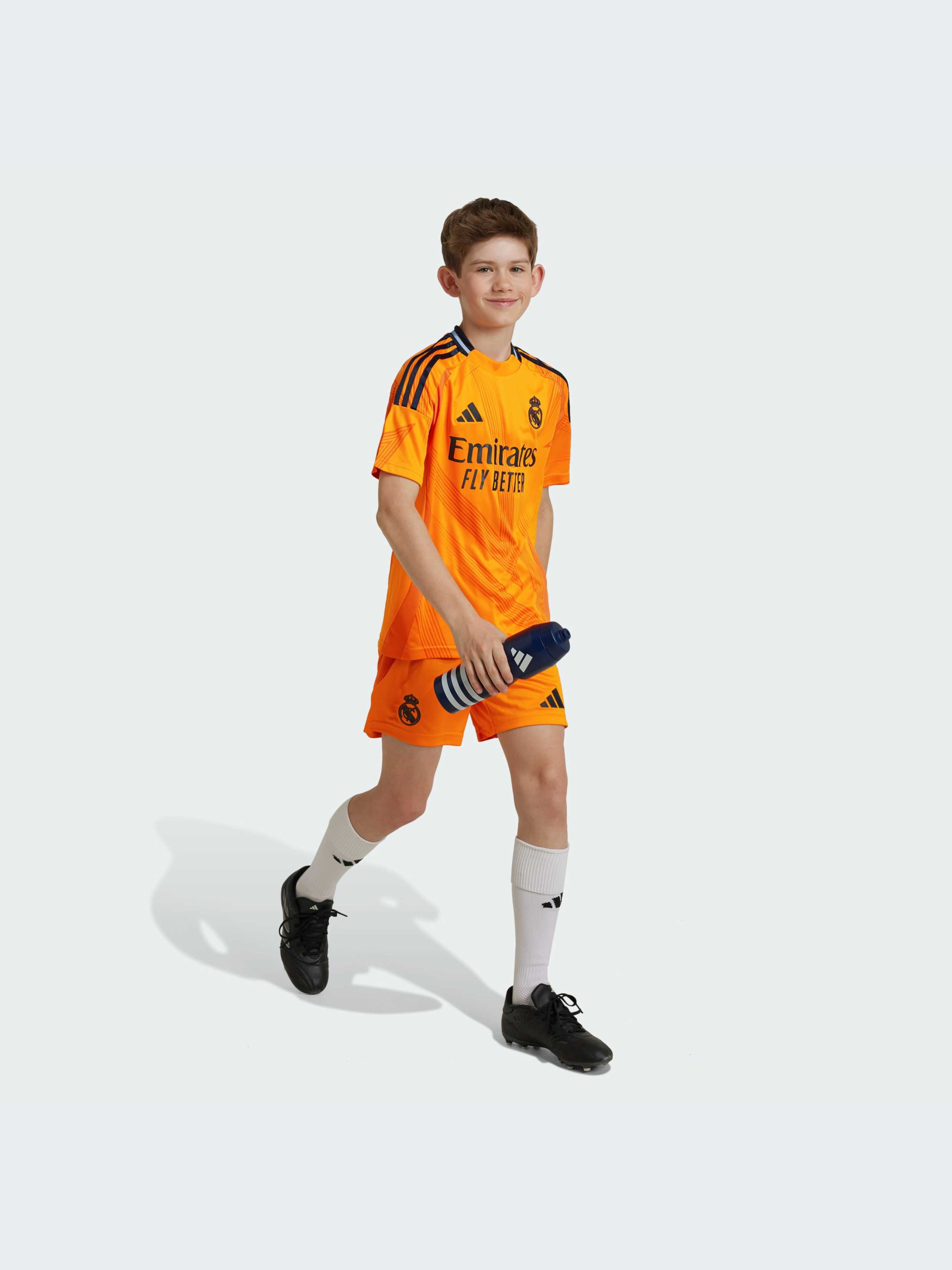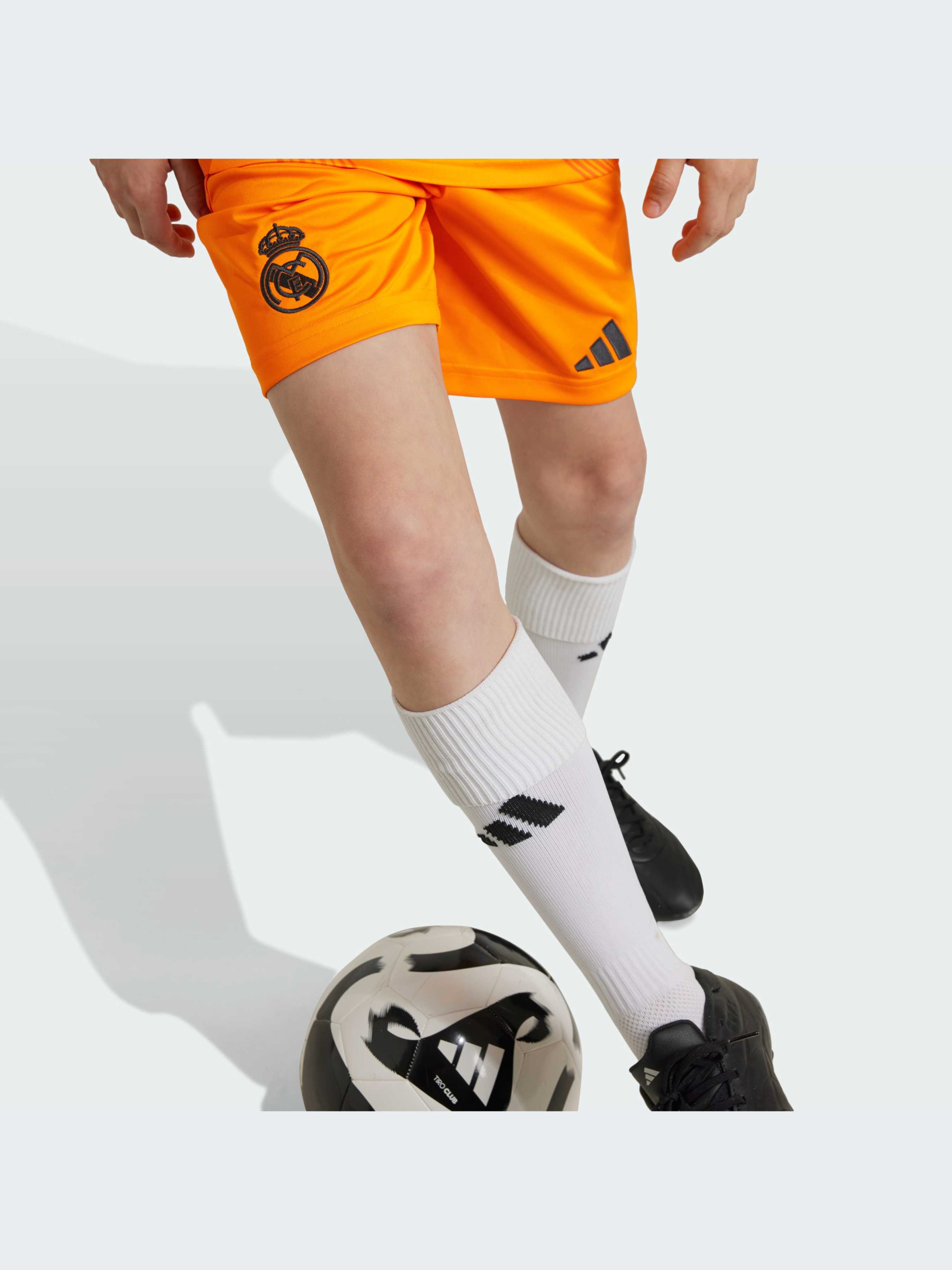 Встречай блестящее будущее "Реал Мадрида" в подростковых футбольных шортах adidas, выполненных в ярко-оранжевых цветах выездной формы команды. Эти шорты предназначены для энергичных болельщиков и украшены тканевым значком на одной из штанин. Влагоотводящая технология AEROREADY обеспечит тебе комфорт вне зависимости от того, что тебя ожидает впереди. Этот продукт изготовлен из 100% переработанных материалов. Повторное использование материалов, которые уже были созданы, помогает нам уменьшить количество отходов и зависимость от ограниченных ресурсов, а также сократить воздействие продукции, которую мы производим.