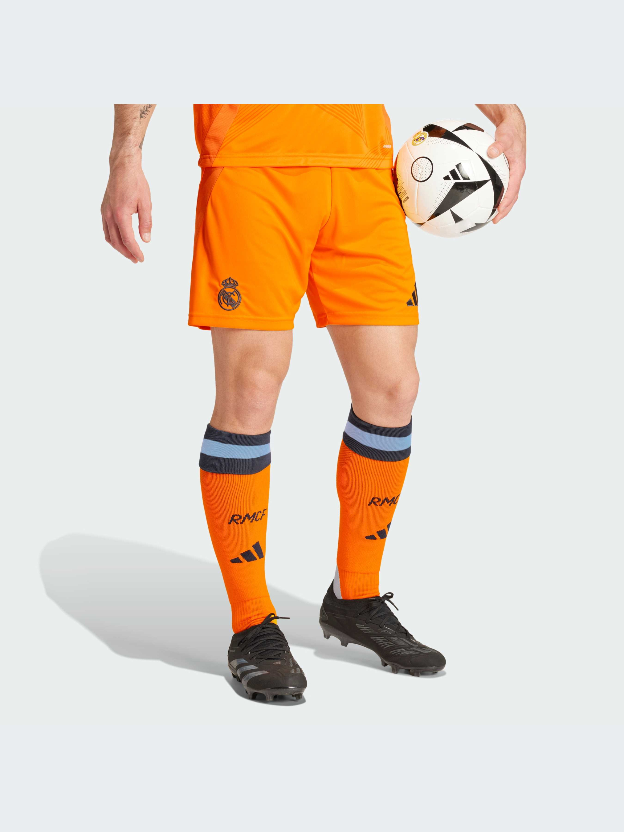 Отпразднуй блестящее будущее "Реала" в футбольных шортах adidas, выполненных в ярко-оранжевых цветах выездной формы команды. Созданные для гордых болельщиков, они украшены вышитым значком на одной штанине. Влагоотводящая система AEROREADY обеспечит комфорт независимо от предстоящих событий. Этот продукт изготовлен из 100% переработанных материалов. Повторно используя уже созданные материалы, мы помогаем сократить количество отходов и нашу зависимость от ограниченных ресурсов, а также уменьшить негативное воздействие продуктов, которые мы производим.