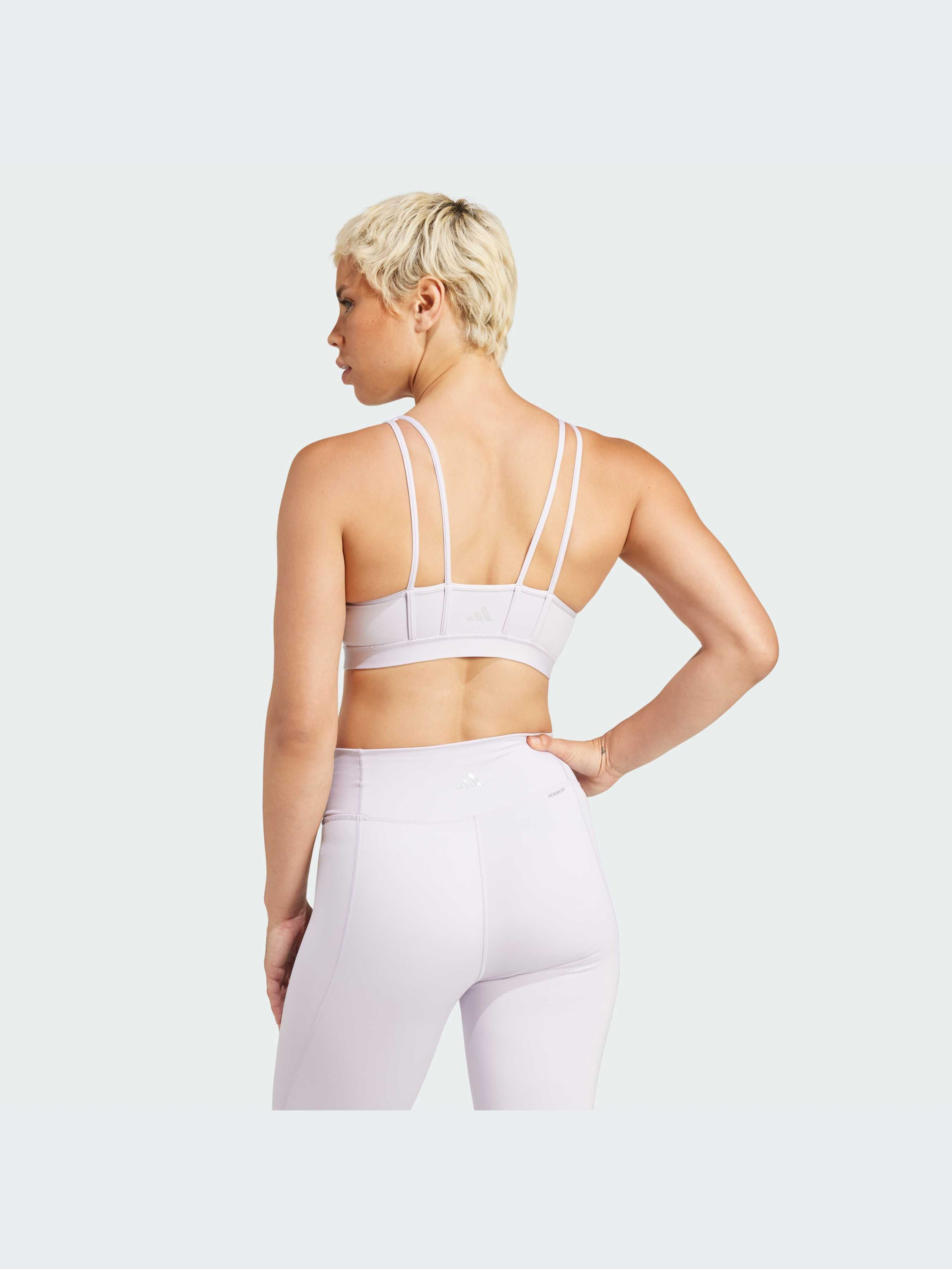 Характеристики AEROREADY Интерлок: 85% переработанный полиэстер, 15% эластан Круглый вырез Мягкий материал Облегающий крой Спинка с тонкими ремешками Съемные чашки с точками крепления Мягкая ткань с бархатистой текстурой Опис Вдохновленный балетной одеждой, этот бра adidas со средней степенью поддержки предназначен для занятий йогой, барре и не только. Мягкая ткань приятно прилегает к коже, а съемные подушечки обеспечивают дополнительную коррекцию форм. Бретели на спине и отделка оборками придают бюстгальтеру женственный вид, который хорошо сочетается с топами с открытой спиной или отлично смотрится сам по себе. Этот продукт изготовлен с использованием не менее 70% переработанных материалов. Повторное использование уже созданных материалов помогает нам сократить количество отходов и зависимость от ограниченных ресурсов, а также уменьшить воздействие производимой нами продукции на окружающую среду. Модель маломерит. Учитывая опыт наших покупателей, рекомендуем выбрать на размер больше привычного (если ты носишь размер M, советуем заказать размер L).