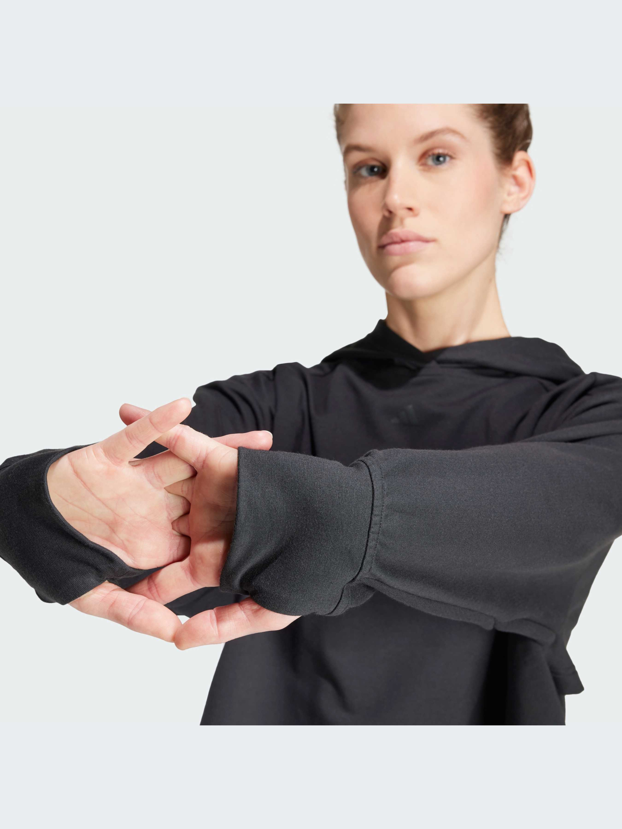 Характеристики 70% переработанный полиэстер, 26% хлопок, 4% эластан AEROREADY Внутренняя конструкция спинки Вшитый капюшон Задняя вентиляция Свободный крой Рифленые манжеты Рукава летучая мышь Влагоотводящая ткань Опис В этой свободной толстовке adidas ты никогда не будешь сдерживаться во время тренировки. Рукава "летучая мышь" обеспечивают полную свободу движений, а функция AEROREADY позволяет оставаться сухим, когда ты выполняешь сет за сетом, - худи готово к силовым и кардио тренировкам. Внутренняя конструкция спинки и вентиляционные панели на спине помогут тебе охладиться, когда интенсивность тренировок возрастет. Этот продукт изготовлен как минимум на 70% из переработанных материалов. Повторно используя уже созданные материалы, мы помогаем сократить количество отходов и нашу зависимость от ограниченных ресурсов, а также уменьшить негативное воздействие продуктов, которые мы производим. Идет размер в размер. Мы рекомендуем заказать модель твоего обычного размера.