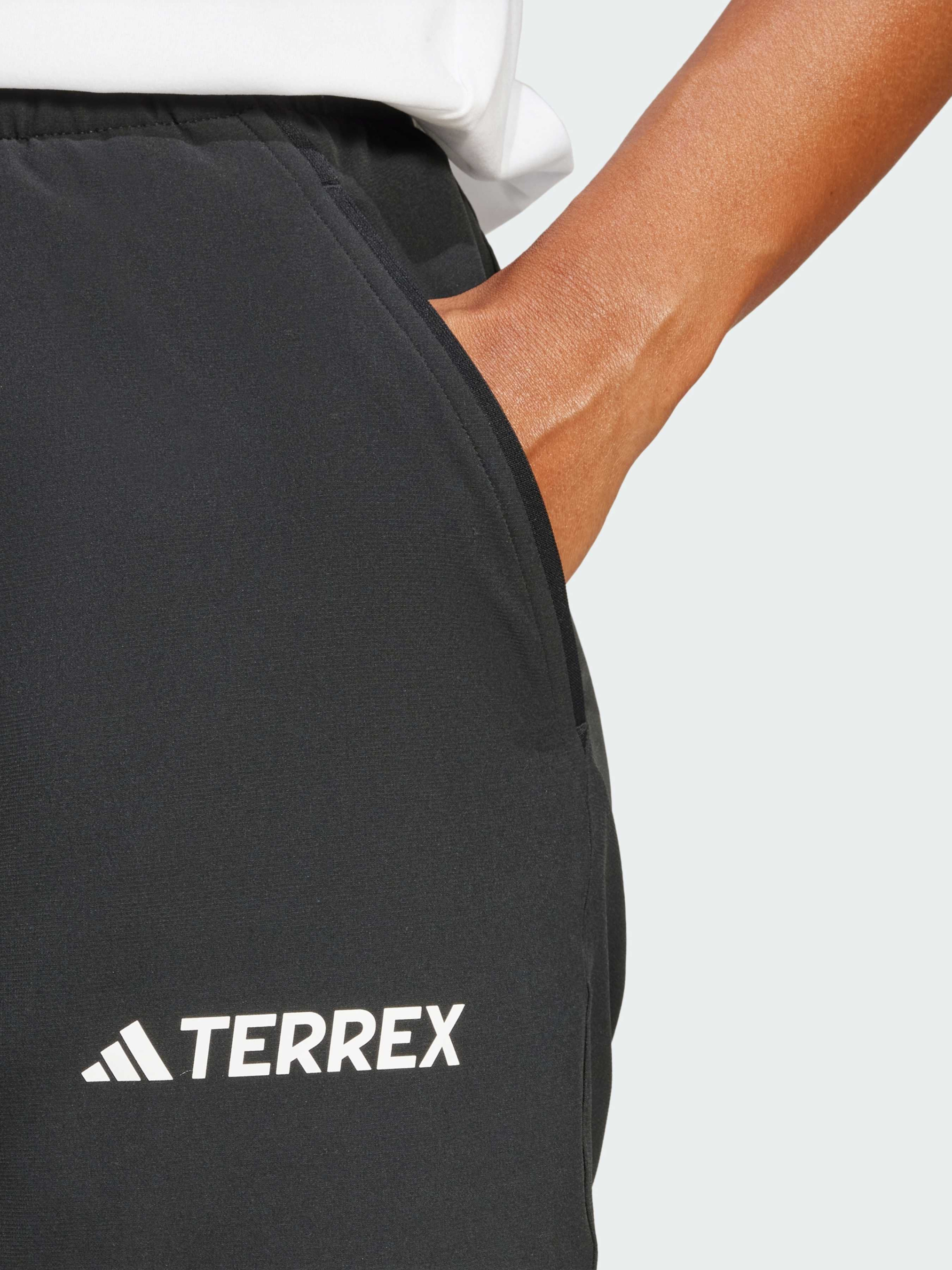 Характеристики 90% переработанный полиэстер, 10% эластан Боковые карманы Задний карман Стандартный крой Эластичный пояс на завязках-шнурках Манжеты на завязках Описание Эти походные брюки adidas Terrex идеально подходят для активных приключений, будь то скалистые тропы или лесные прогулки. Легкая ткань обеспечивает свободу движений, а боковые карманы добавляют практичности для повседневных нужд. Крой средней посадки не слишком тесный и не слишком свободный, а манжеты помогают сохранить аккуратный вид и удобство на каждом шагу. При изготовлении этого изделия использовано не менее 70% переработанных материалов. Повторно используя уже созданные материалы, мы помогаем сократить количество отходов и зависимость от ограниченных ресурсов, а также уменьшаем воздействие производимой нами продукции.