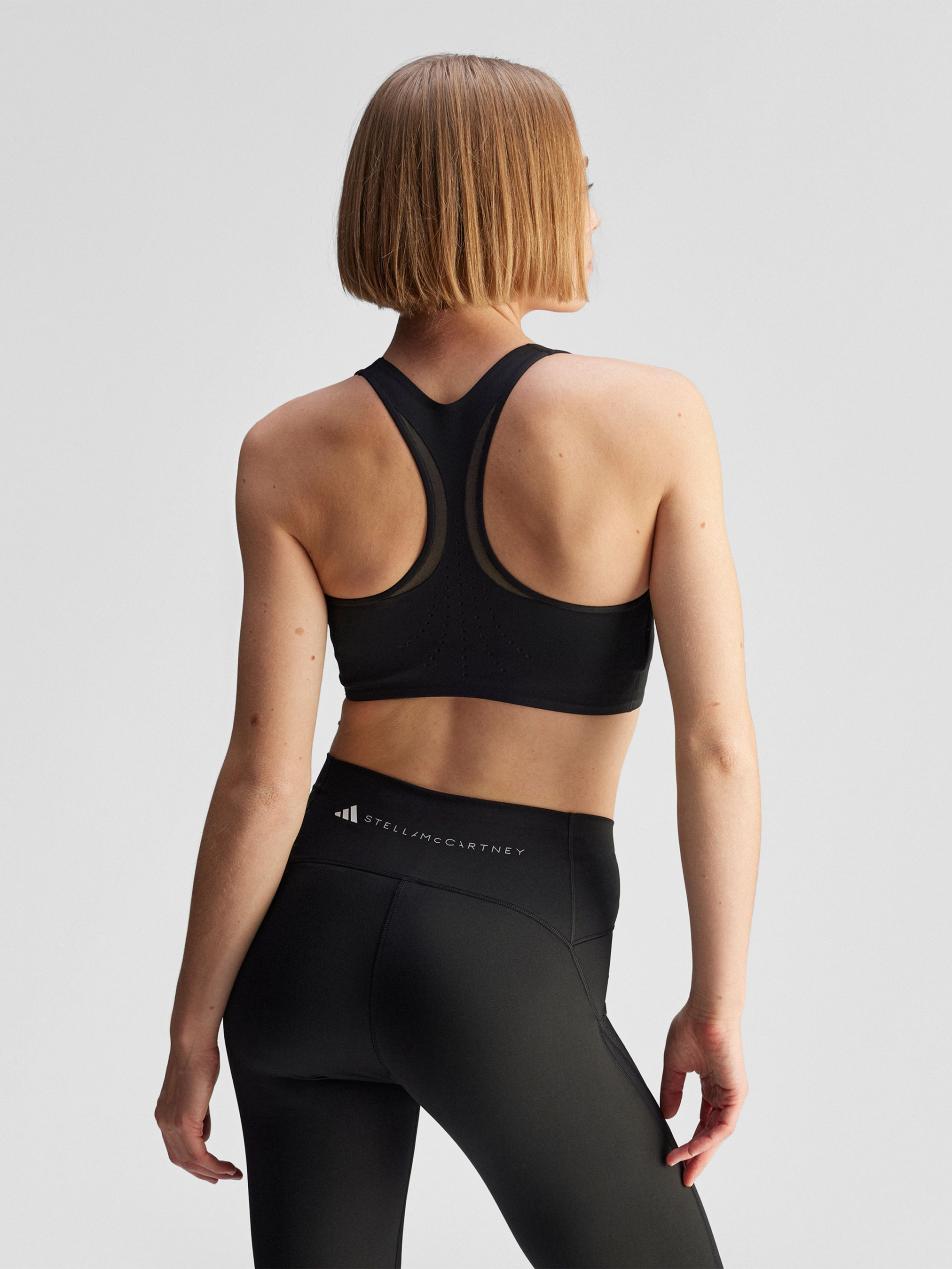 Характеристики 79% переработанный полиэстер, 21% переработанный эластан Без застежек Вырезы с лазерной обработкой Глубокий круглый вырез Облегающий крой, средняя поддержка Сетчатые детали Логотип adidas by Stella McCartney Съемные чашки Х-образный крой спинки Описание Легкое и дышащее спортивное бра adidas by Stella McCartney обеспечит комфорт и поддержку на тренировке, сочетая стиль с функциональностью. Мягкая и эластичная ткань идеально подходит для активных движений, тренировок средней и высокой интенсивности. Съемные чашки позволяют отрегулировать уровень поддержки и форму в соответствии с твоими предпочтениями. Этот продукт изготовлен из 100% переработанных материалов. Повторно используя уже созданные материалы, мы помогаем сократить количество отходов и нашу зависимость от ограниченных ресурсов, а также уменьшить негативное воздействие продуктов, которые мы производим.