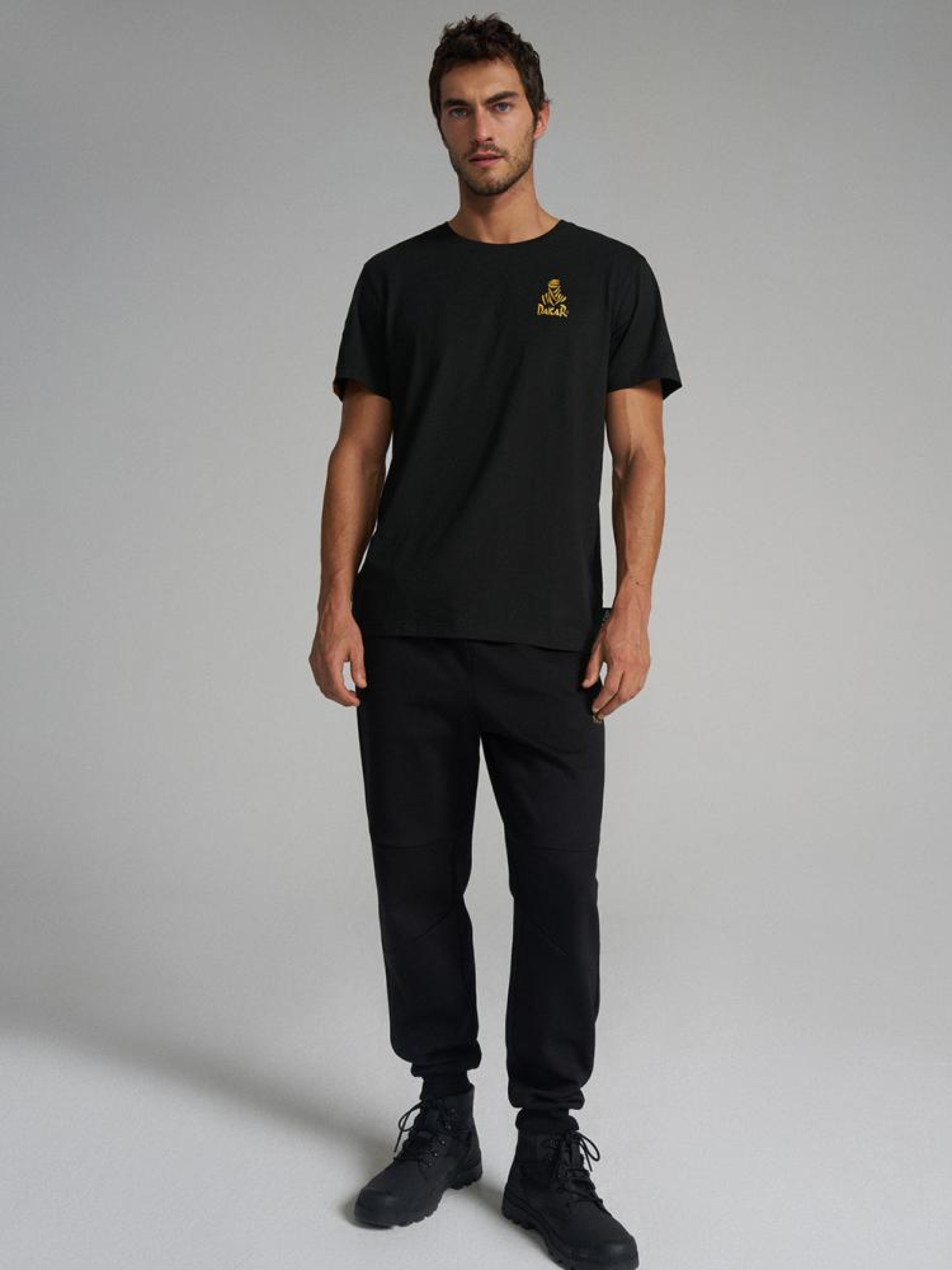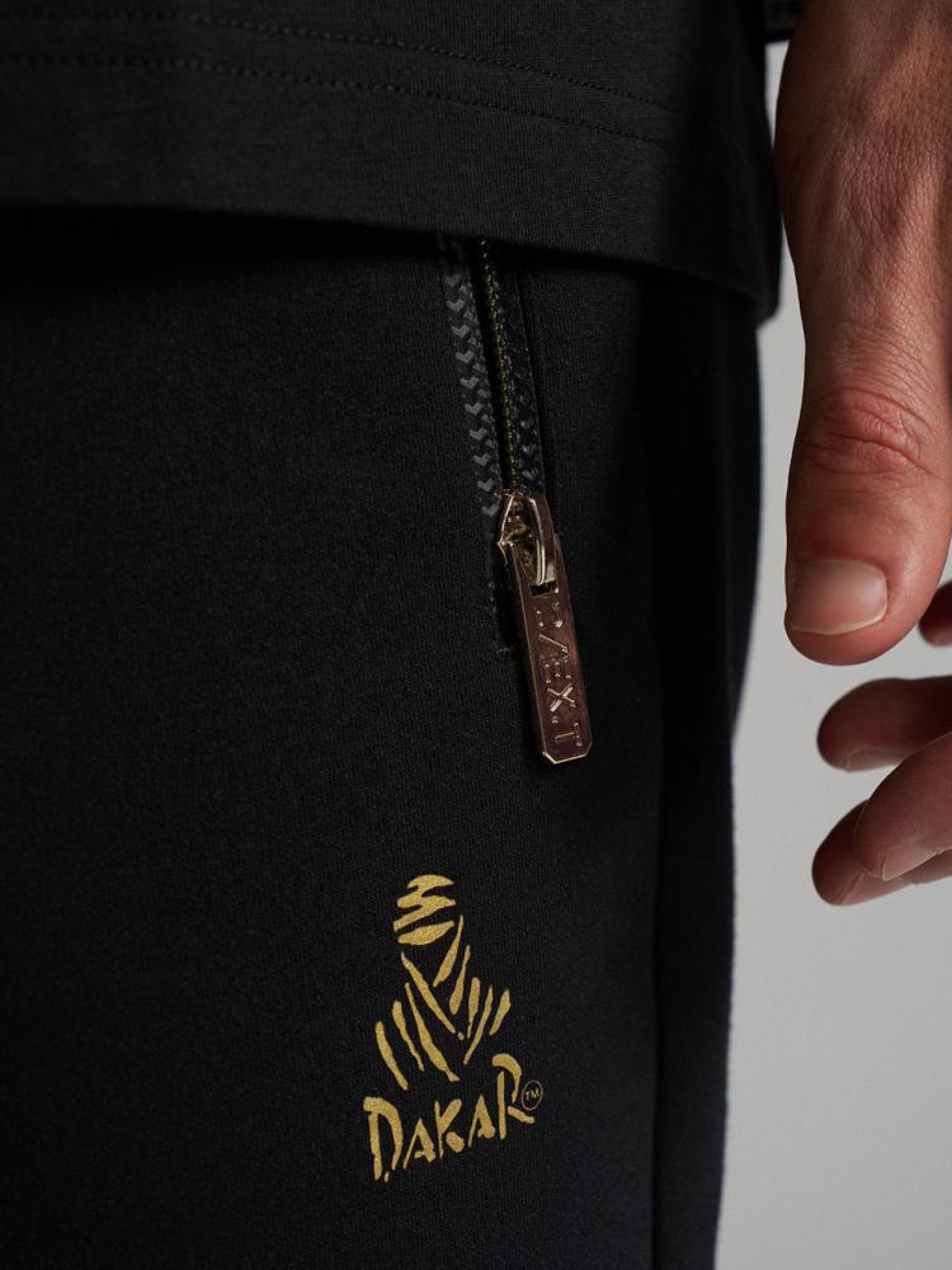 Спортивные штаны DKR VIP SP 04 10045657 Мужские спортивные штаны эксклюзивной линии DEXT DAKAR VIP. Спортивные брюки украшены декоративными золотыми фирменными принтами и лейблами, специально посвященными линии DAKAR VIP - классический крой со слегка суженными штанинами, - боковые карманы на молнии, - дополнительный карман на молнии сзади, - золотой декоративный принт с логотипом DAKAR на передней штанине, - черный декоративный принт с логотипом DEXT на задней части штанины, - доступны в черном цвете. Сезон: осень/зима 2024 Состав: 76% полиэстер 22% хлопок 2% эластан Уход: - стирка при максимум 30 °С - не отбеливать - не сушить в сушильной машине - гладить максимум при темпе. 110 °С - не химчистка Размер на модели – XL Рост модели – 187 см