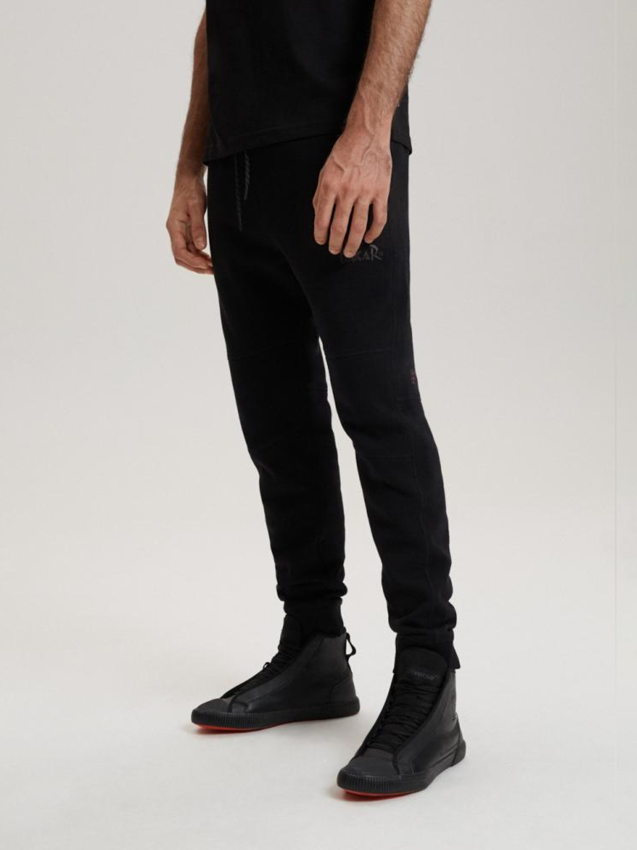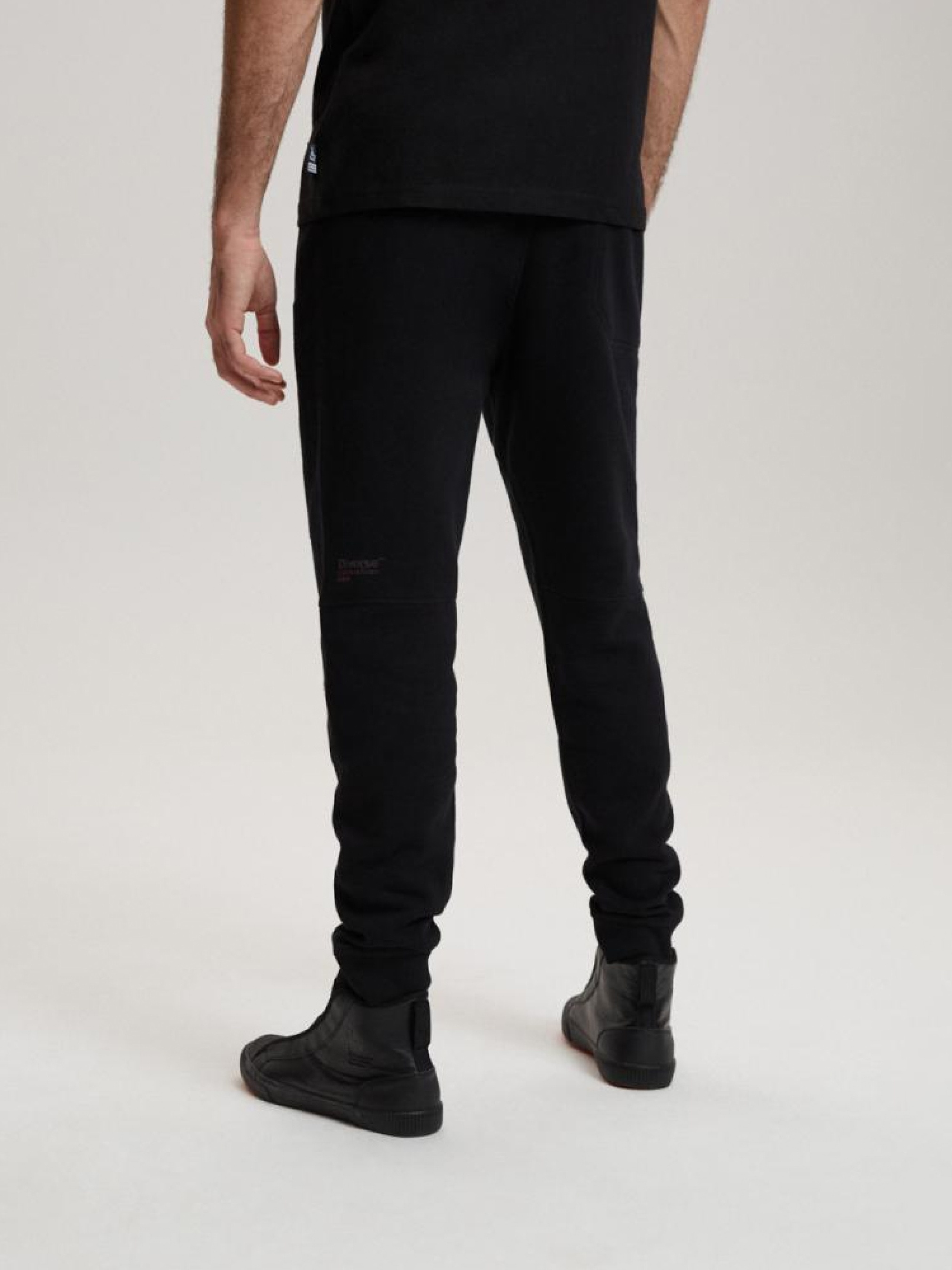 Спортивные брюки с декоративными швами на коленях линии Dakar. Качественные мужские спортивные брюки с линии DIVERSE EXTREME TEAM. Основные характеристики: - декоративные швы на коленях, - два боковых кармана на молниях и один карман сзади, - логотип Dakar спереди и надпись Diverse Exteram Team на тыльной стороне, - декоративный ярлык сзади, - доступны в черной версии. Сезон: осень/зима. Состав: 80% хлопок, 20% полиэстер. Уход: - стирка при максимум 30 °С - не отбеливать - не сушить в сушильной машине - гладить максимум при темпе. 150 °С - не химчистка Размер на модели – L Рост модели – 190 см