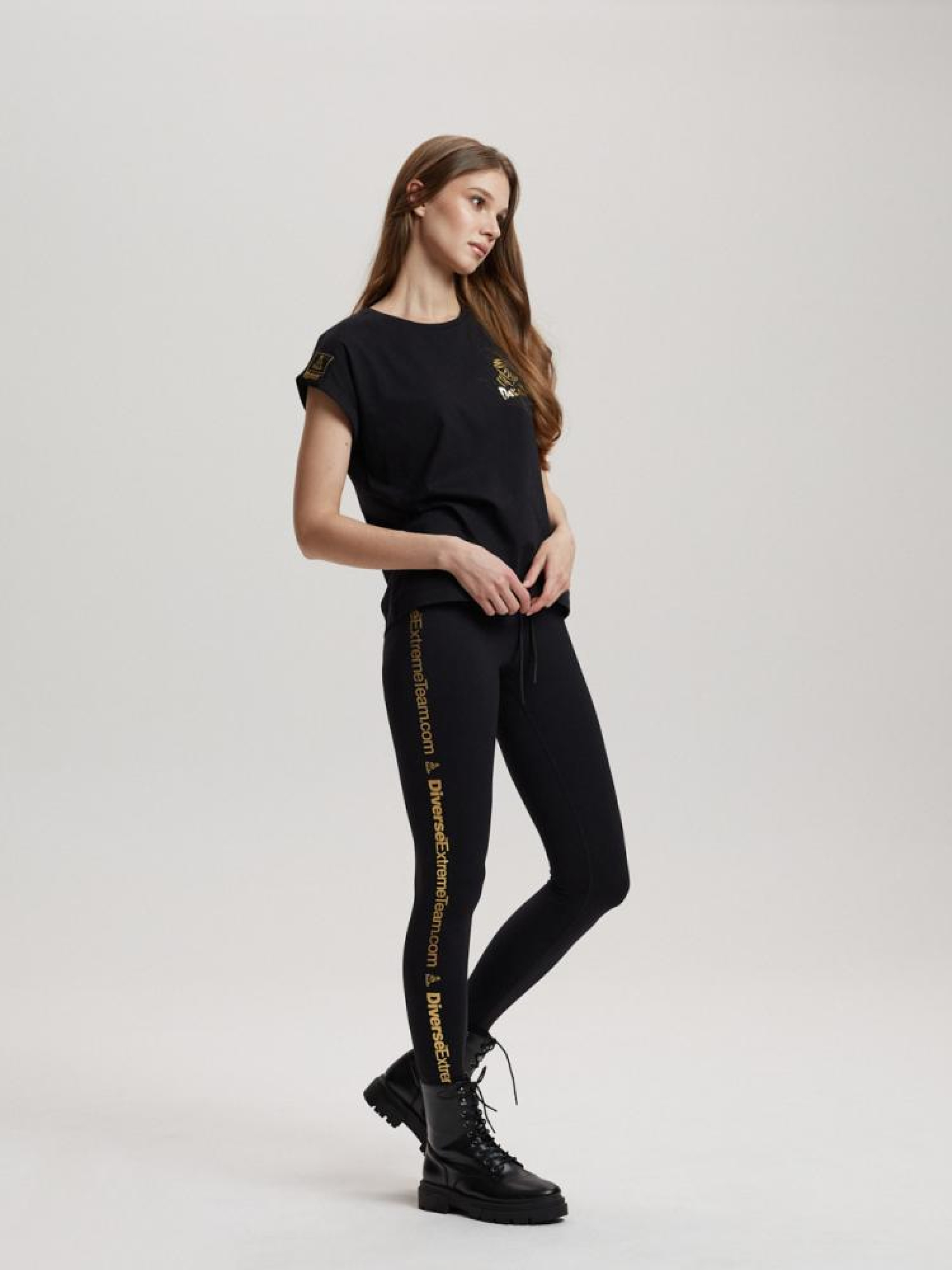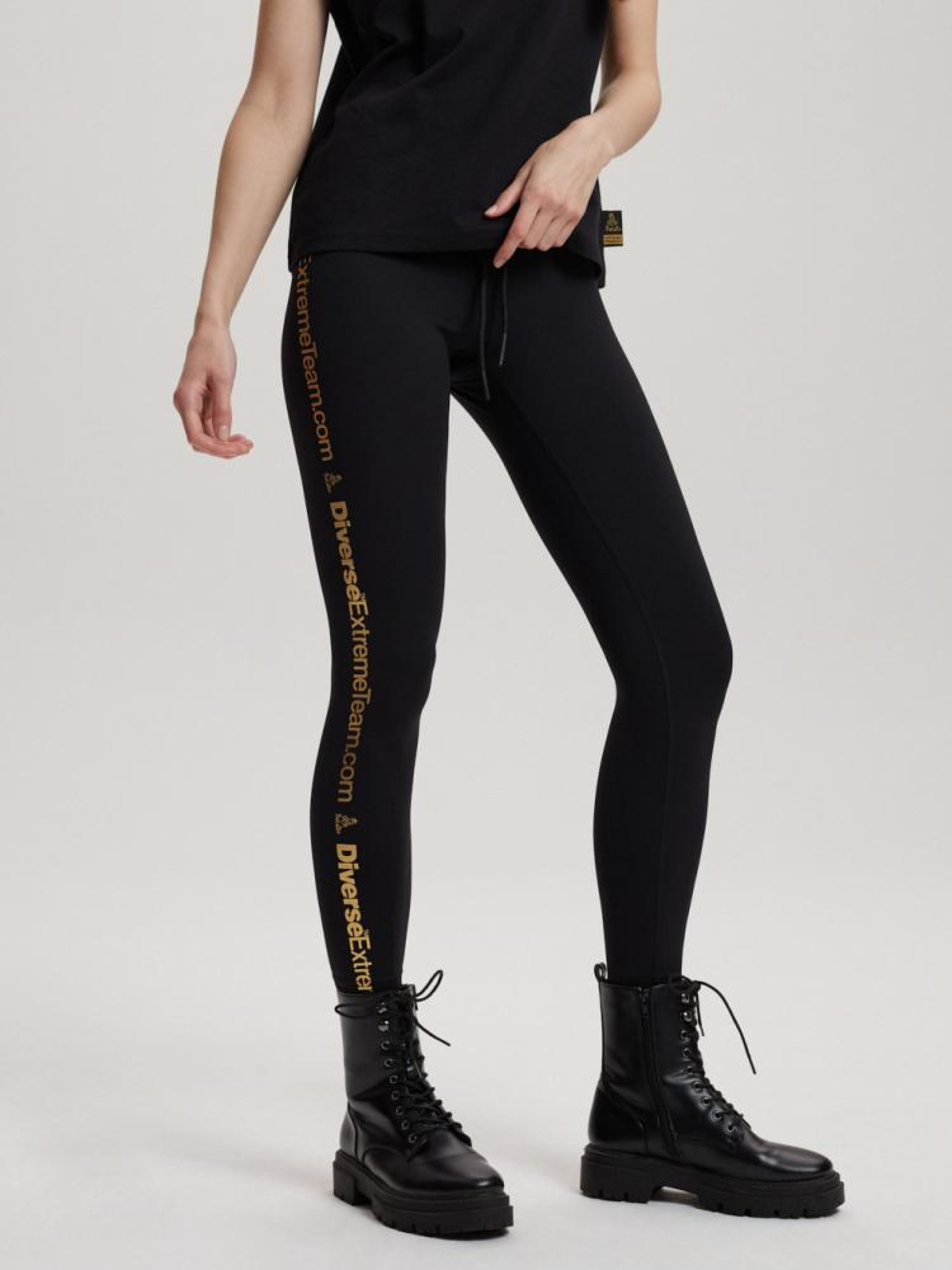 Приталенные леггинсы с золотым логотипом Dakar. Изготовлены из эластичной ткани. Основные характеристики: - силуэтный моделирующий крой, - выполнено из удобной эластичной ткани, - золотой принт с логотипом Dakar вдоль брюк, - шнурок на талии с резиновыми концами, - маленький сверкающий принт с логотипом Dakar сзади на талии, - доступно в черном цвете. Сезон: осень/зима. Состав: 74% полиамид, 26% эластан. Уход: - стирка при максимум 30 °С - не отбеливать - не сушить в сушильной машине - гладить максимум при темпе. 110 °С - не химчистка Размер на модели – M Рост модели – 178 см