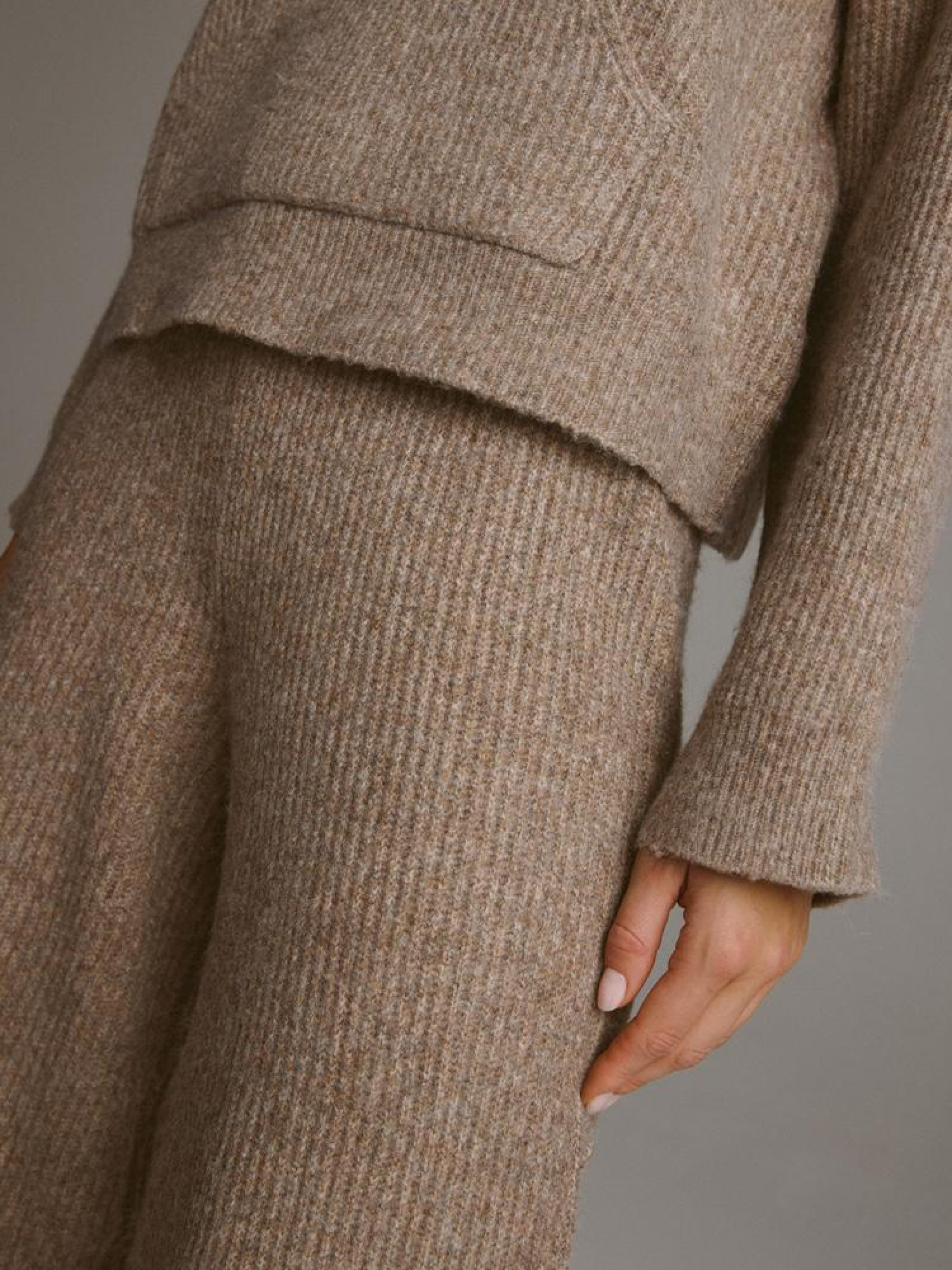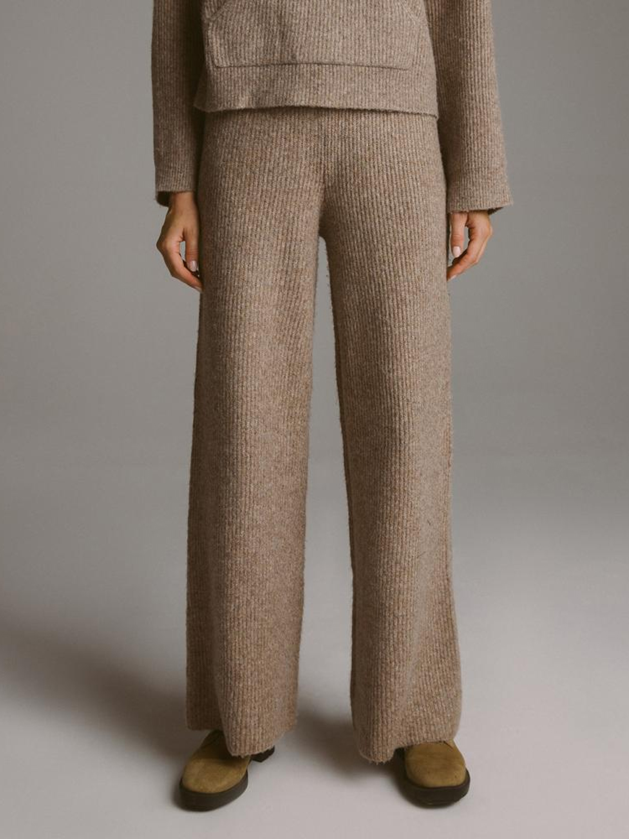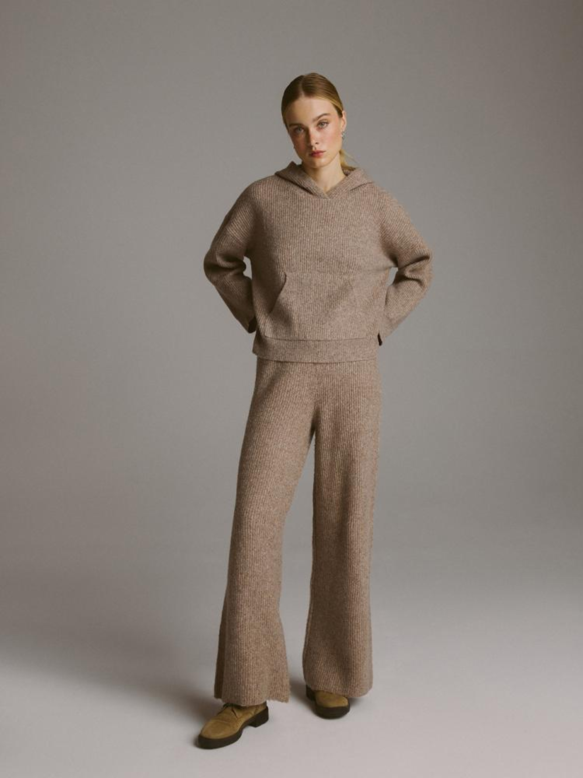 Спортивные штаны MAROY 10045320 Женские спортивные штаны: - из приятной свитерной ткани, - высокая талия, - резинка на талии, - широкие штанины, - в наличии бежевый цвет. Сезон: осень/зима 2024 Состав: 67% акрил 18% шерсть 10% нейлон 5% полиэстер Уход: - не отбеливать - не сушить в сушильной машине - гладить максимум при темп. 110 °С - не химчистка - ручная стирка Размер на модели - S Рост модели - 179 см
