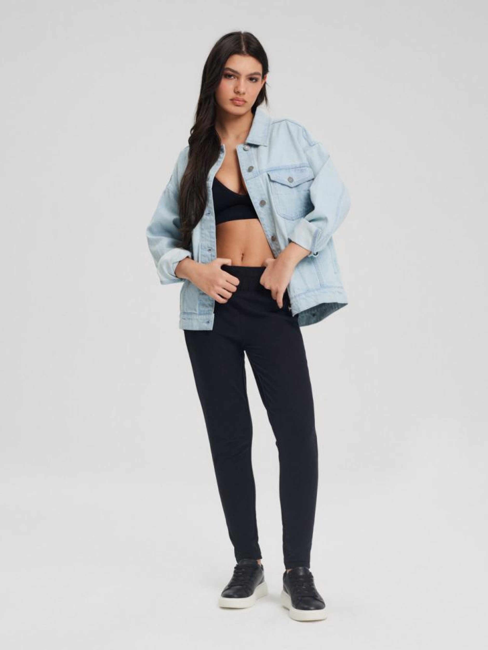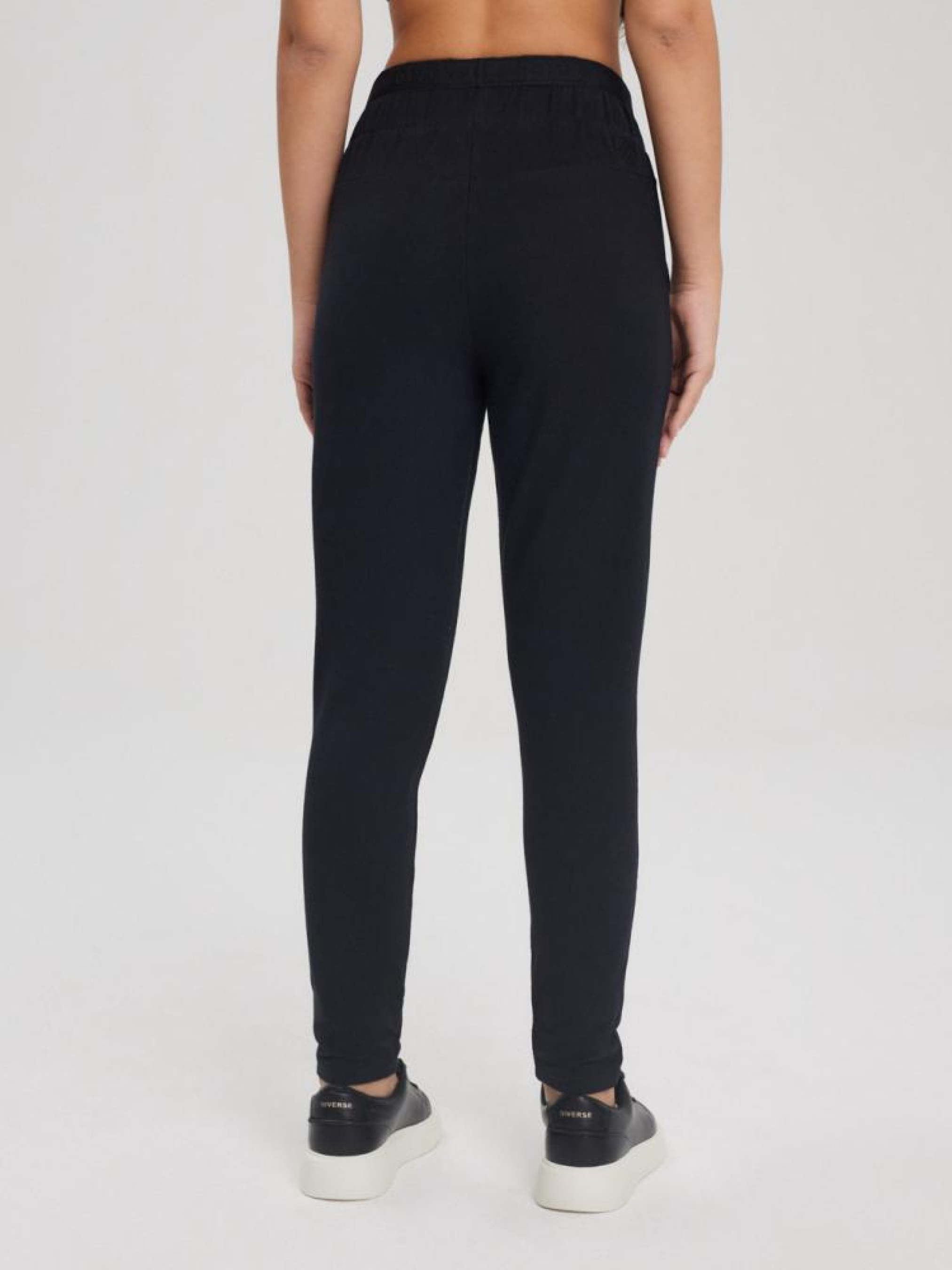 Спортивные штаны SLIIM 10044010 Спортивные брюки с декоративным эластичным поясом: - приталенного кроя, - из хлопкового трикотажа с примесью эластана, - с декоративным эластичным поясом, - с карманами, - в наличии черного цвета. Состав: 95% хлопок 5% эластан Сезон: Весна/Лето 2024 Уход: - стирка при максимум 30 °c - не отбеливать - не сушить в сушильной машине - гладить максимум при темп. 150 °c - не химчистка Размер на модели - S Рост модели - 171 см