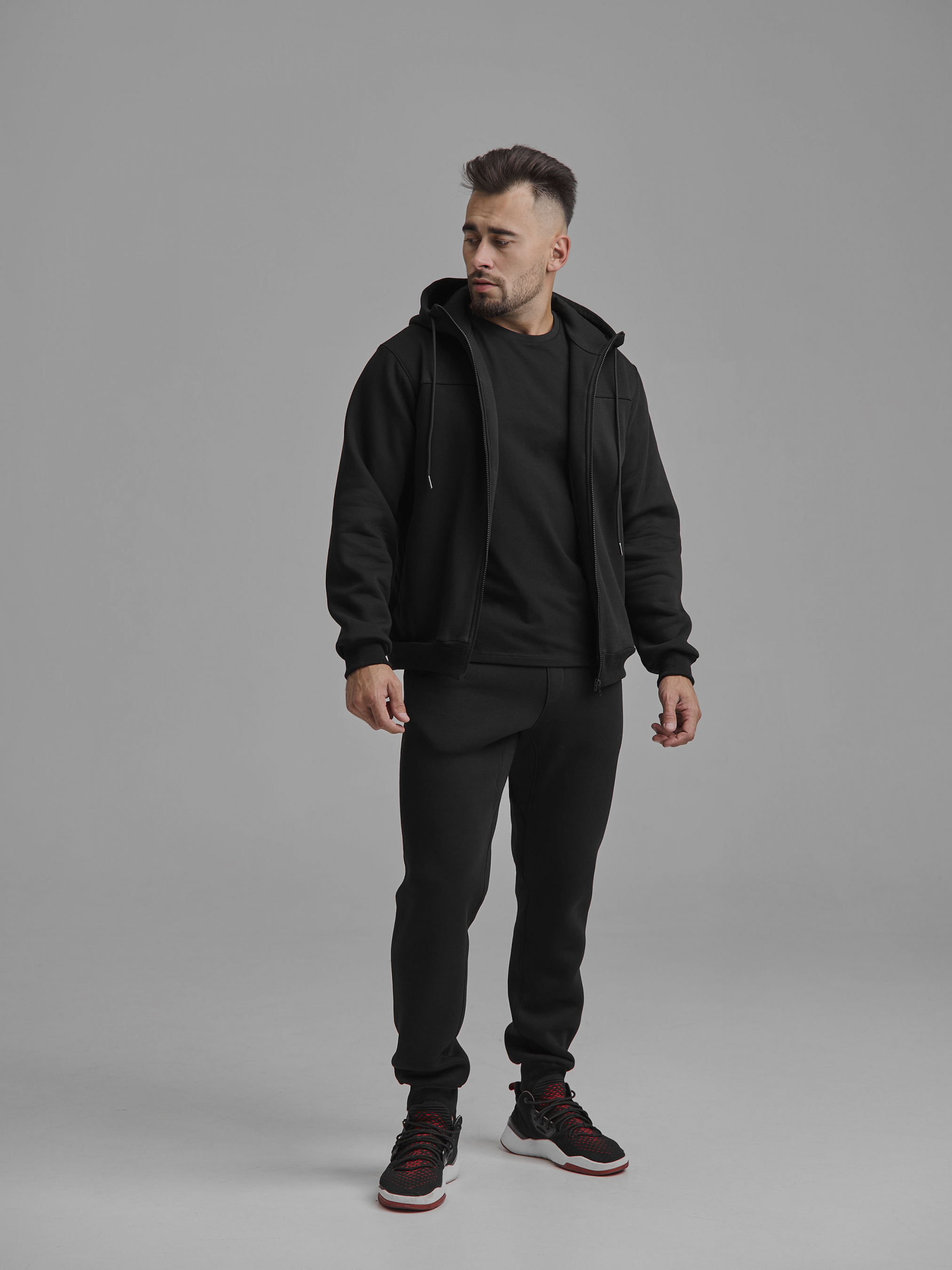 Наш бестселлер, модель, которую мы выпускаем каждый сезон. Материал - турецкая трехнить с флисом, фурнитура - японские молнии от фирмы YKK. Костюм тестировали самостоятельно, да и отзывы наших клиентов заверили нас в том, что ткань не скатывается, не растягивается на коленях, замок работает идеально. Продуманные лекала делают костюм универсальным - красиво ложится на любой тип фигуры. Особенности модели: двойной капюшон, внизу кофты и штанов есть манжет из рыбаны, а также в месте, где совпадают две штанины есть дополнительная вставка для комфортной ходы. Доступен в цветах: хаки, черный, серый, хаки/черный, серый/черный