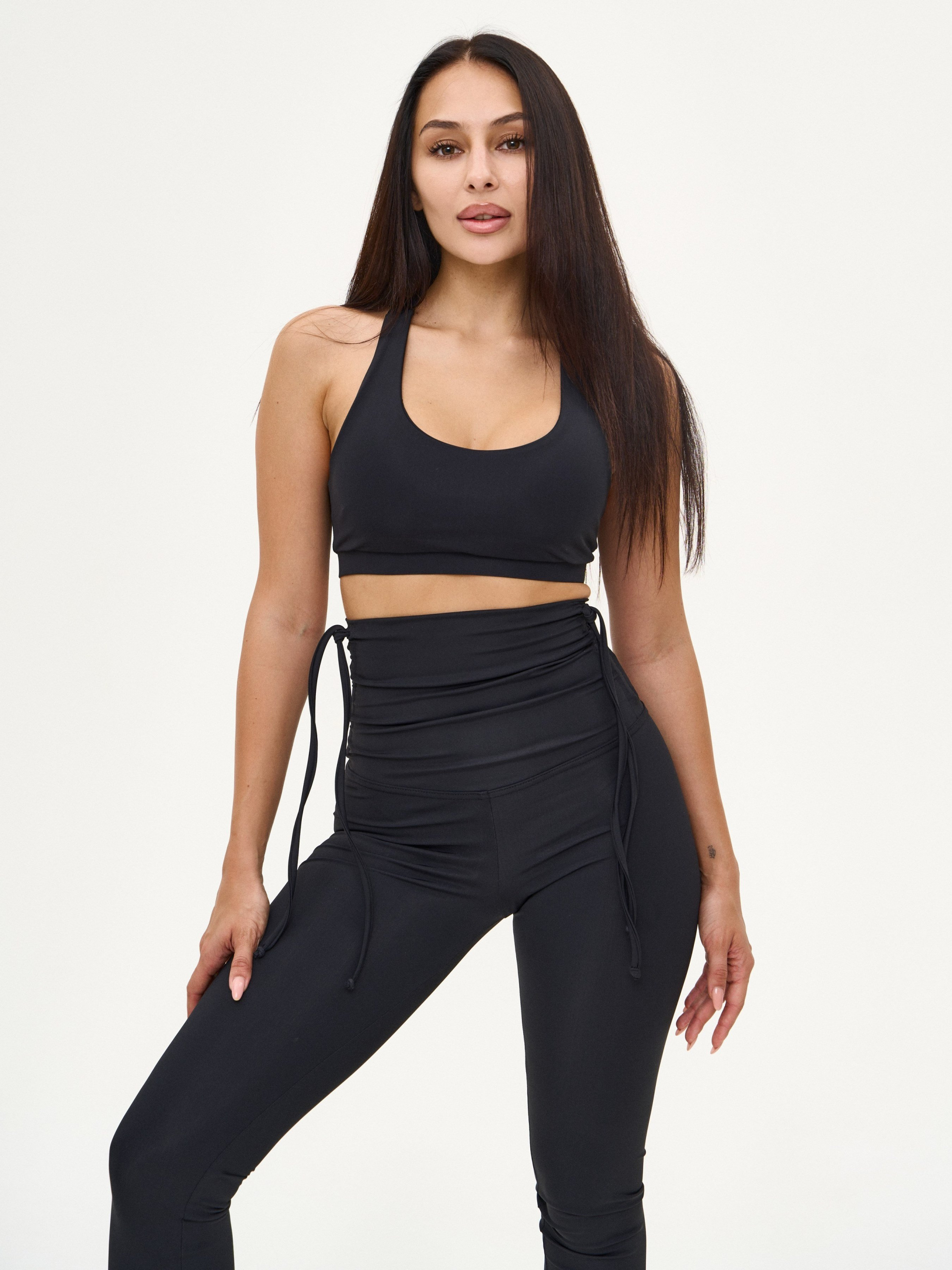 Женский спортивный комплект Nova Vega. В комплект входят лосины и топ. Идеально подойдёт для занятий в тренажерном зале, занятий йогой и фитнесом, а также для тренировок на открытом воздухе. Лосины с высокой посадкой и шнурками на поясе для регулировки высоты. Удобный короткий топ с глубоким декольте и резинкой под грудью для надёжной фиксации (топ с карманами для чашек вкладышей, сами чашки в комплекте не идут). Комплект выполнен из высококачественного бифлекса, обеспечивающего отличную эластичность и комфорт во время тренировок.