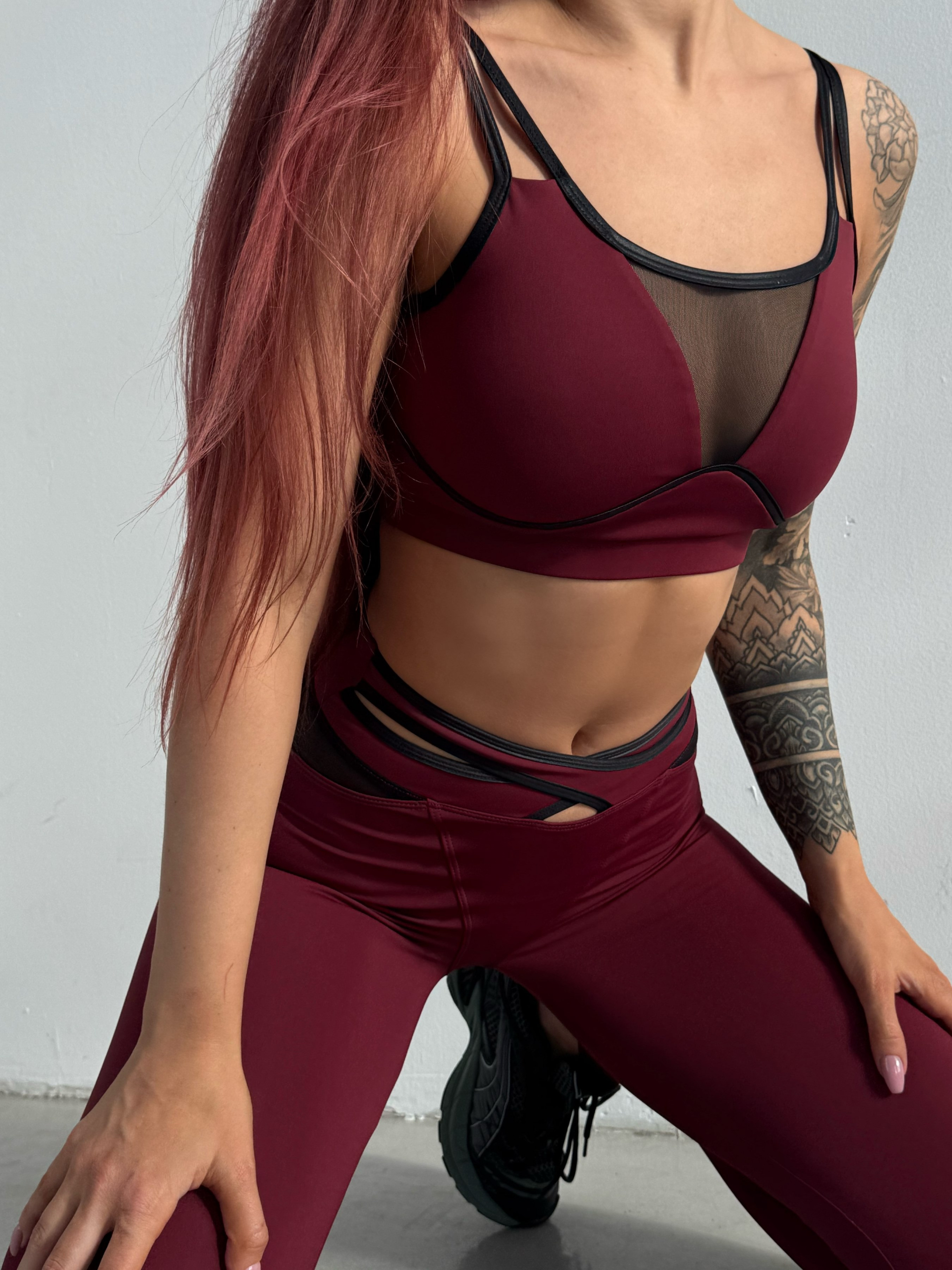Женский спортивный комплект Nova Vega. В комплект входят лосины и топ. Идеально подойдёт для тренировок в зале, занятий фитнесом и йогой, а также для повседневной носки. Лосины на высокой посадке, Push-up эффектом и вырезами на поясе. Топ имеет бретелями, которые можно отрегулировать под себя. Высококачественная ткань, обеспечивающая эластичность, плотность и поддержку. Отлично тянется и сохраняет форму после множества стирок. Топ имеет карманы для чашек вкладышей