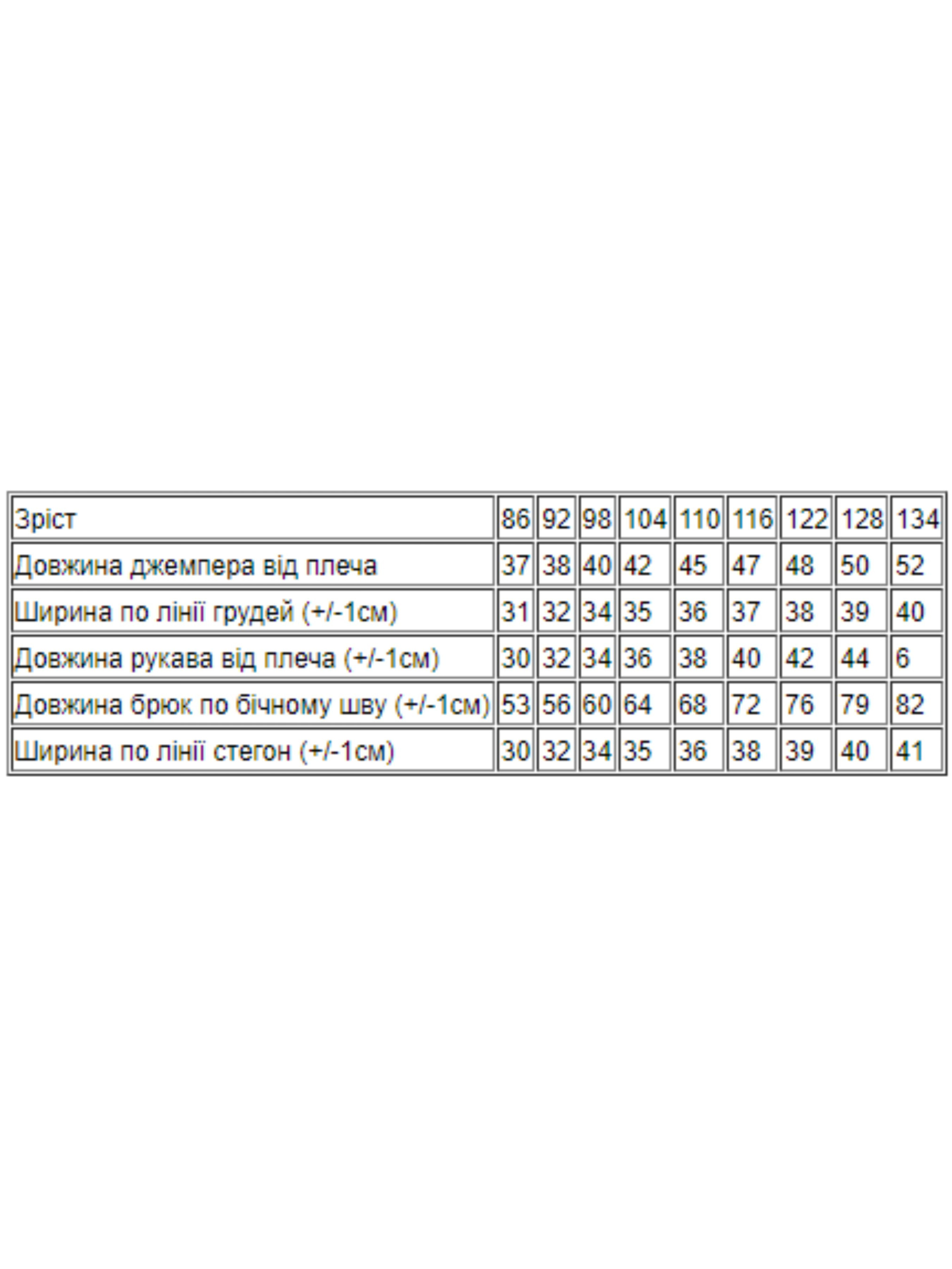 Полотно: двонитка однотонна Склад полотна: 80% бавовна 20% поліестр Зріст: 86-134 З огляду на високу рухливість дитини під час ігор варто підбирати для неї максимально зручний одяг переважно з натуральних тканин. Саме тут на допомогу приходять спортивні костюми від торгової марки Носи Своє. Вільний і зручний комплект із світшоту і брюк з оригінальним принтом - те що потрібно. Джемпер з круглим вирізом горловини і штани вільного крою доповнені широкими еластичними манжетами. Для пошиття моделі використовувалося високоякісне бавовняне полотно - футер що є безпечним для організму і чутливої шкіри дитини. Взимку і в період міжсезоння в такому чудовому костюмі дитині буде тепло і комфортно він прекрасно підходить в якості домашнього одягу наряду для ігор і прогулянок забезпечує модний і стильний вигляд не обмежує рухів активної дитини. Догляд: допускається як ручне так і машинне прання ( "делікатне") при температурі 30 градусів з використанням неагресивних засобів для прання. При полосканні краще використовувати кондиціонер. Сушка в розправленому вигляді. Прасувати виріб з виворітного боку. Відмінна якість і цікавий дизайн супроводжуються доступною ціною!