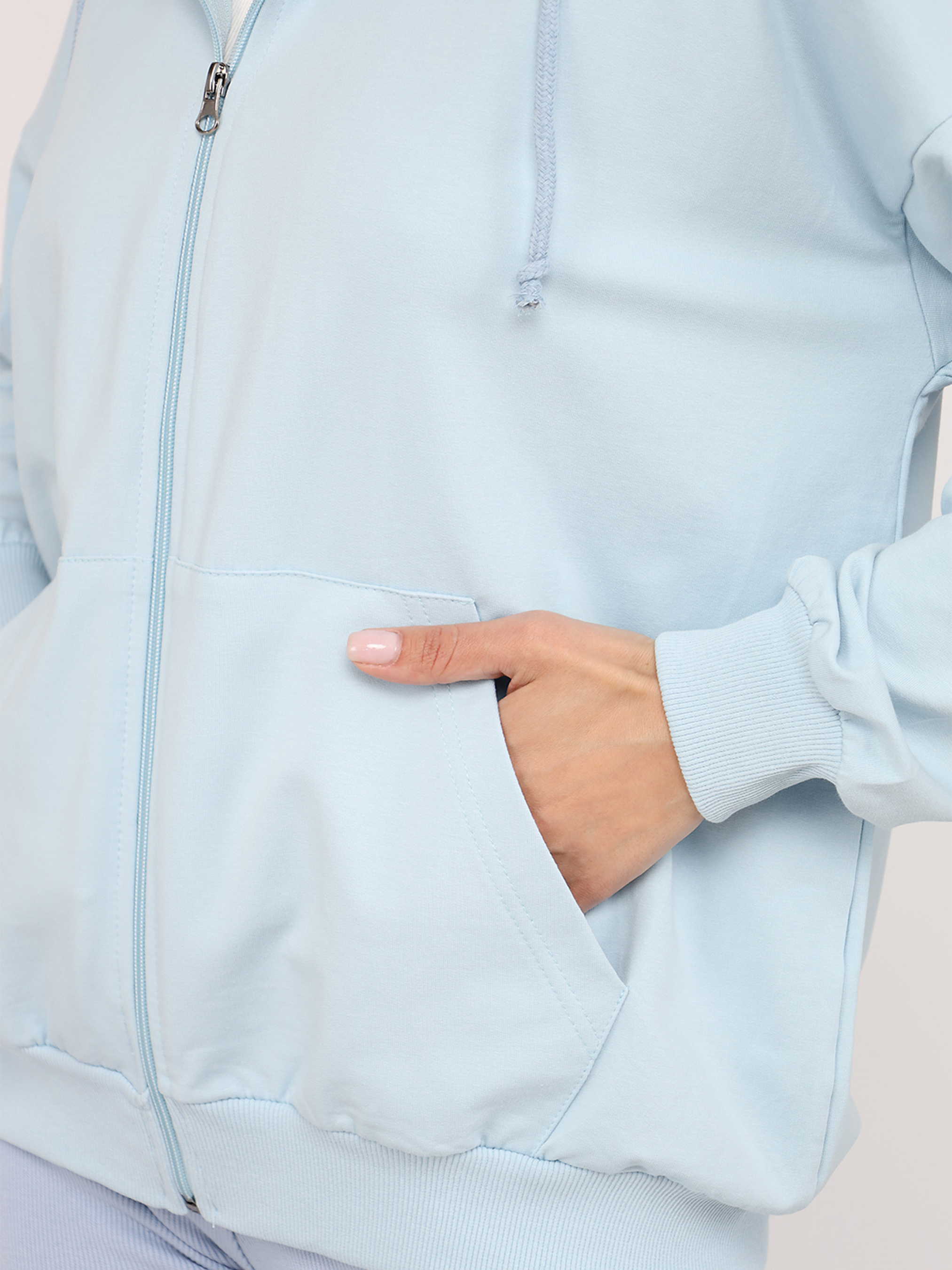 Толстовка на молнии женская - это удобный и стильный выбор для повседневного гардероба. Благодаря практичной молнии она легко надевается и позволяет регулировать комфорт в зависимости от погоды. Свободный крой дарит ощущение легкости и непринужденности, идеально подходя для активного дня или отдыха. Эта модель прекрасно сочетается с джинсами, леггинсами или спортивными штанами, создавая модные casual-образы. Толстовка станет незаменимой для прогулок, путешествий или уютных вечеров дома, добавляя вашему стилю теплоты и уюта. Она подчеркнет вашу индивидуальность и практичность. Отличный вариант для тех, кто ценит комфорт и хочет выглядеть стильно без усилий. Выберите эту толстовку на молнии, чтобы всегда чувствовать себя удобно и уверенно! Особенности изделия: Цвет: голубой. Материал изготовления: двунитка. Состав: 95 % хлопок, 5 % полиэстер. Длина: длинная. Крой: оверсайз. Сезон: демисезон. Параметры модели: Рост: 170 см. Размер на модели: М, украинский размер: 46. Страна производитель: Турция.