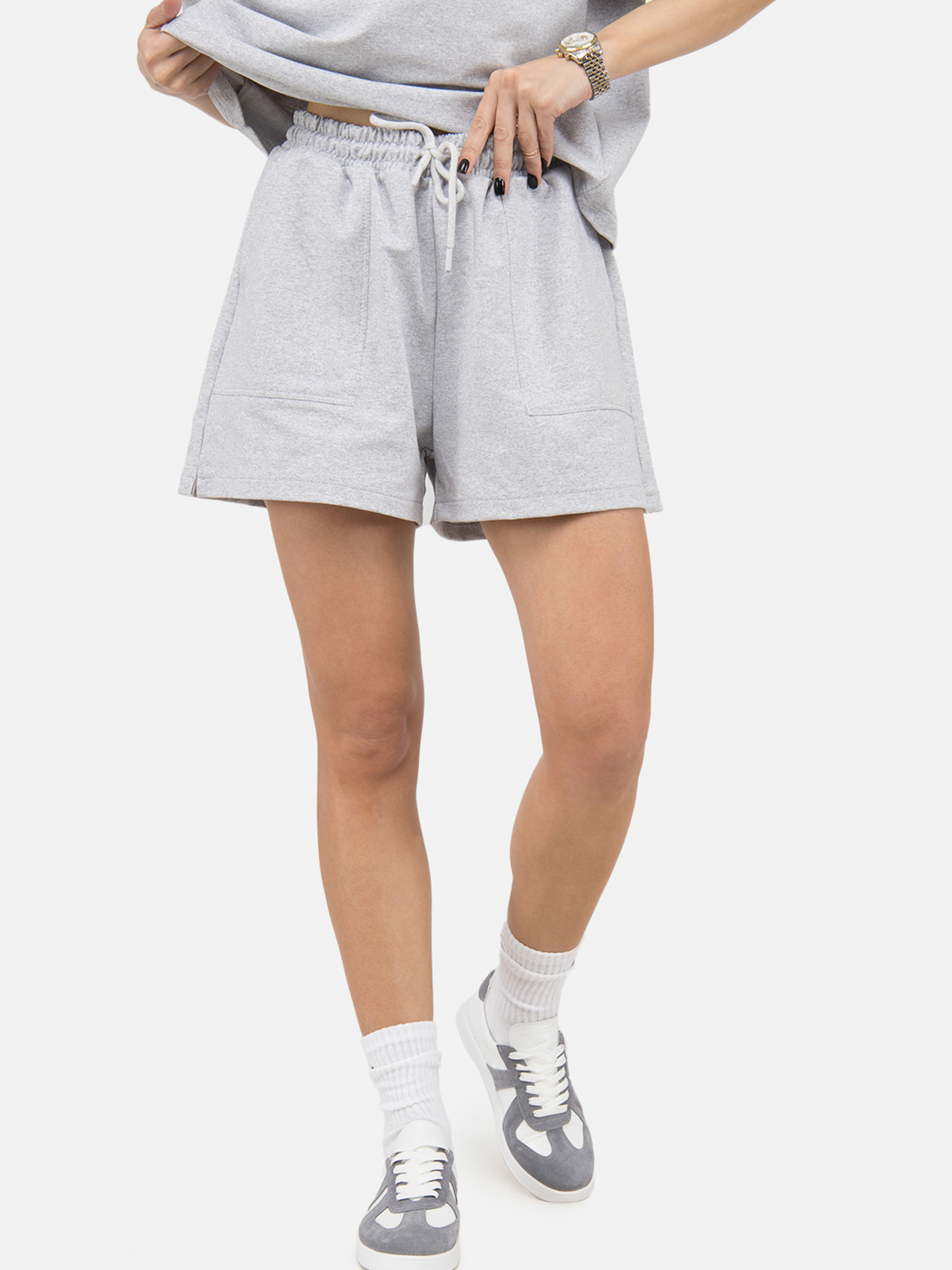 Женские спортивные шорты – это стильный и практичный элемент гардероба, который можно носить в разных образах. Особенности: Цвет: светло-серый, однотонный. Фасоны: прямые. Длина: средняя. Материал: трикотаж. Состав материала: 80% хлопок, 15% полиэстер, 5% эластан. Параметры модели: Рост: 170 см Размер: М/укр 42 Страна изготовитель: Украина.