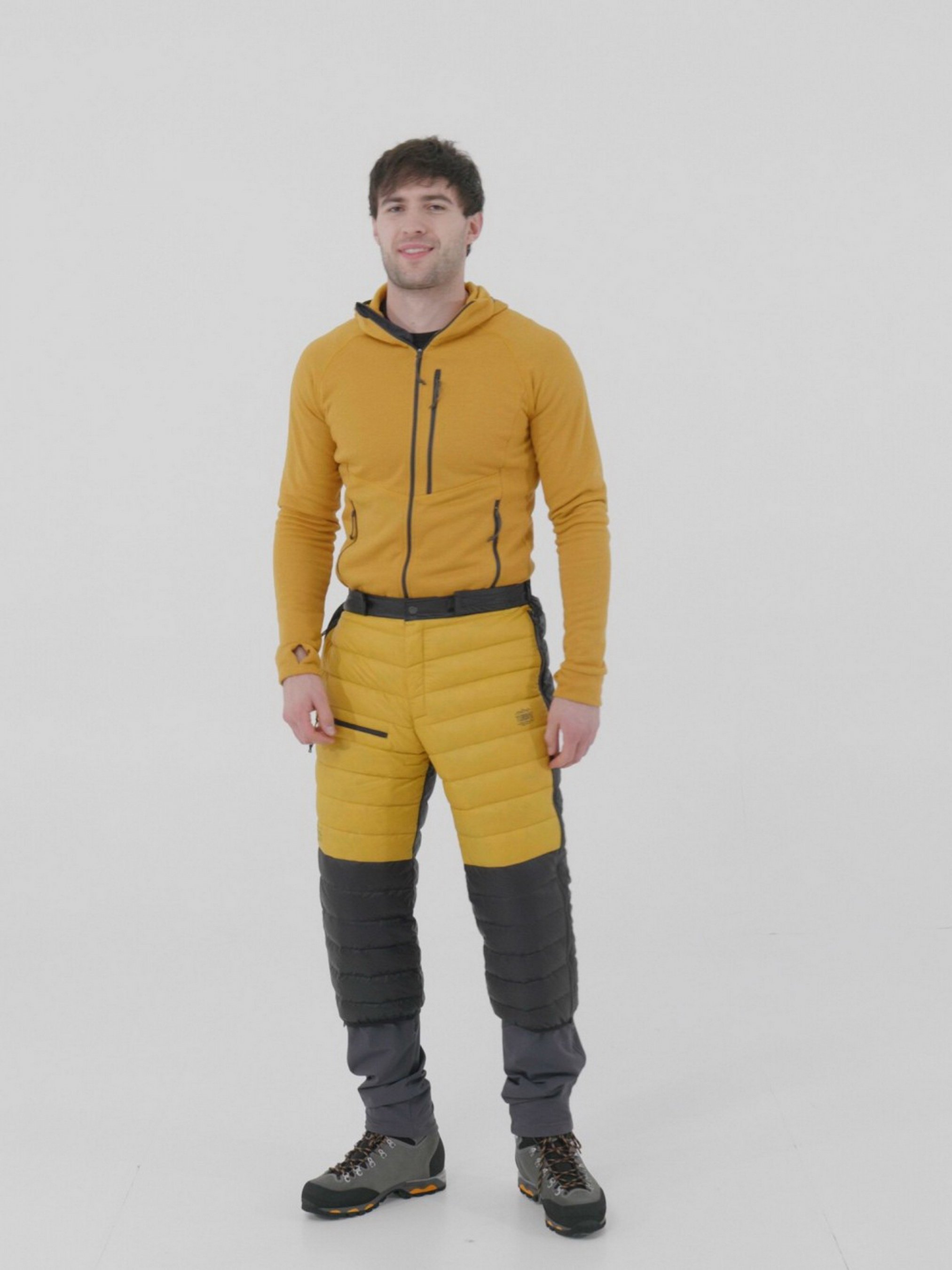 Turbat Powder – пуховые штаны-самосвалы, которые одеваются поверх основных трекинговых штанов или под мембранные штаны. Гарантируют дополнительное утепление ног во время зимних походов, восхождений, скитура или лыжных путешествий. Имеют цветную кодировку для более интуитивного быстрого одевания в непогоду. Есть небольшой карман для мелочей, энергетического геля или конфеты "пчелка", временно для электроники. В зонах с большей нагрузкой использована стойкая ткань. Штаны расстегиваются спереди, что позволяет одевать их не снимая альпинистическую систему. Применение: восхождение и походы с элементами альпинизма, зимние пешие и многодневные лыжные экспедиции, пребывание в базовом лагере. Особенности: - более крепкие материалы в зонах с повышенной нагрузкой - наполненная пухом FP750 обработанным видоотталкивающим репеллентом - цветная маркировка молний - карман на молнии - длина 3/4, совместимая бахилами или лыжными ботинками - совместимы с альпинистической системой Технические характеристики: Наполнение: украинский серый гусиный пух FP750 Вес утеплителя: 75 г ючим репелентом - кольорове маркування блискавок - кишеня на блискавці - довжина 3/4, сумісна бахілами чи лижними черевиками - сумісні з альпіністичною системою Технічні характеристики: Наповнення: український сірий гусячий пух FP750 Вага утеплювача: 75 г Вес (размер М/L): 340 г Наружный материал: 20D Nylon DWR / 30D Nylon DWR Внутренний материал: 20D Nylon Размер в упакованном виде (сложены в собственный карман): 18х17,5х8 см Соответствие размера параметрам человека: XS/S Обхват талии: 66-84 см Обхват бедер: 92-99 см Внутренний шов: 50,5 см M/L Обхват талии: 73-91 см Обхват бедер: 100-107 см Внутренний шов: 52 см XL/XXL Обхват талии: 81-99 см Обхват бедер: 108-115 см Внутренний шов: 53,5 см.