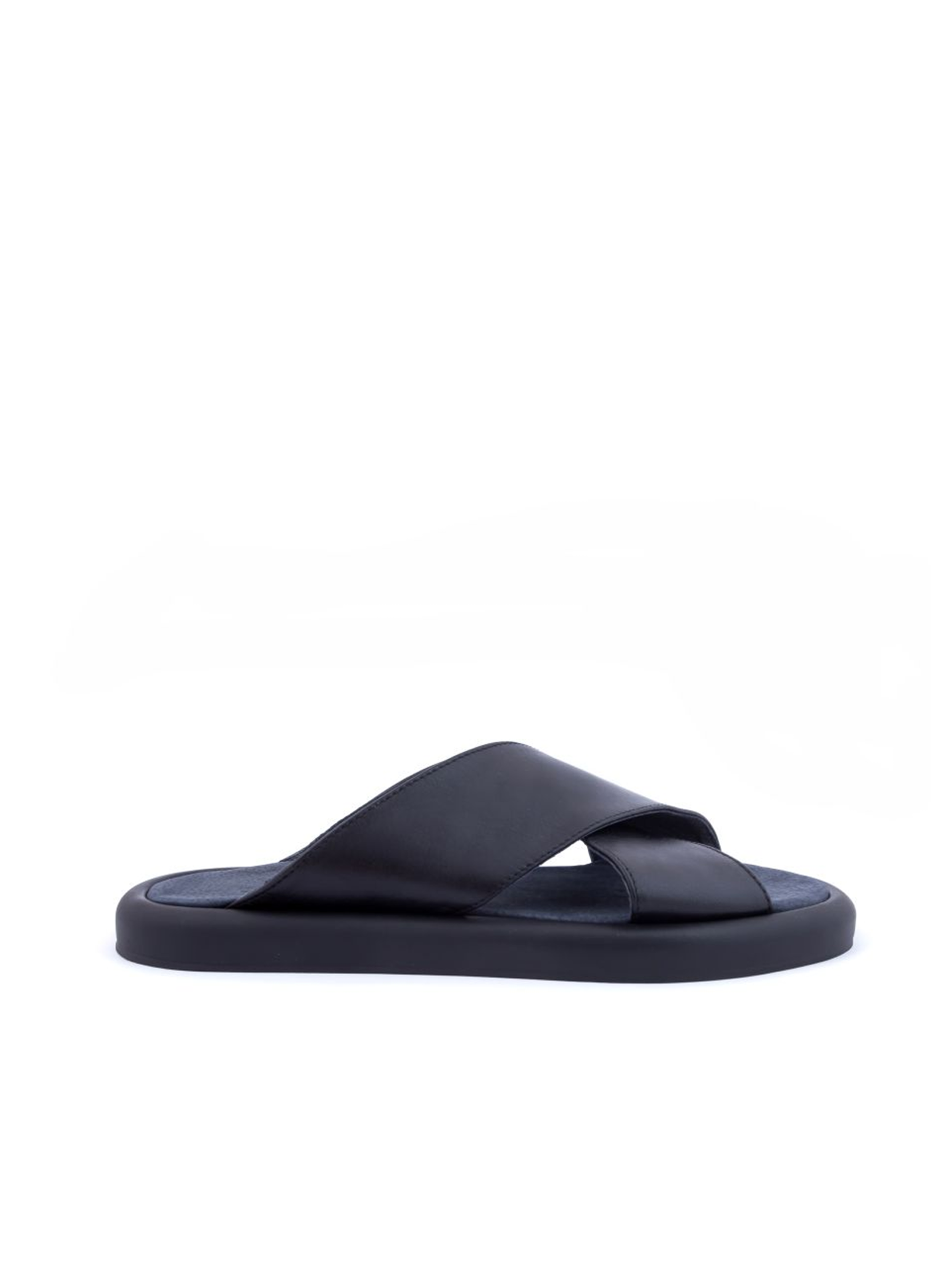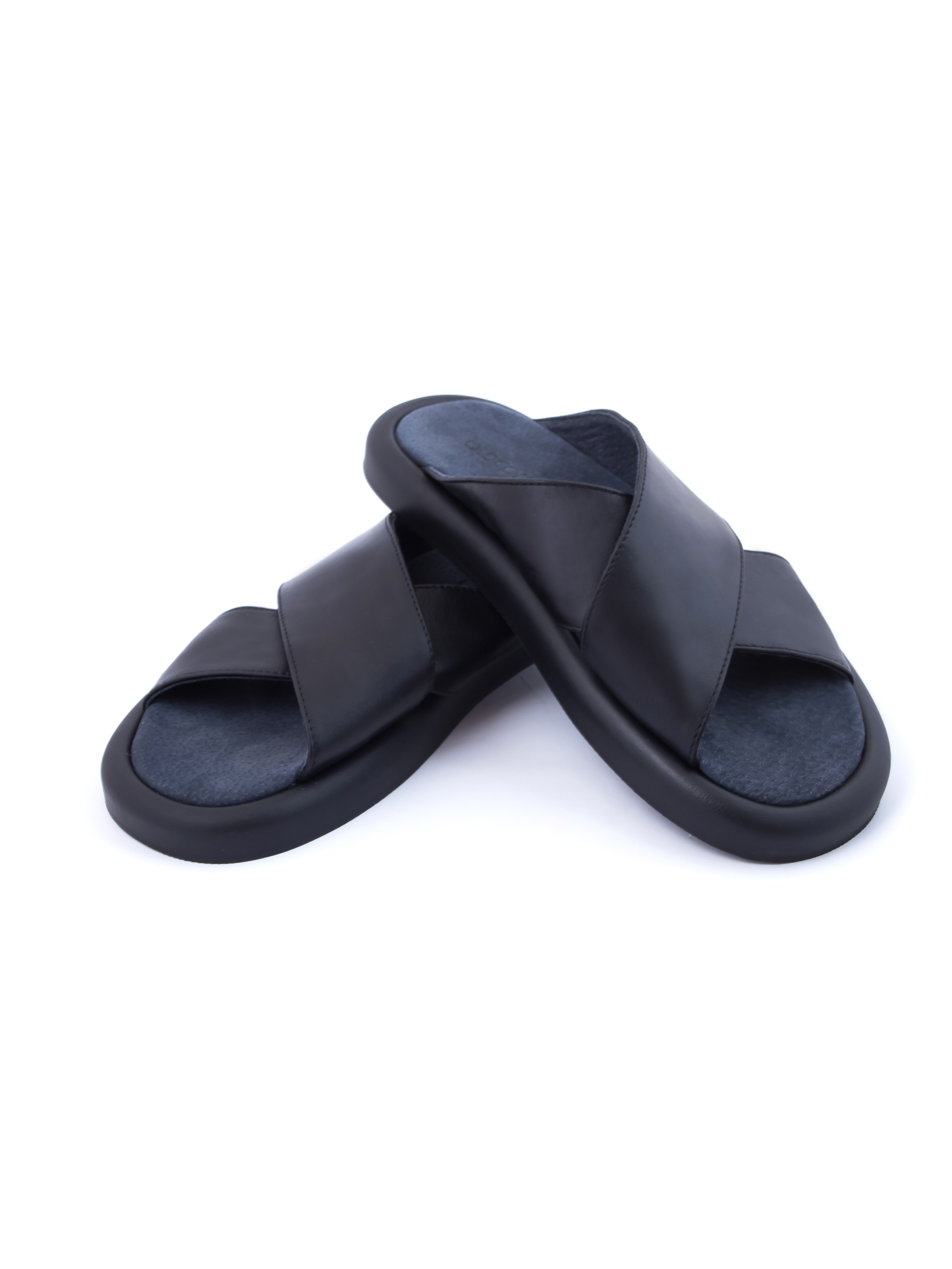 Шлепанцы черного цвета, выполнены из натуральной кожи. Классическая модель, лаконичный дизайн, мягкие и комфортные перекрестные ремешки с фирменным логотипом бренда, стелька из натуральной кожи
