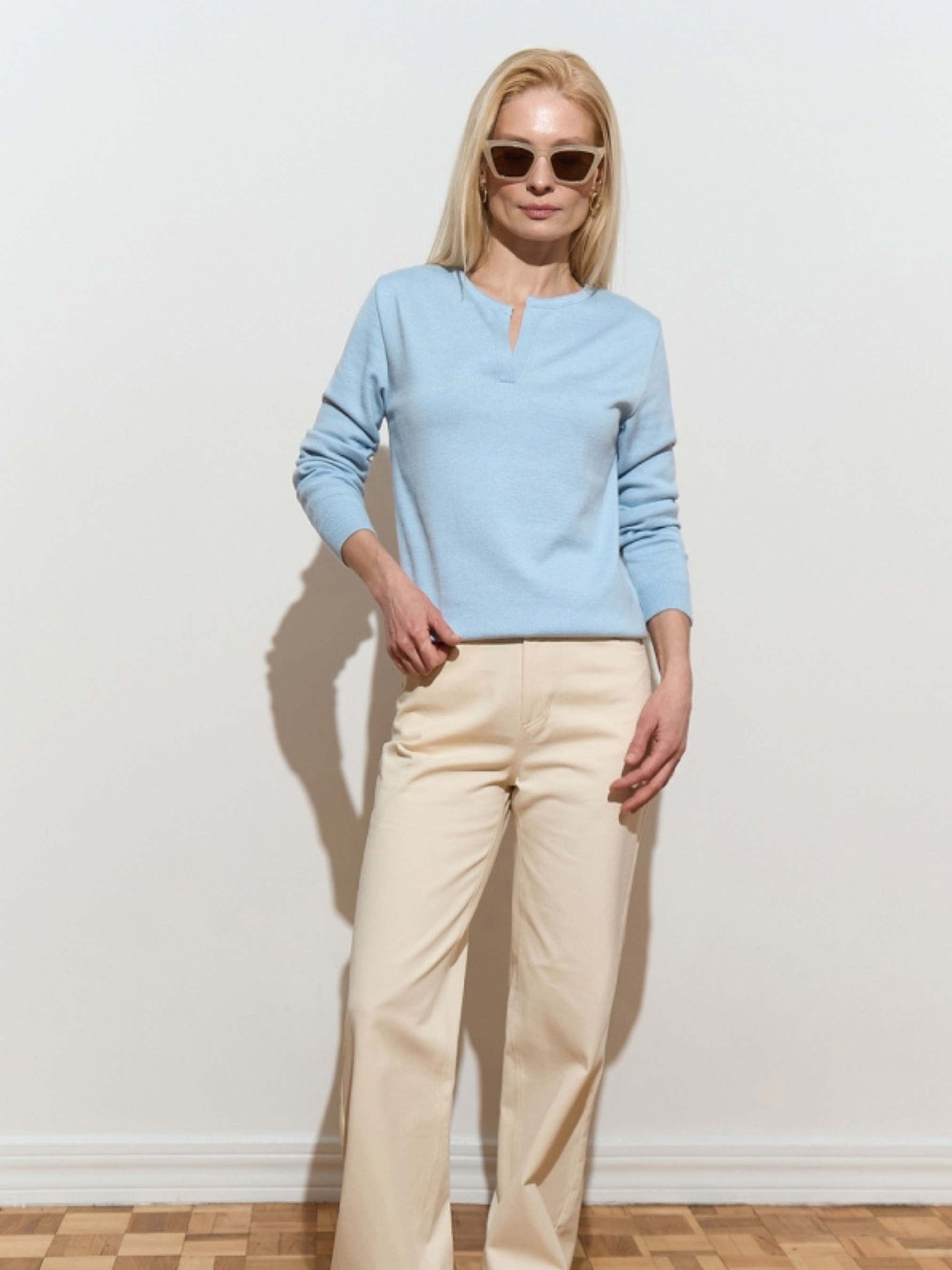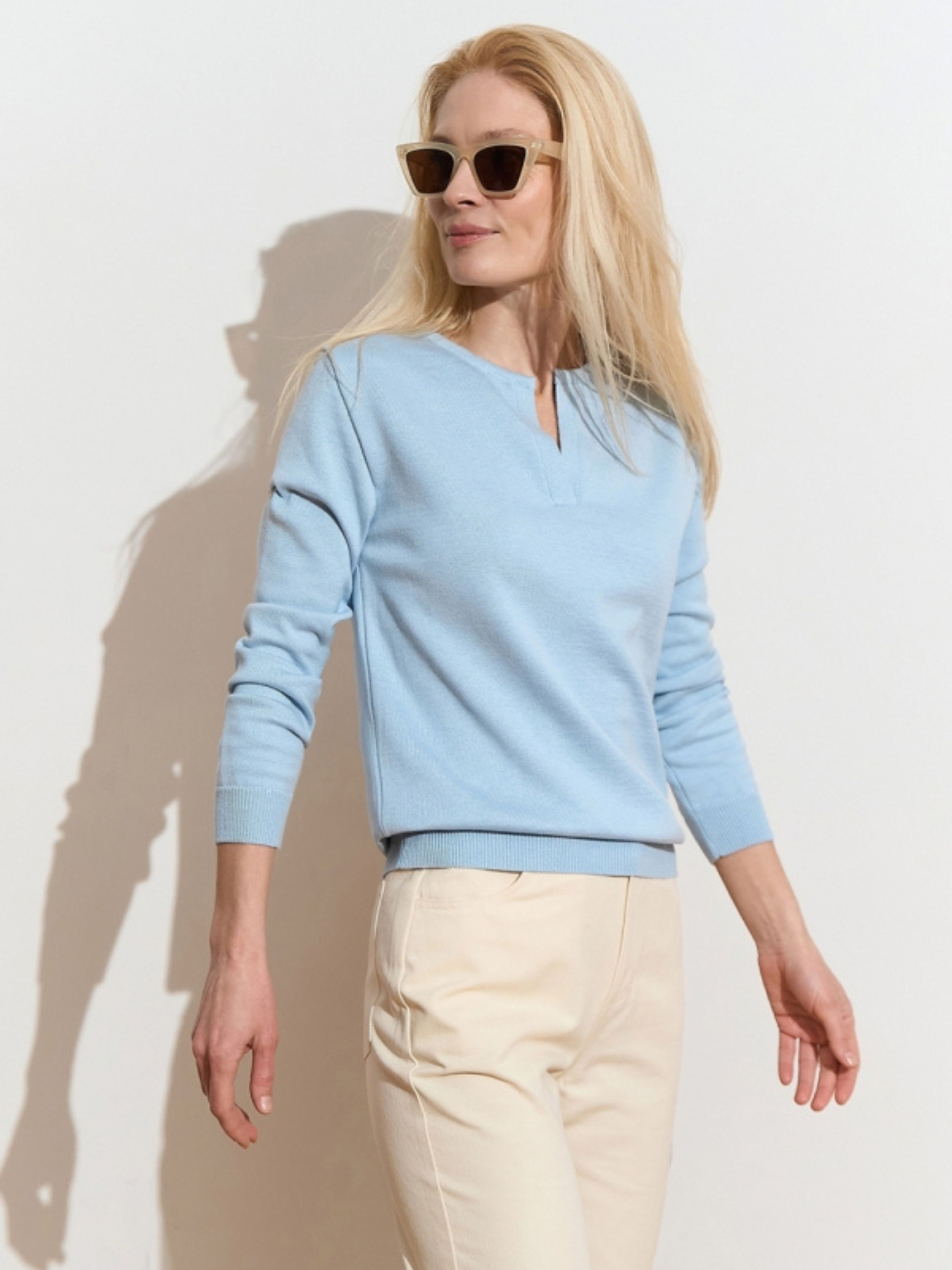 Жіночий базовий джемпер із бавовни з V-вирізом — це фундамент сучасного гардероба, де лаконічність зустрічається з бездоганним комфортом. Завдяки високому вмісту натуральної бавовни та акцентному вирізу, ця модель виглядає витончено та водночас дарує відчуття м'якості протягом усього дня. Це універсальне рішення, яке легко адаптується під будь-який настрій — від суворого офісного стилю до розслабленого образу для вихідного дня. Характеристики Матеріал: Високоякісна трикотажна пряжа. Склад: 80% бавовна, 20% віскоза (натуральна бавовна забезпечує повітропроникність, а віскоза додає виробу шовковистості та міцності). Тканина: М'який трикотаж (приємний до тіла, гіпоалергенний). Виріз: V-подібний (візуально подовжує лінію шиї та акцентує увагу на ключицях). Фасон: Прямий базовий крій (classic fit). Стиль: Базовий / Мінімалізм / Кежуал (casual). Сезон: Демісезон (осінь/весна), всесезонний варіант для приміщень. Чому цей джемпер стане вашим улюбленим? Витончений акцент: V-подібний виріз додає лаконічному джемперу жіночності та дозволяє створювати цікаві багатошарові образи, поєднуючи його з сорочками або топами. Природний комфорт: Високий вміст бавовни дозволяє шкірі «дихати», що робить джемпер ідеальним вибором для тривалого носіння в офісі чи на навчанні. Ідеальна посадка: Завдяки додаванню віскози, трикотаж дуже еластичний — він м'яко облягає фігуру, не сковуючи рухів і не втрачаючи форму з часом. Універсальність: Це справжній «чистий аркуш» для ваших аксесуарів — додайте масивний ланцюжок для вечірнього виходу або лаконічну підвіску для повсякденних справ. Легкість у догляді: Суміш бавовни та віскози менше схильна до появи ковтунців і добре зберігає колір навіть після багаторазового прання. Рекомендації з догляду Прання: Делікатне машинне або ручне прання при температурі не вище 30°C. Рекомендується прати у вивернутому стані. Засоби: Використовуйте м’які рідкі гелі для трикотажу. Уникайте агресивних засобів та відбілювачів. Сушіння: Сушіть виріб у розправленому вигляді на горизонтальній поверхні. Важливо: не сушіть на вішалці, щоб бавовняна нитка не розтягувалася під власною вагою. Прасування: Зазвичай джемпер майже не мнеться. За необхідності скористайтеся вертикальним відпарювачем або прасуйте з виворітного боку на низькій температурі.