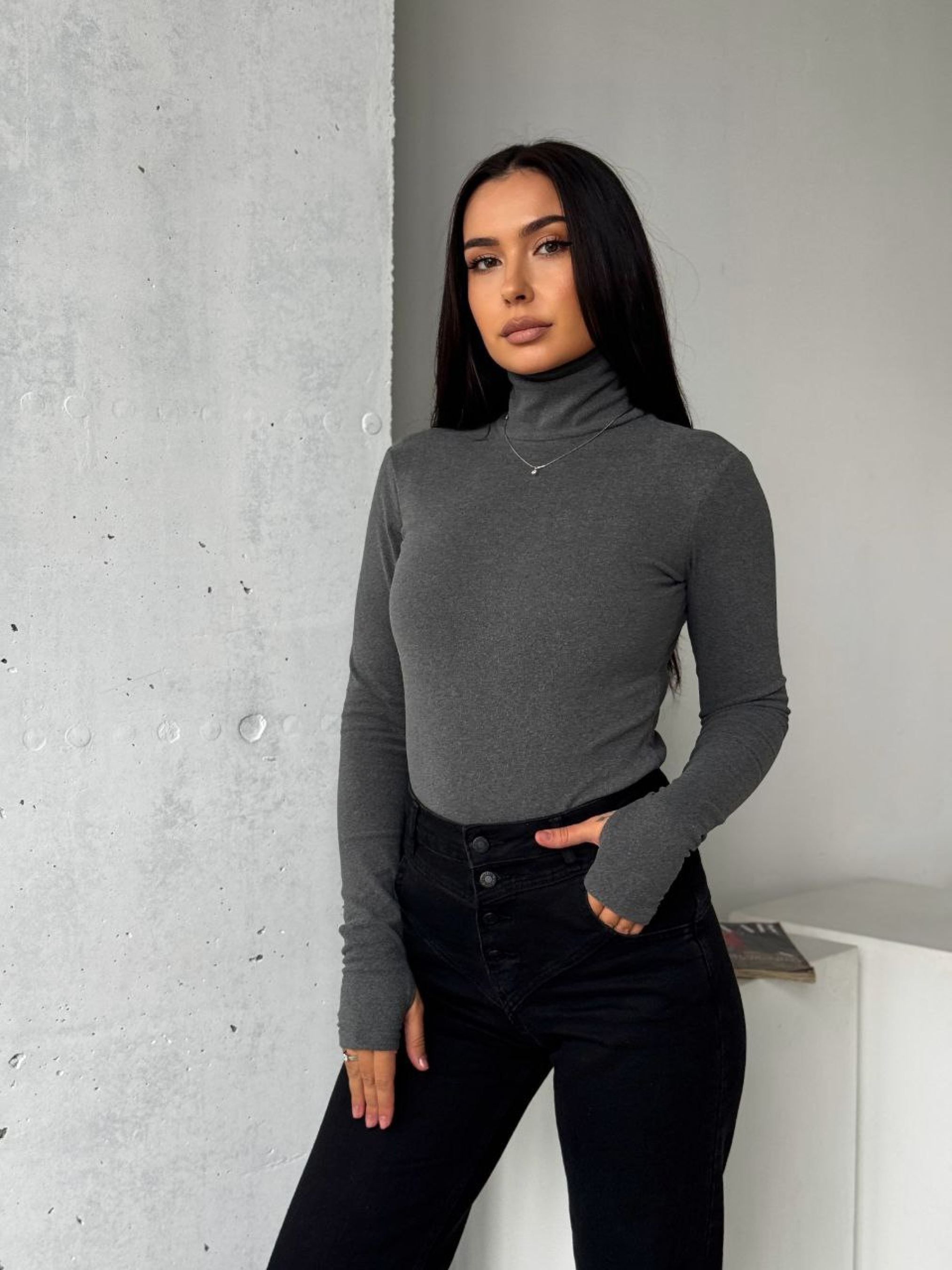 Жіночий трикотажний термогольф — це незамінна база для створення затишних багатошарових образів у прохолодну пору року. Завдяки продуманому складу з переважанням бавовни та віскози, він не лише зігріває, а й дозволяє шкірі «дихати», створюючи ефект терморегуляції. Гладка фактура та облягаючий крій роблять його ідеальним варіантом як під піджак чи кардиган, так і в ролі самостійного елемента гардероба. Характеристики Матеріал: Високоякісний трикотаж (м'який, приємний до тіла, з ефектом «другої шкіри»). Склад: 70% бавовна, 25% віскоза, 5% еластан (натуральна основа для комфорту та еластан для ідеальної посадки). Горловина: Висока стійка (надійно захищає шию від холоду). Застібка: Без застібки (одягається через голову). Фактура: Гладка (без рубчика чи зайвих деталей). Сезон: Демісезон / Зима. Країна виробник: Україна. Чому цей термогольф стане вашим фаворитом? Терморегуляція: Високий вміст бавовни у поєднанні з віскозою допомагає утримувати природне тепло тіла, при цьому відводячи зайву вологу. Це робить його ідеальним вибором для активного дня. Зносостійкість: Завдяки додаванню еластану гольф не розтягується на ліктях і не втрачає свою форму навіть після тривалого носіння та частих циклів прання. Універсальність: Це справжній «чистий аркуш» для ваших аксесуарів — він однаково гарно виглядає з масивними ланцюжками, хустками або під теплою фланелевою сорочкою в клітинку. Відсутність зайвого декору: Мінімалістичний дизайн дозволяє інтегрувати гольф у будь-який стиль — від суворого ділового до розслабленого повсякденного. Рекомендації з догляду Прання: Рекомендується прати при температурі не вище 30-40°C на делікатному режимі. Використовуйте світлі засоби для прання, щоб зберегти ніжний молочний відтінок. Засоби: Краще обирати рідкі гелі замість порошків, оскільки вони краще вимиваються з натуральних волокон бавовни. Сушіння: Сушіть у розправленому вигляді природним шляхом. Уникайте сушіння на прямих сонячних променях, щоб тканина не набула жовтуватого відтінку. Прасування: Прасуйте з виворітного боку в режимі «Бавовна» або скористайтеся вертикальним відпарювачем.