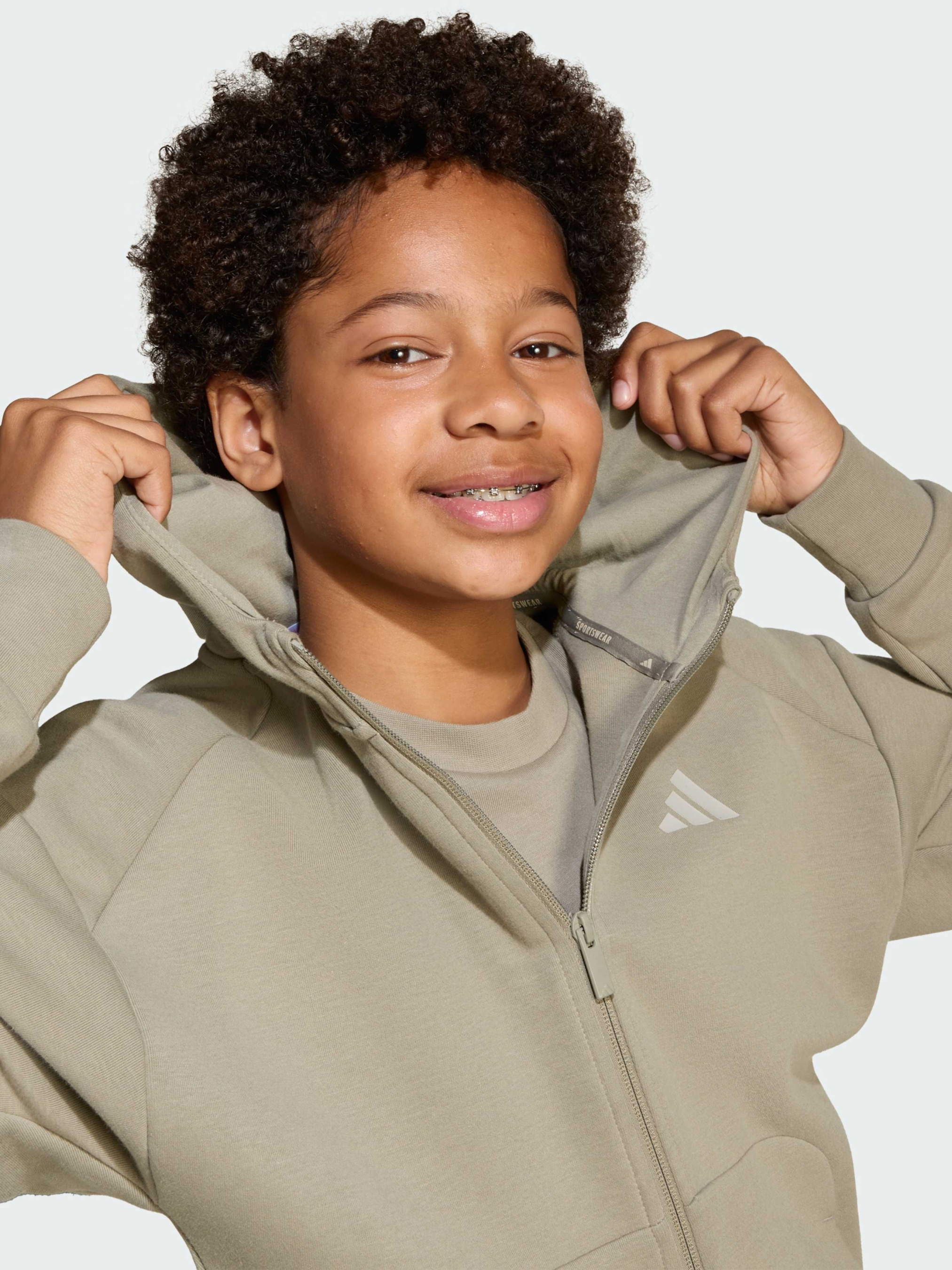 Характеристики 75% хлопка, 25% переработанный полиэстер Застежка на молнию; капюшон Карман-кенгуру Классический крой Рифленые манжеты и нижний край Описание Когда комфорт зовет, эта спортивная олимпийка для подростков готова ответить. Она сшита из мягкой и приятной на ощупь ткани, в которой комфортно двигаться. Манжеты и нижний край с рифленой отделкой защищают от холода, а полоски на рукавах демонстрируют твою принадлежность к adidas. Застегни ее поверх своей любимой футболки, чтобы получить дополнительный слой стиля и тепла.