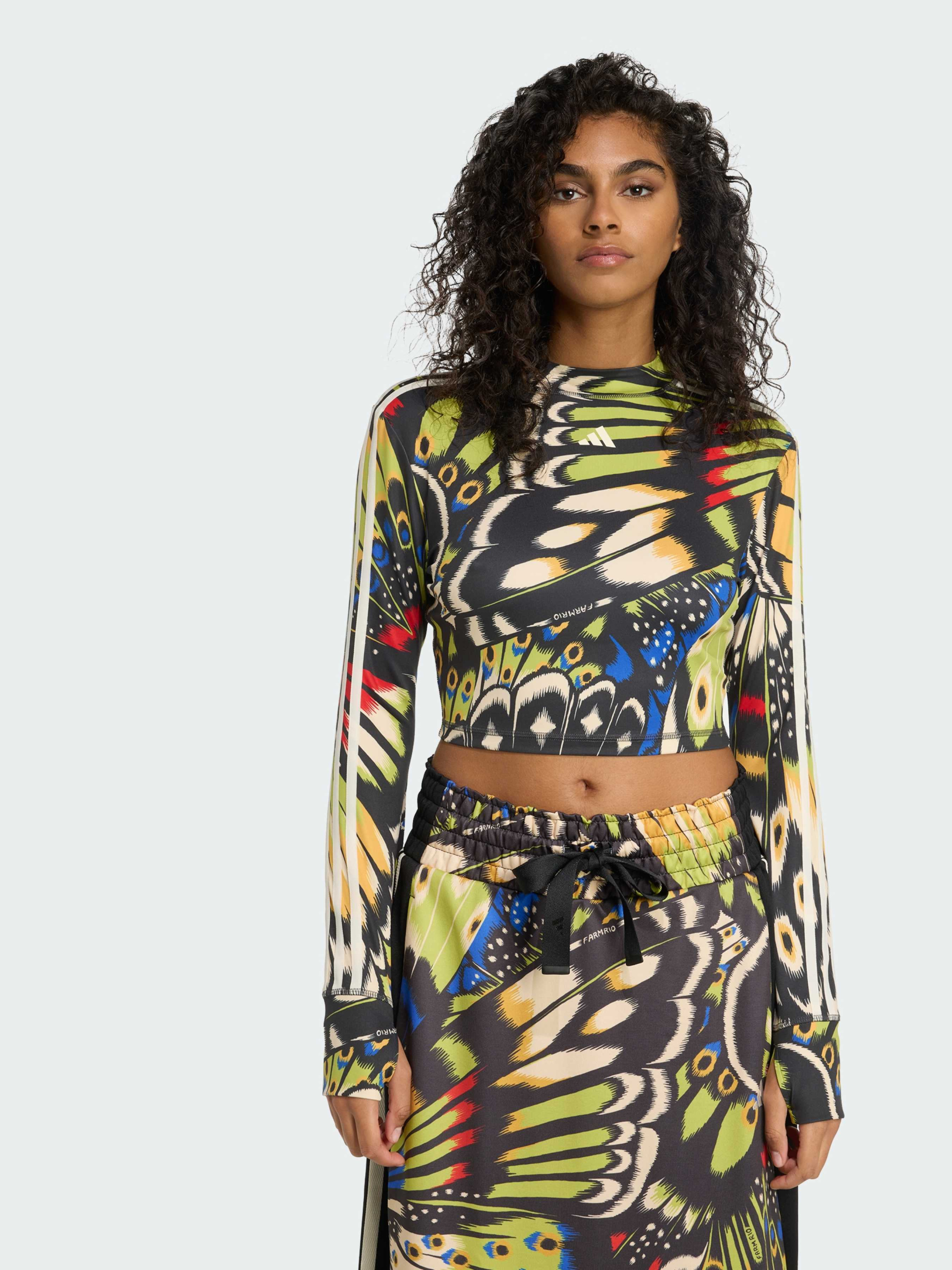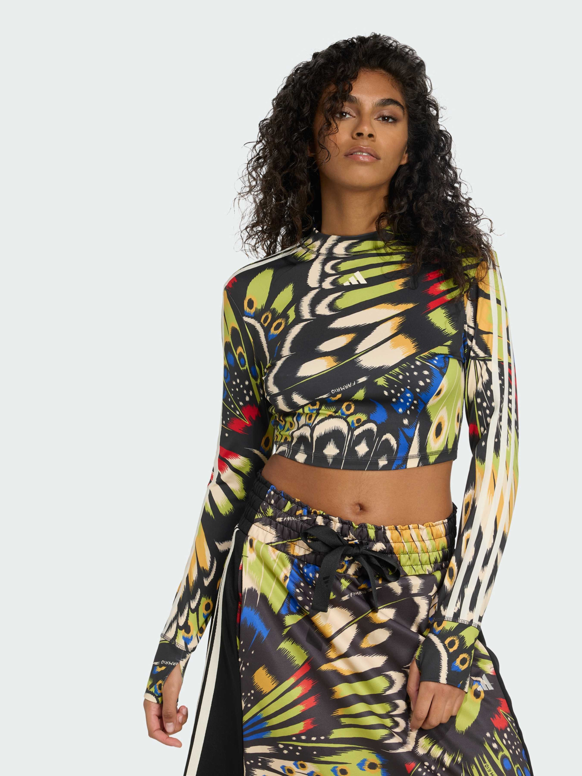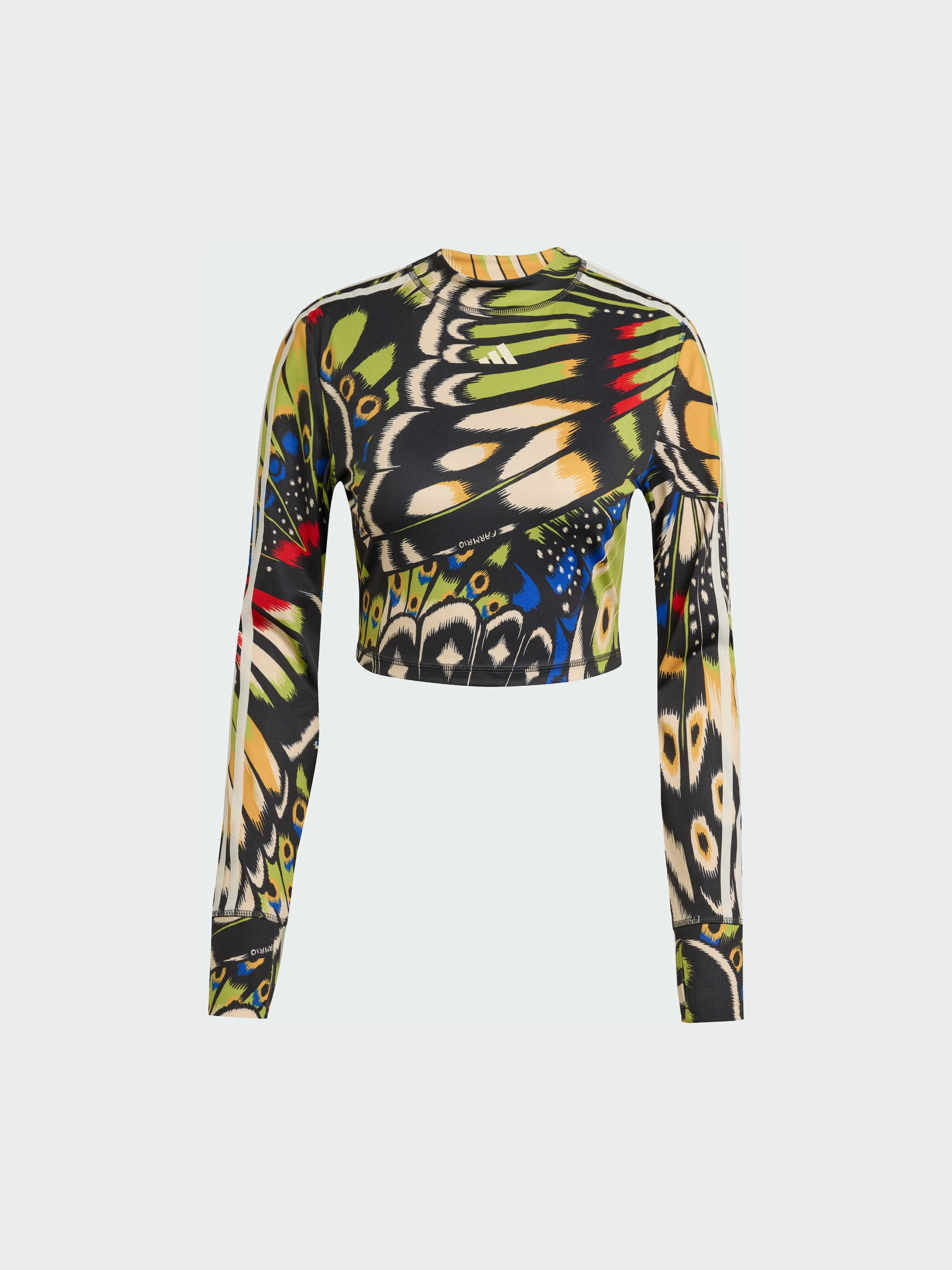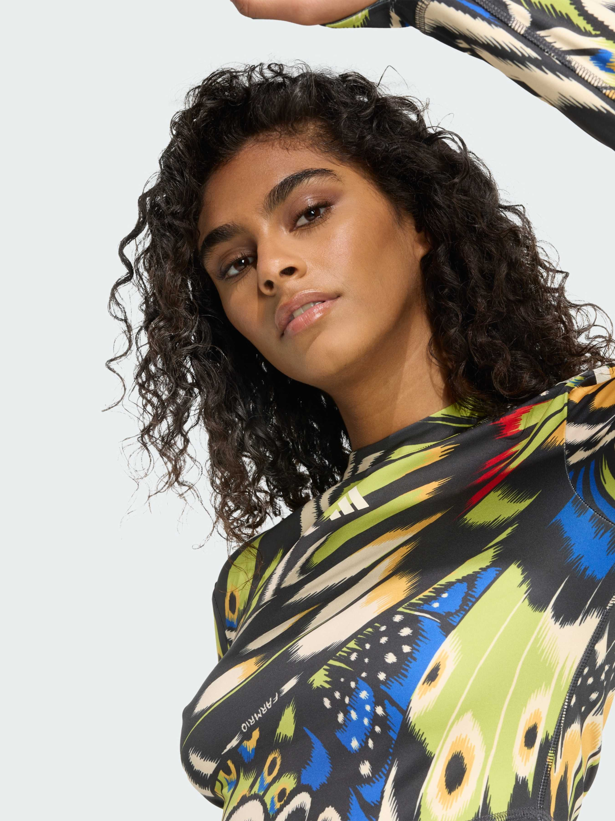 Характеристики 85% переработанный полиэстер, 15% эластан CLIMACOOL Облегающий крой Описание Обрети уверенность вместе с лонгсливом adidas x FARM Rio. Этот облегающий лонгслив объединяет спортивное мастерство adidas и яркий бразильский стиль FARM, подчеркивая твою внутреннюю силу. Длинные рукава и гладкая ткань рипстоп повторяют движения тела, обеспечивая комфорт и концентрацию. На рукавах раскинут принт с воздушными бабочками, символизирующий раскрытие уверенности в себе. Расправь свои крылья в этом лонгсливе, который чтит красоту, силу и культуру женщин Латинской Америки. Технология CLIMACOOL отводит влагу и обеспечивает сухость, помогая оставаться свежей и сосредоточенной. Быстросохнущие волокна дарят ощущение свежей кожи и комфорт при активных движениях.