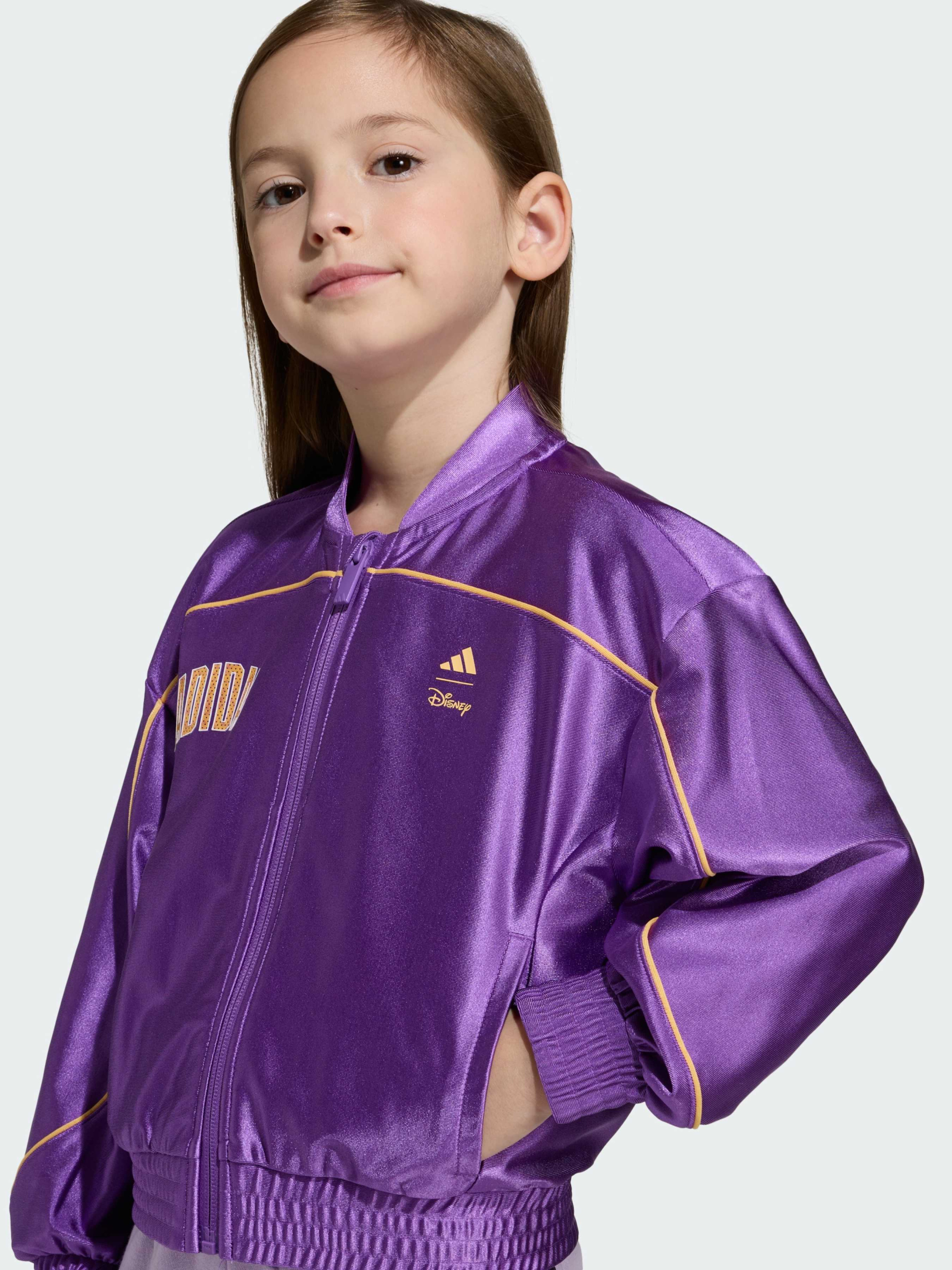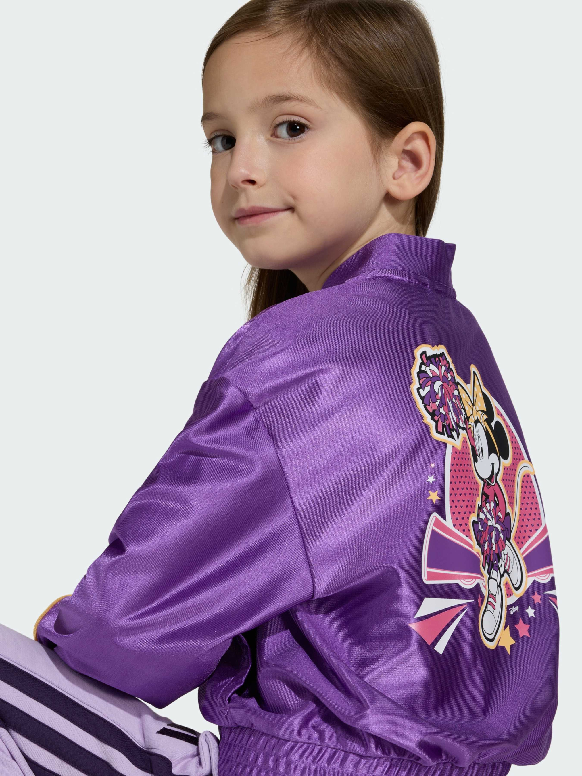 Характеристики Застежка-молния Рифленые детали Свободный крой Стандартная длина шорт Трикотаж: 89% переработанный полиэстер, 11% эластан Описание Олимпийка adidas Disney Minnie Mouse объединяет игривый стиль и комфорт на каждый день - идеальный выбор для активных и стильных детей, которые любят выражать свою индивидуальность. Гладкий трикотаж с легким блеском и свободный крой обеспечивают комфорт и не ограничивают движений, а рифленые детали добавляют современный акцент. Молния по всей длине делает модель удобной для повседневной носки. Завершает образ крупный яркий принт Минни Маус на спине и фирменный логотип adidas - стильный способ добавить немного магии Disney в повседневный образ.