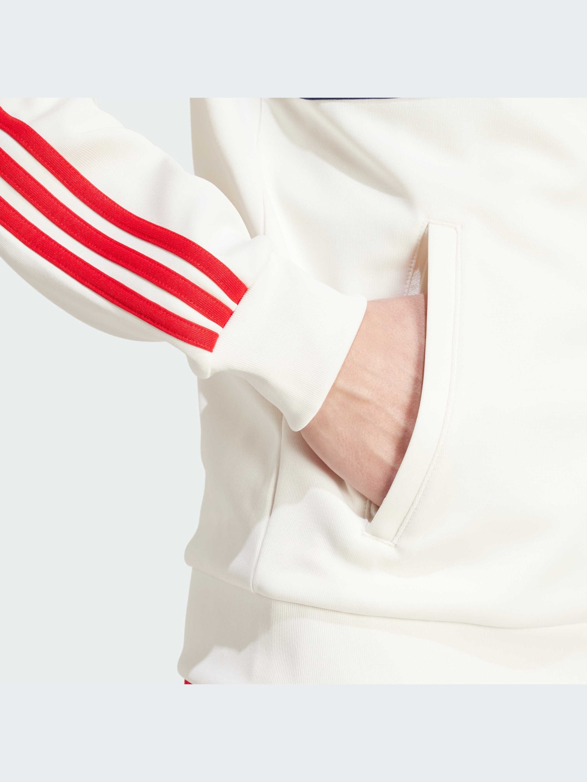 Эта спортивная кофта - переосмысленная классика, воплощенная в современном стиле. Она напоминает о богатом наследии adidas в области спортивной одежды и вдохновлена одним из крупнейших спортивных событий в мире. Изготовленная из мягкой ткани интерлок, она обеспечивает комфорт как при подготовке к тренировке, так и во время отдыха после долгого дня.
