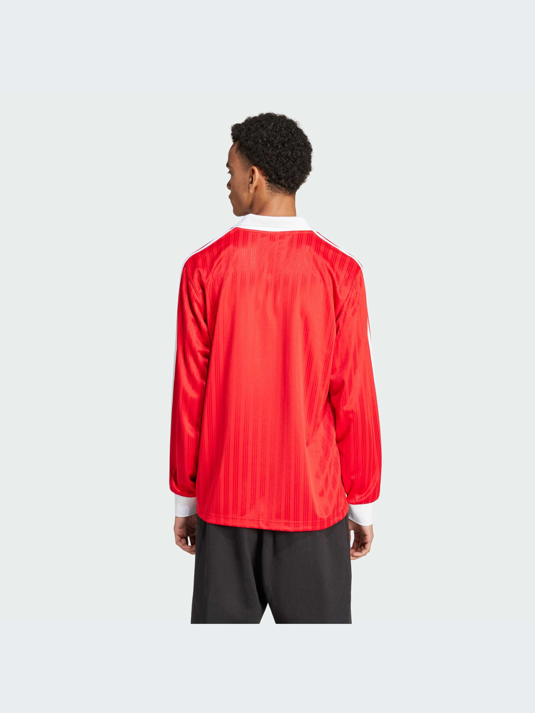 Обнови свой стиль с этой футболкой с длинным рукавом. Смелый дизайн и яркие цвета вдохновлены архивными джерси, обновленными для современных реалий. Гладкая жаккардовая ткань и рифленые детали обеспечивают комфорт, а контрастные три полоски и логотип в виде Трилистника добавляют классические элементы adidas. Надень эту современную футболку с джинсами или спортивными брюками и выделись из толпы.