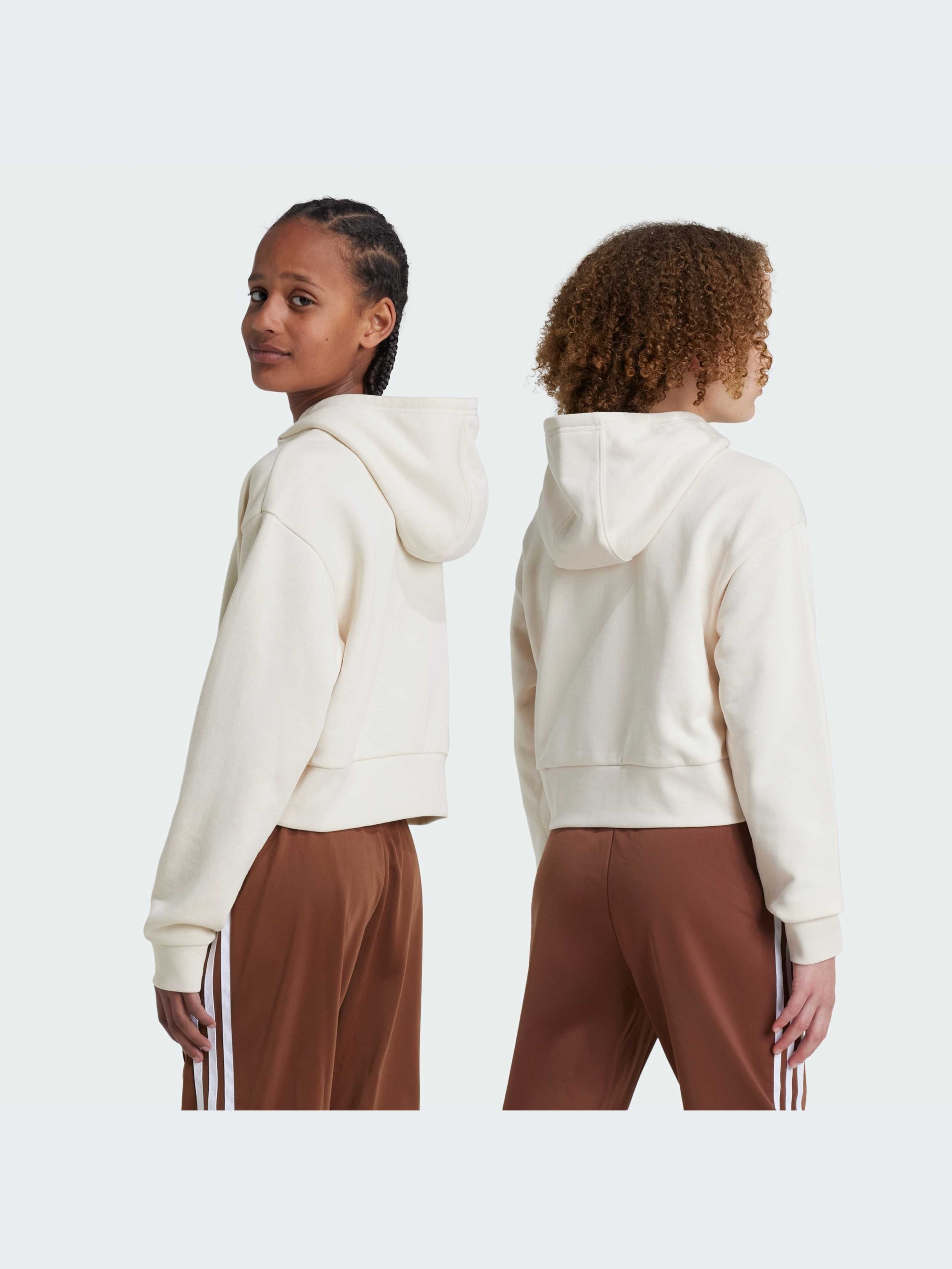 Характеристики Рифленые манжеты и нижний край Свободный крой Толстовка с капюшоном Футер: 70% хлопок, 30% переработанный полиэстер Поставляется по системе баланса масс Better Cotton, поэтому данный продукт может не содержать Better Cotton Опис Привнеси непринужденный комфорт в свой день. Это укороченное худи для подростков выполнено из комфортной трикотажной ткани и имеет свободный крой для создания расслабленного образа. Огромный логотип Трилистник спереди демонстрирует твою любовь к adidas. Хлопок для этого изделия был получен благодаря Better Cotton. Хлопок Better Cotton поставляется по модели цепочки поставок, называемой балансом масс. Это означает, что хлопок Better Cotton невозможно физически отследить до конечного продукта Идет размер в размер. Мы рекомендуем заказать модель твоего обычного размера.