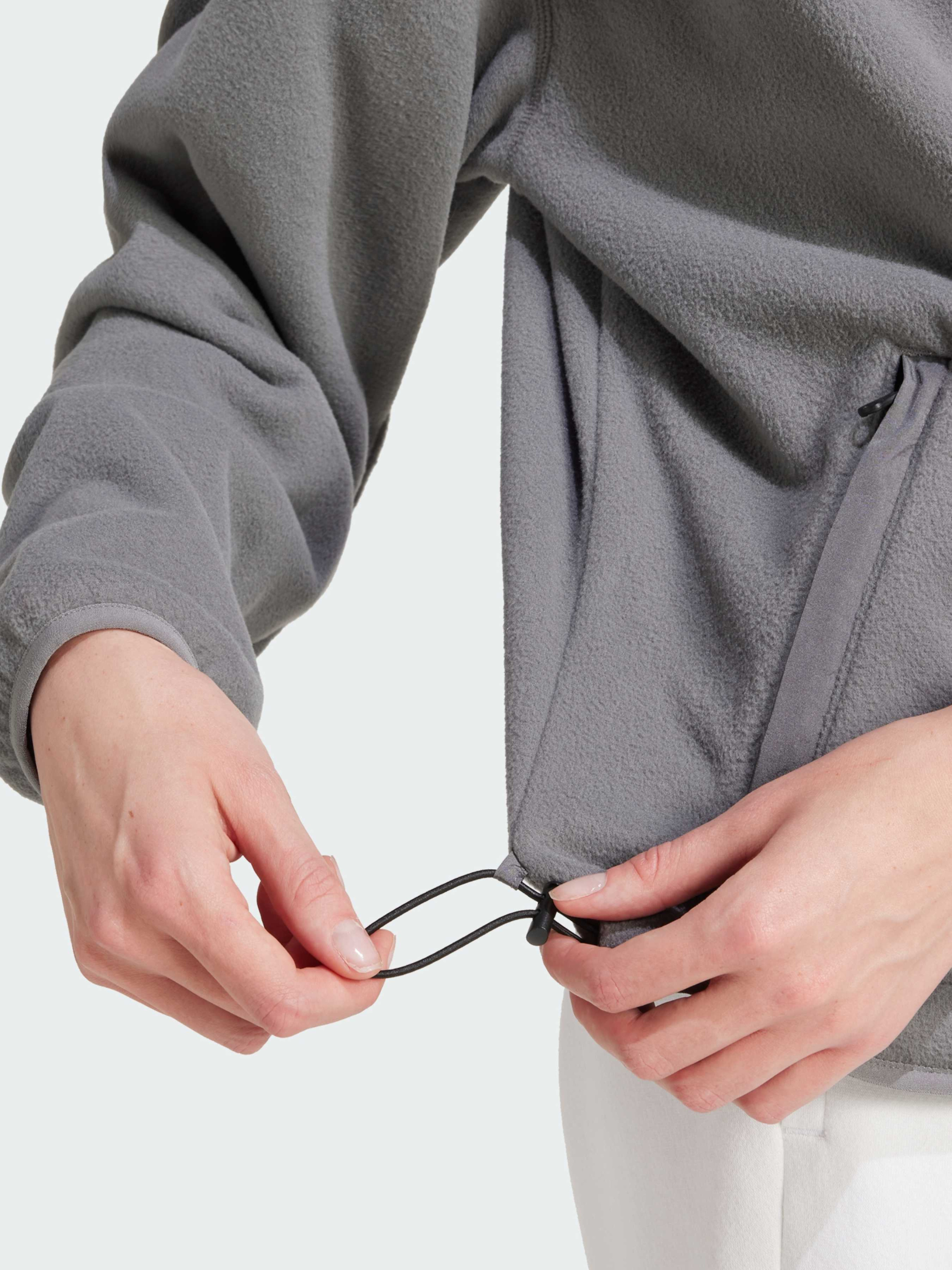 Изучаешь ли ты улицы или планируешь следующее приключение, в этой спортивной кофте adidas тебе будет уютно всегда. Свободный крой и мягкая флисовая ткань создают уют, позволяя насладиться спокойным утром или уйти в мир грез. Застежка на подоле позволяет играть с образом, сохраняя тепло, если на улице холодно. Застегни кофту и расслабься, дав волю своему воображению. Этот продукт изготовлен из 100% переработанных материалов. Повторное использование материалов, которые уже были созданы, помогает нам уменьшить количество отходов и зависимость от ограниченных ресурсов, а также сократить воздействие продукции, которую мы производим.