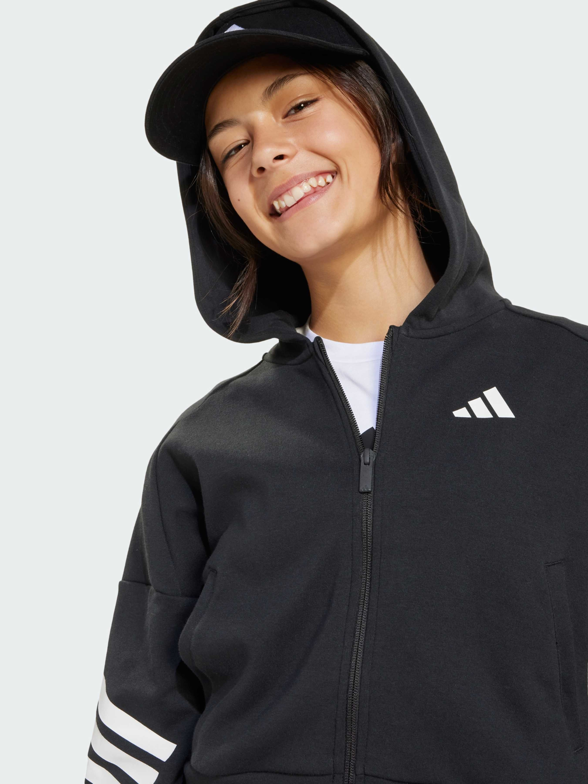 Характеристики 75% хлопок, 25% переработанный полиэстер Застежка-молния; капюшон Передние карманы Рифленые манжеты и нижний край Свободный крой Содержит не менее 70% переработанного и возобновляемого сырья Описание Отправляешься ты в школу или просто на прогулку, эта спортивная куртка adidas для подростков позаботится о тебе. Рифленые манжеты сохраняют тепло, а три полоски на рукавах придают современный спортивный вид. Передние карманы позволяют хранить предметы первой необходимости, чтобы у тебя было все необходимое под рукой. Выбирая вторичную переработку, мы можем повторно использовать уже созданные материалы, что помогает сократить количество отходов. Выбор в пользу возобновляемых материалов поможет нам избавиться от зависимости от ограниченных ресурсов. Наши продукты, изготовленные из смеси переработанных и возобновляемых материалов, содержат не менее 70% этих материалов.