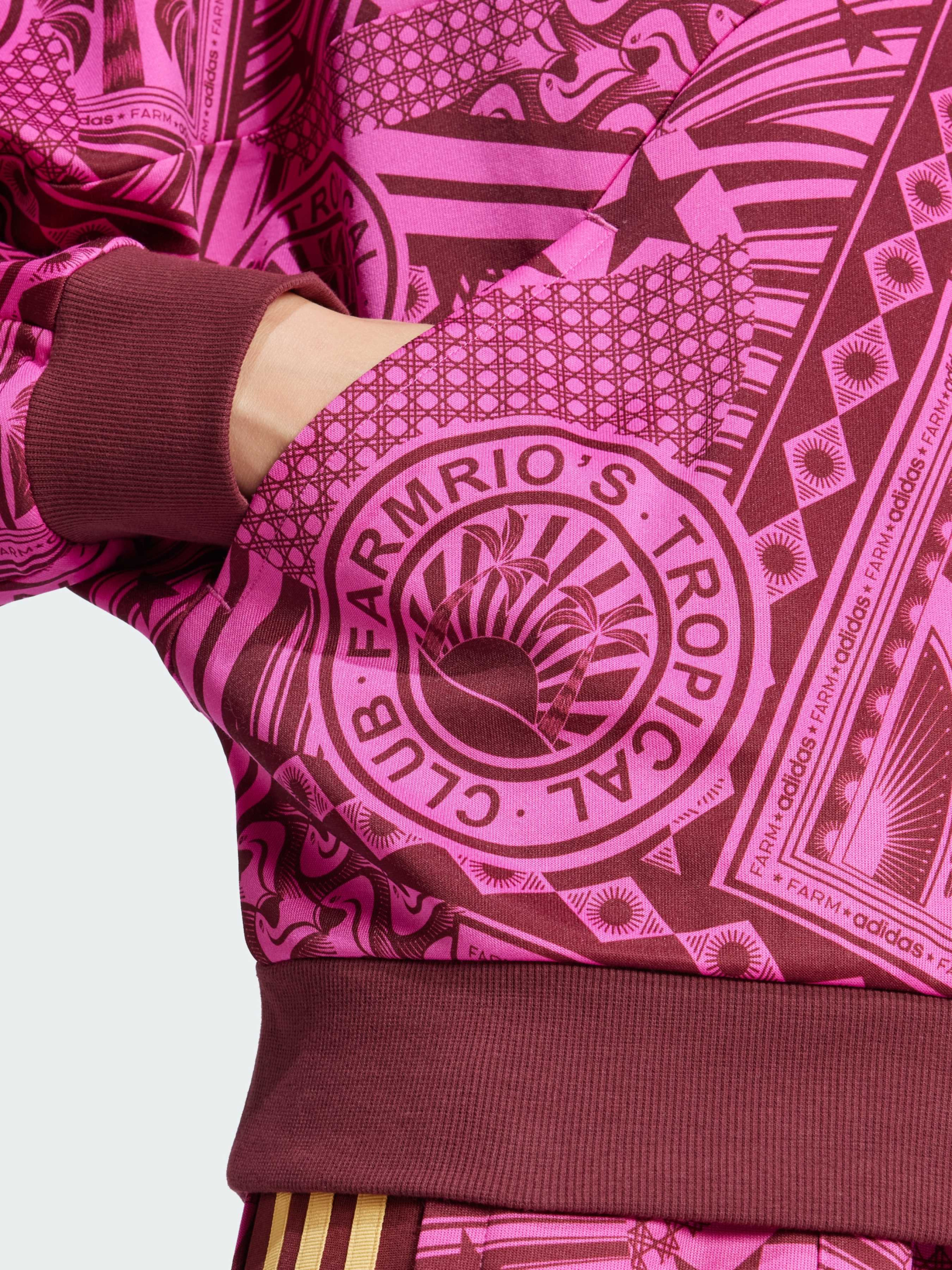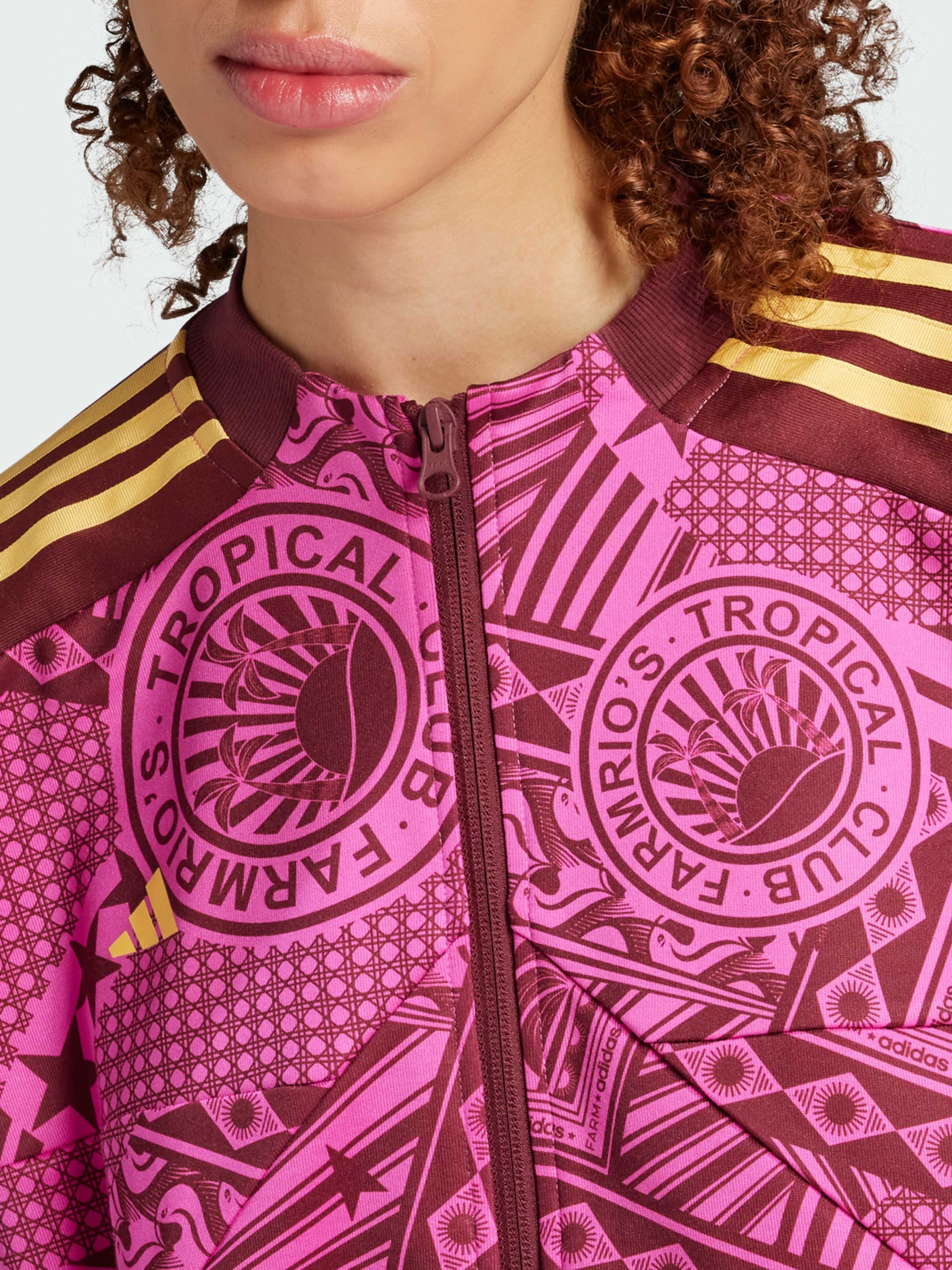 Характеристики 70% переработанный полиэстер, 30% хлопок Боковые карманы Застежка-молния Рифленые манжеты и нижний край Свободный крой Содержит не менее 70% переработанного и возобновляемого сырья Графика FARM Rio Описание Погрузись в атмосферу экзотического оазиса со спортивной кофтой adidas x FARM Rio. Яркие цвета, вдохновленные закатами в пустыне, добавляют образу свежести и динамичности. Три полоски и логотип придают спортивную изюминку, подчеркивая связь с футбольным наследием. Эта кофта идеально сочетает тропический стиль FARM с городским шиком. Выбирая вторичную переработку, мы можем повторно использовать уже созданные материалы, что помогает сократить количество отходов. Выбор в пользу возобновляемых материалов поможет нам избавиться от зависимости от ограниченных ресурсов. Наши изделия, изготовленные из смеси переработанных и возобновляемых материалов, содержат не менее 70% этих материалов.