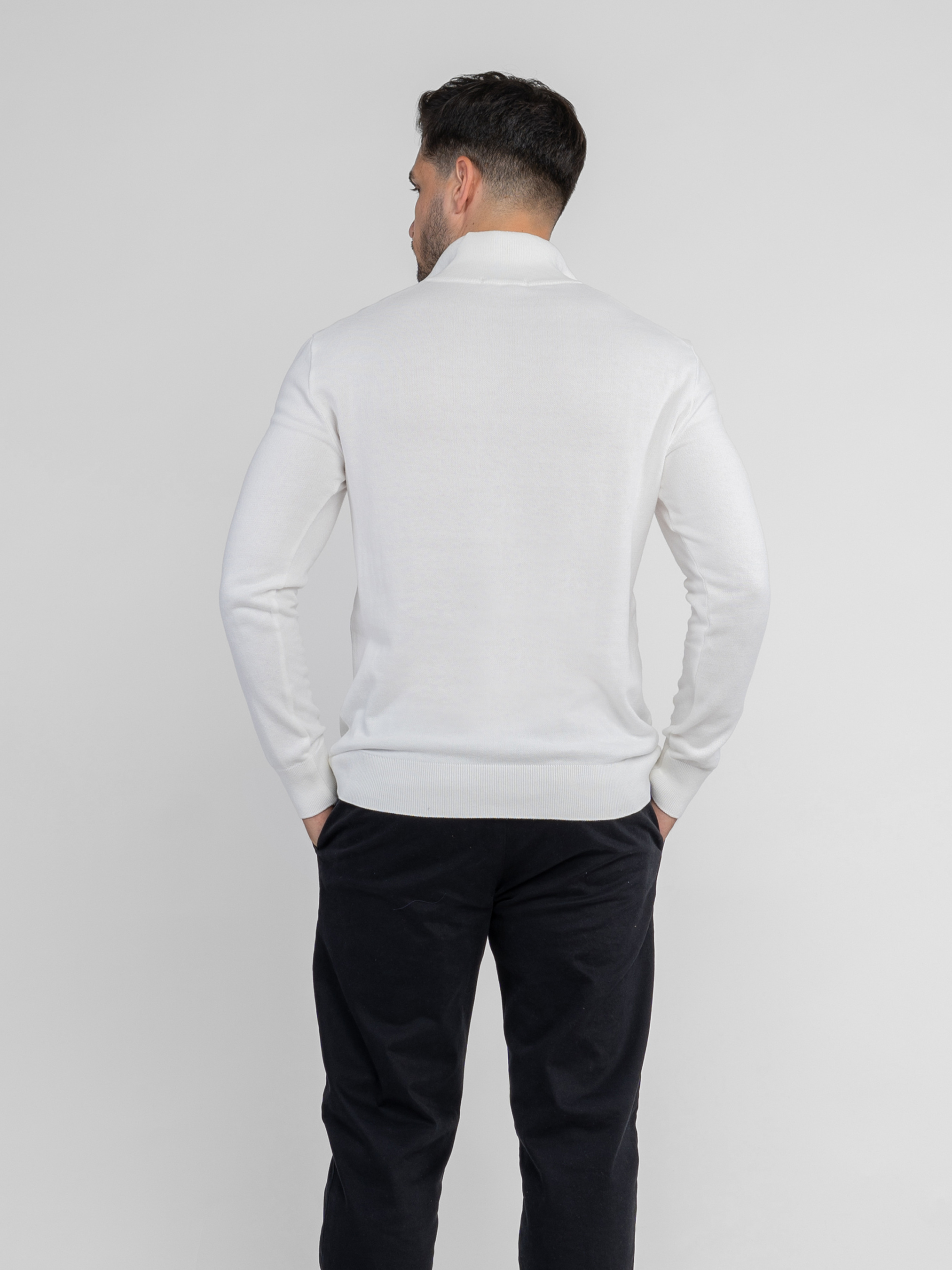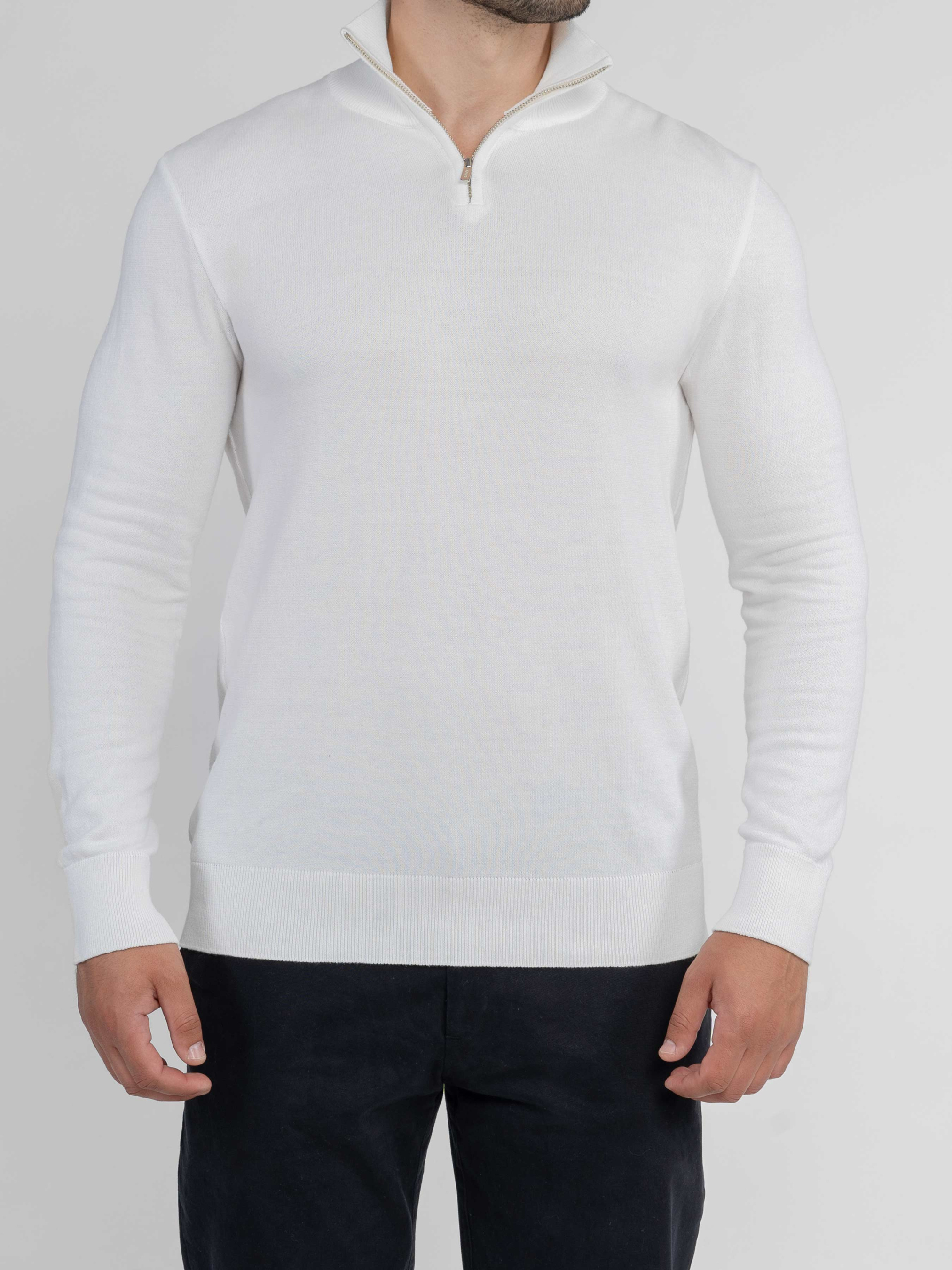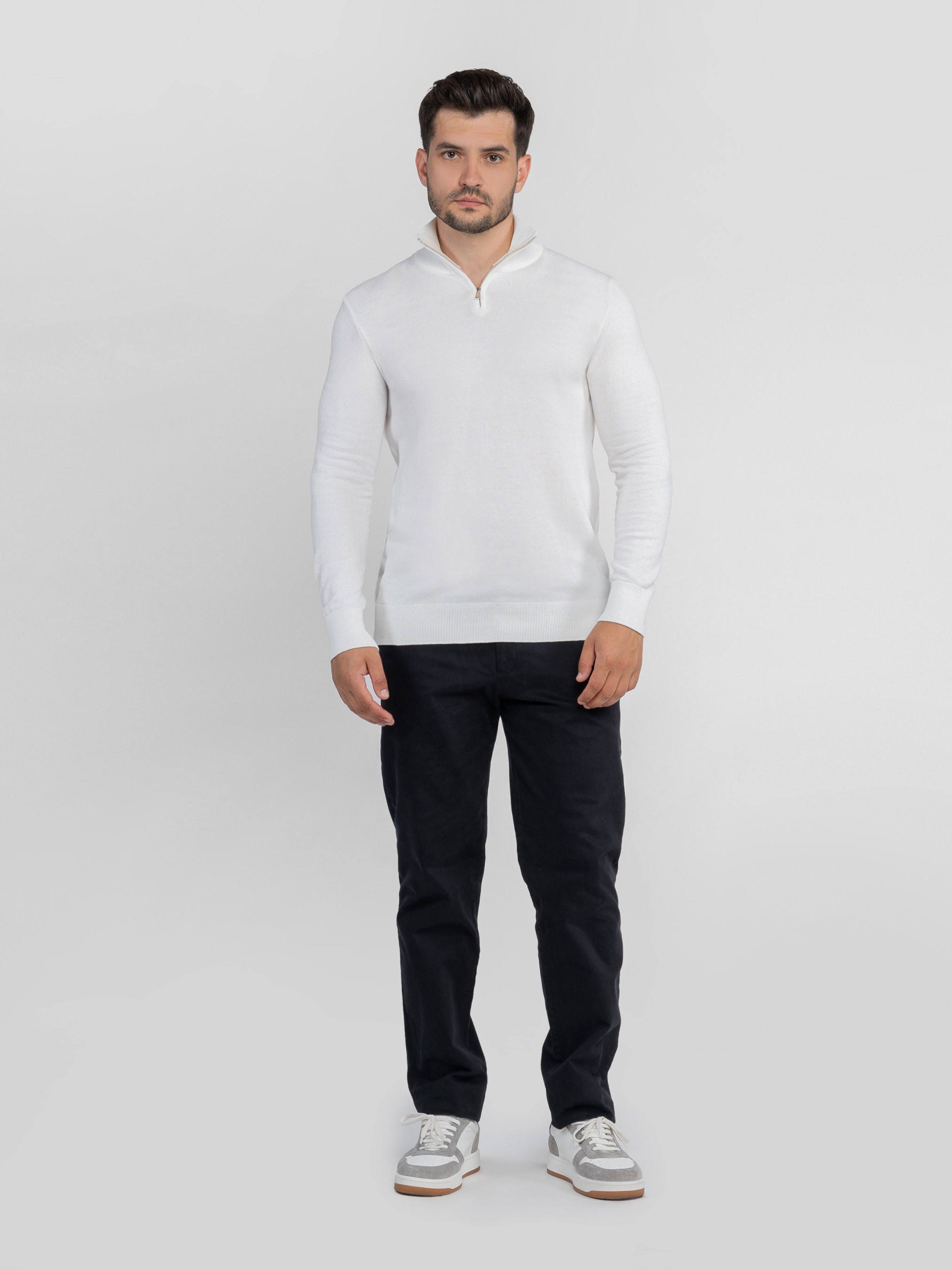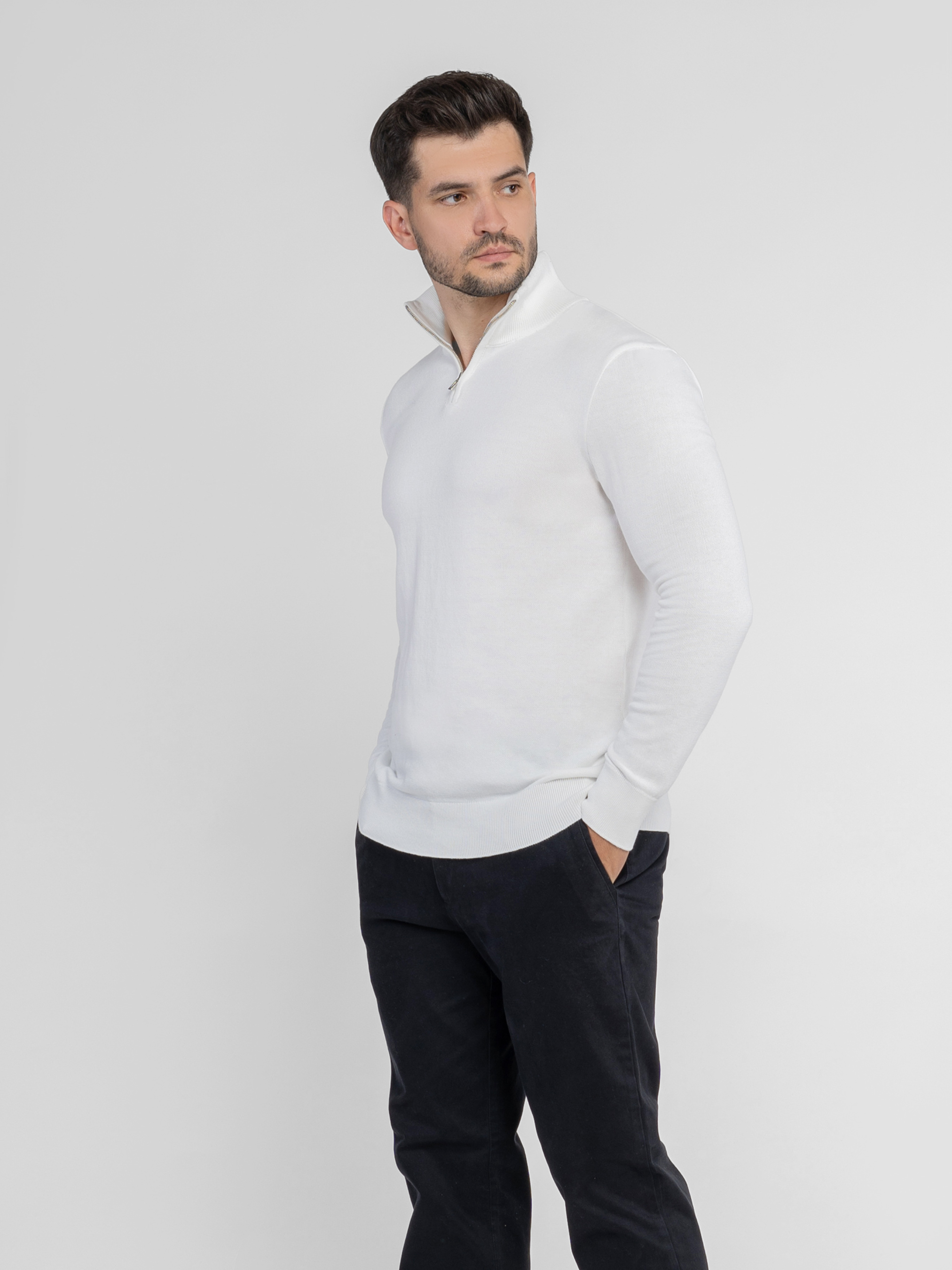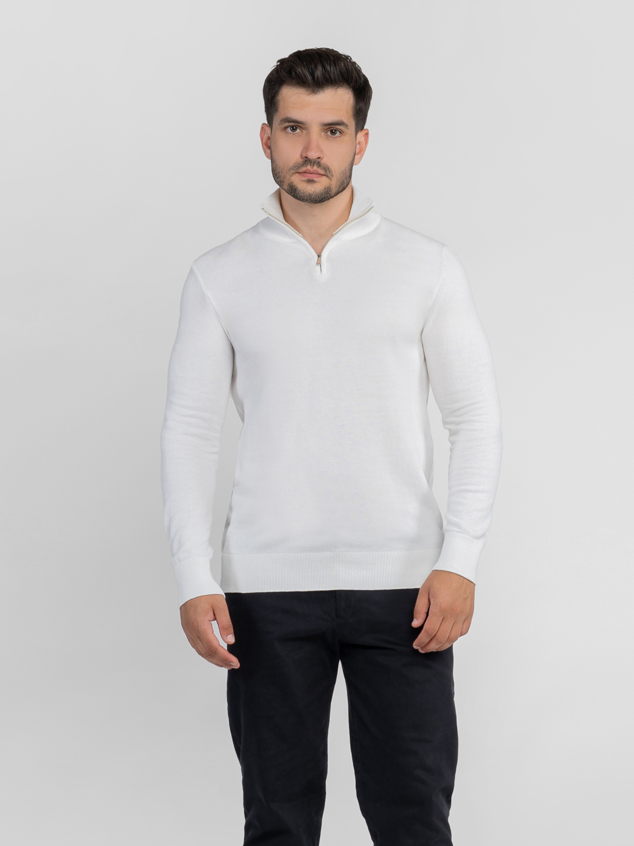Мужской свитер Arber белого цвета создан из тонкой пряжи высококачественного хлопка с добавками. Изделие мягкое и приятное на ощупь, фактура дышит и обеспечивает комфорт в течение всего дня. Модель с воротником-стойкой на молнии и длинными рукавами легко сочетается с джинсами или классическими брюками для непринужденного и элегантного образа. Модель на фото: размер 48, рост 180 см, параметры 103/85/97.