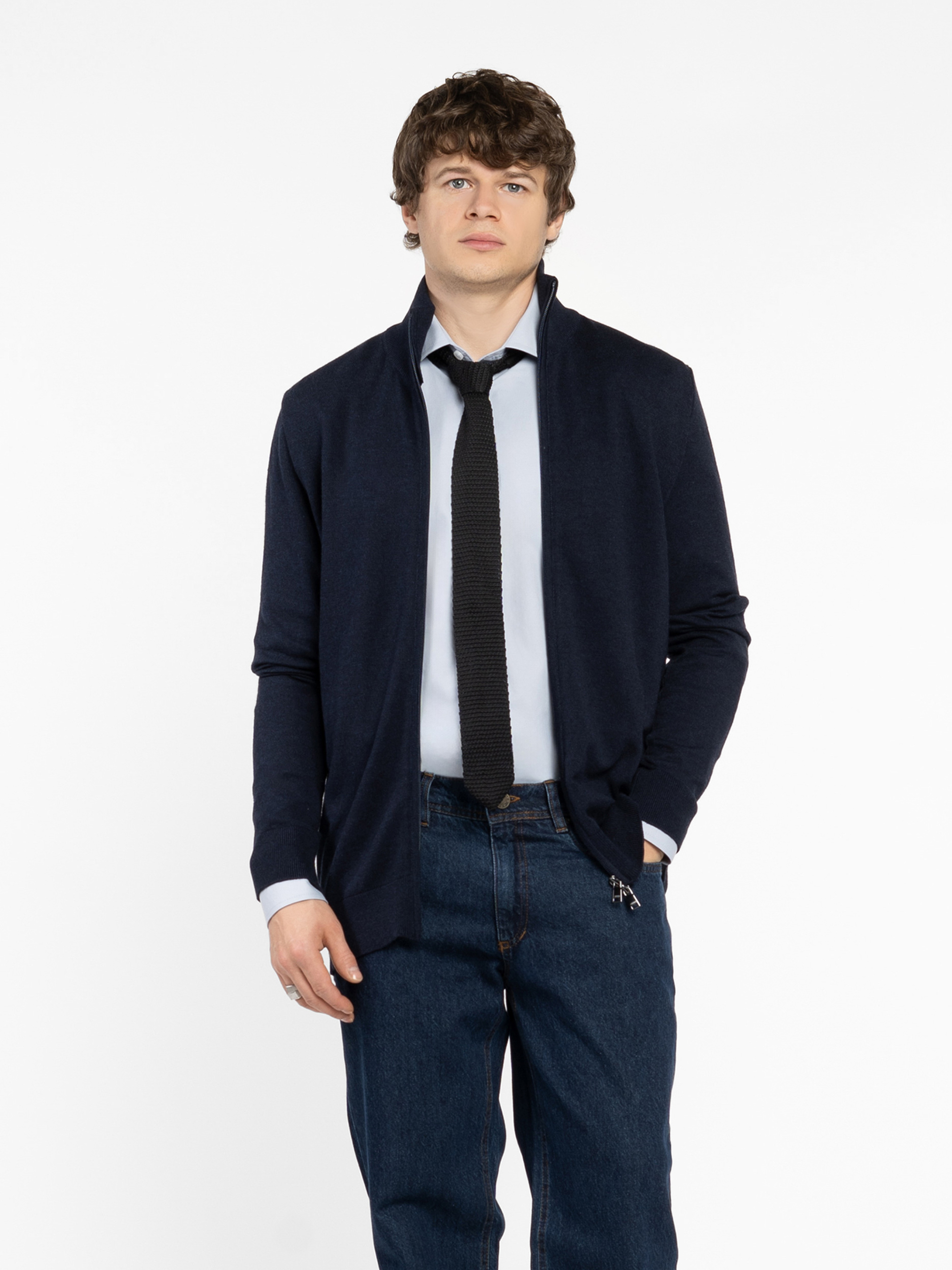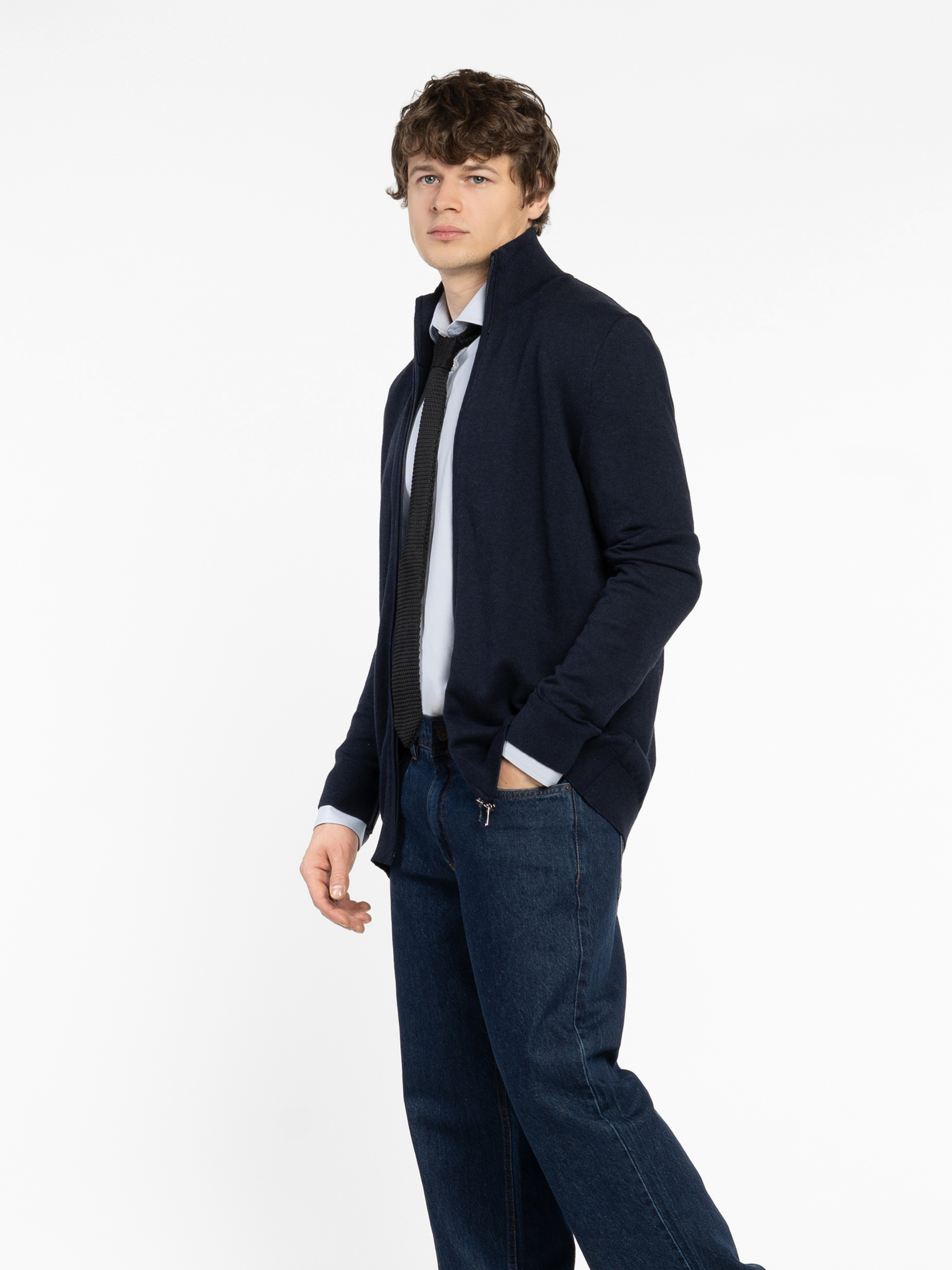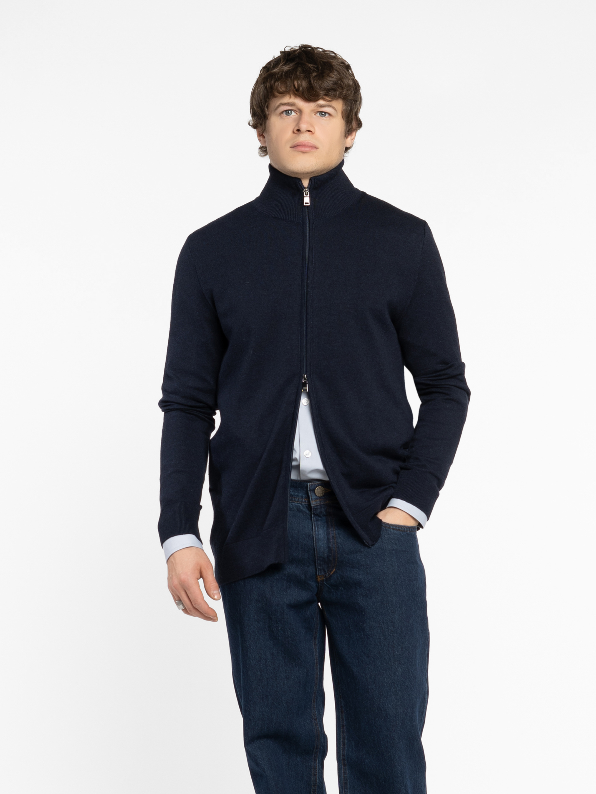 Мужская кофта Arber темно-синего цвета на молнии, выполнена из мягкой пряжи на основе хлопка с добавлением нейлона и шерсти. Легкая, комфортная и приятная на ощупь — идеальна для повседневной носки. Классический крой и удобная застежка на молнии делают ее универсальной базовой вещью, которая легко сочетается с джинсами, брюками или спортивными элементами гардероба. Модель на фото: размер 48, рост 188 см, параметры 97/78/96.