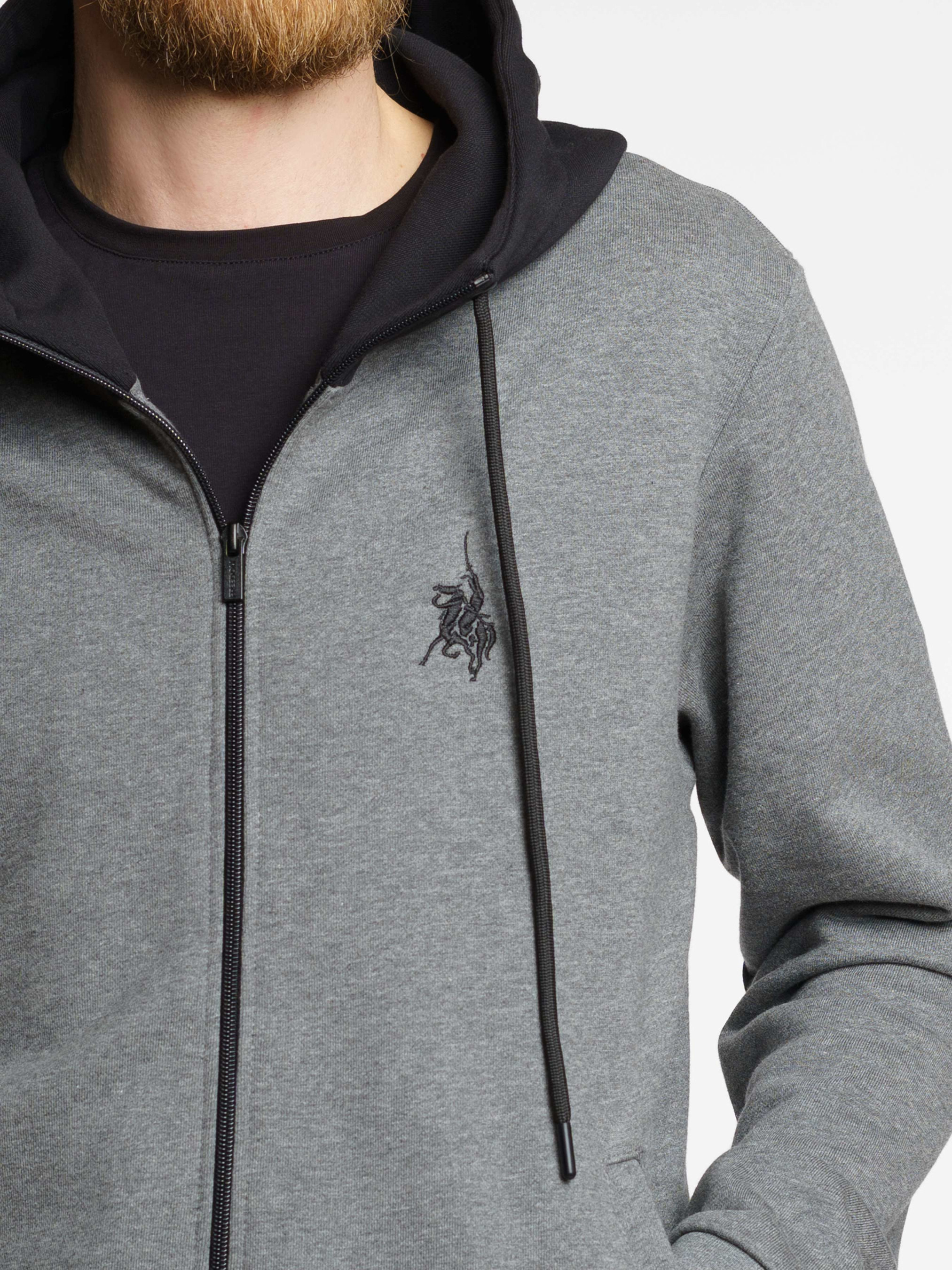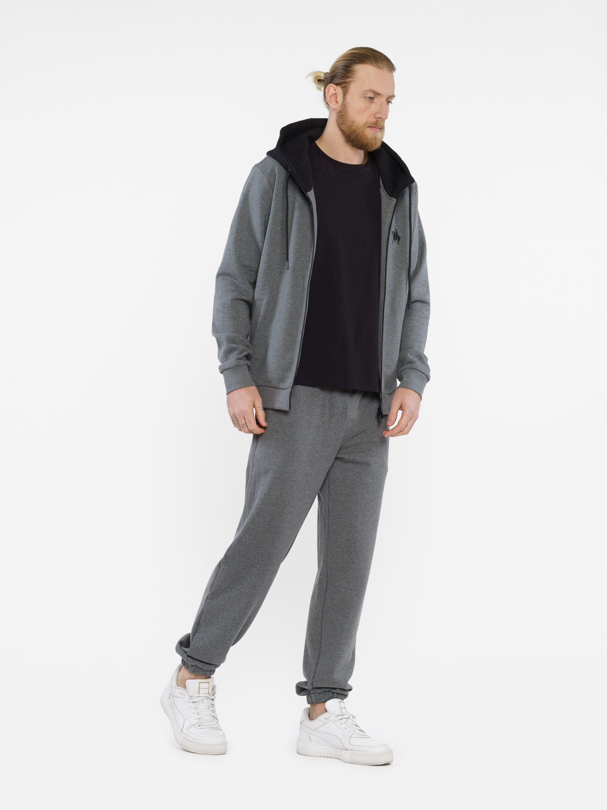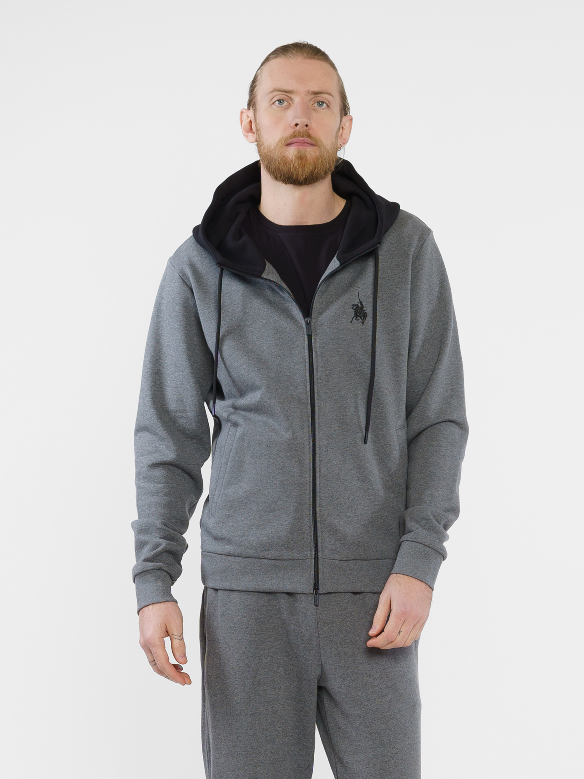 Спортивная кофта серого цвета из лимитированной коллекции Freedom by Arber. Модель с контрастным капюшоном, с двумя прорезными боковыми карманами, кофта декорирована вышивкой-символом Freedom - козак на коне и принтом, которые созданы для настоящих ценителей свободы. Изделие выполнено из натуральной трикотажной ткани на основе хлопка, хорошо держит форму. Эта комфортная и практичная вещь подходит для активного отдыха или прогулки. Для любителей трикотажных костюмов есть брюки из такой же ткани: F26.14.14.411.