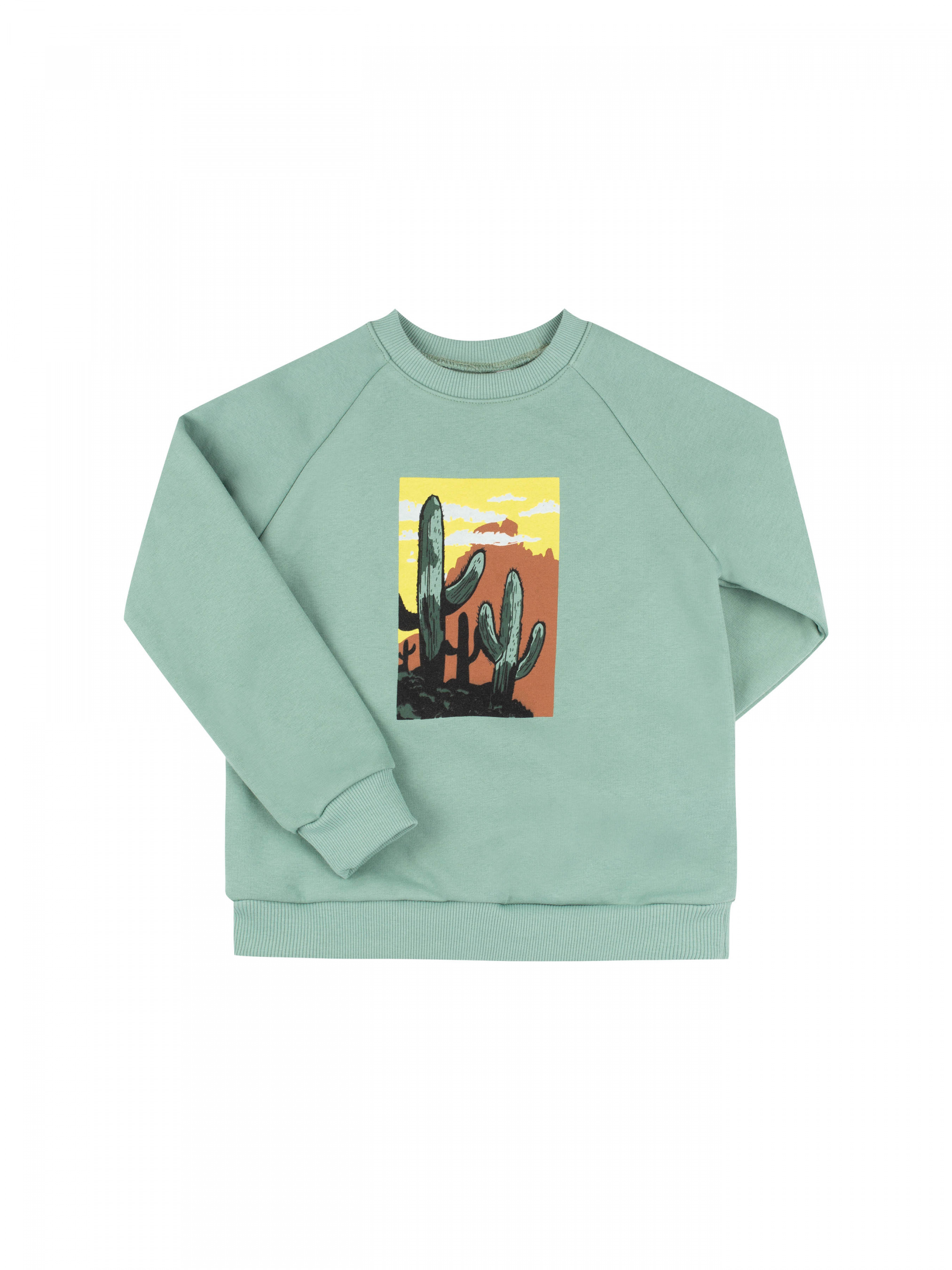 Свитшот с рукавом реглан,изготовлен из мягкого трикотажа утепленного флисом. Рукав длинный на манжете. Горловина, низ и манжет рукава отделаны качкорсой. Спереди интересная печать.