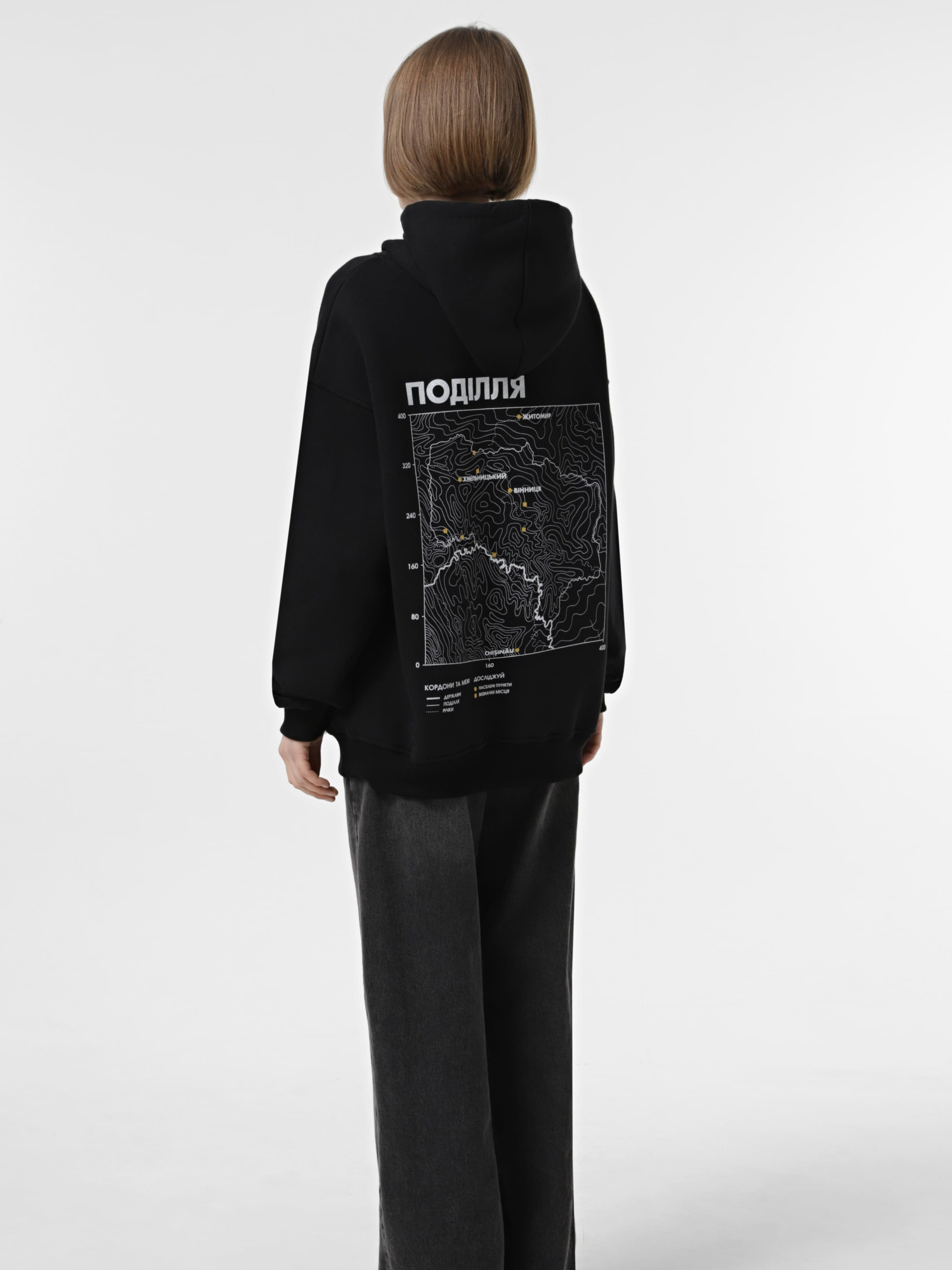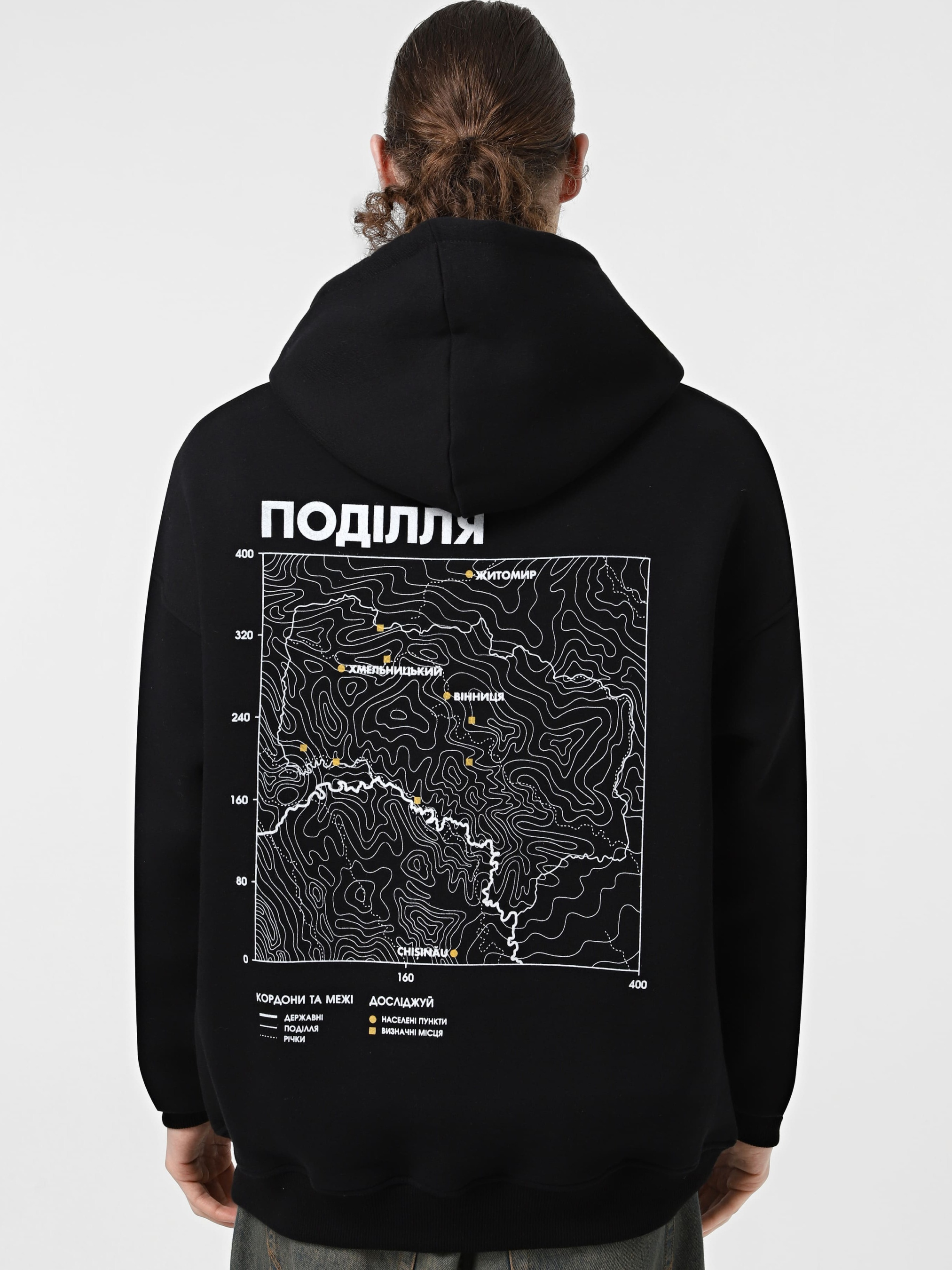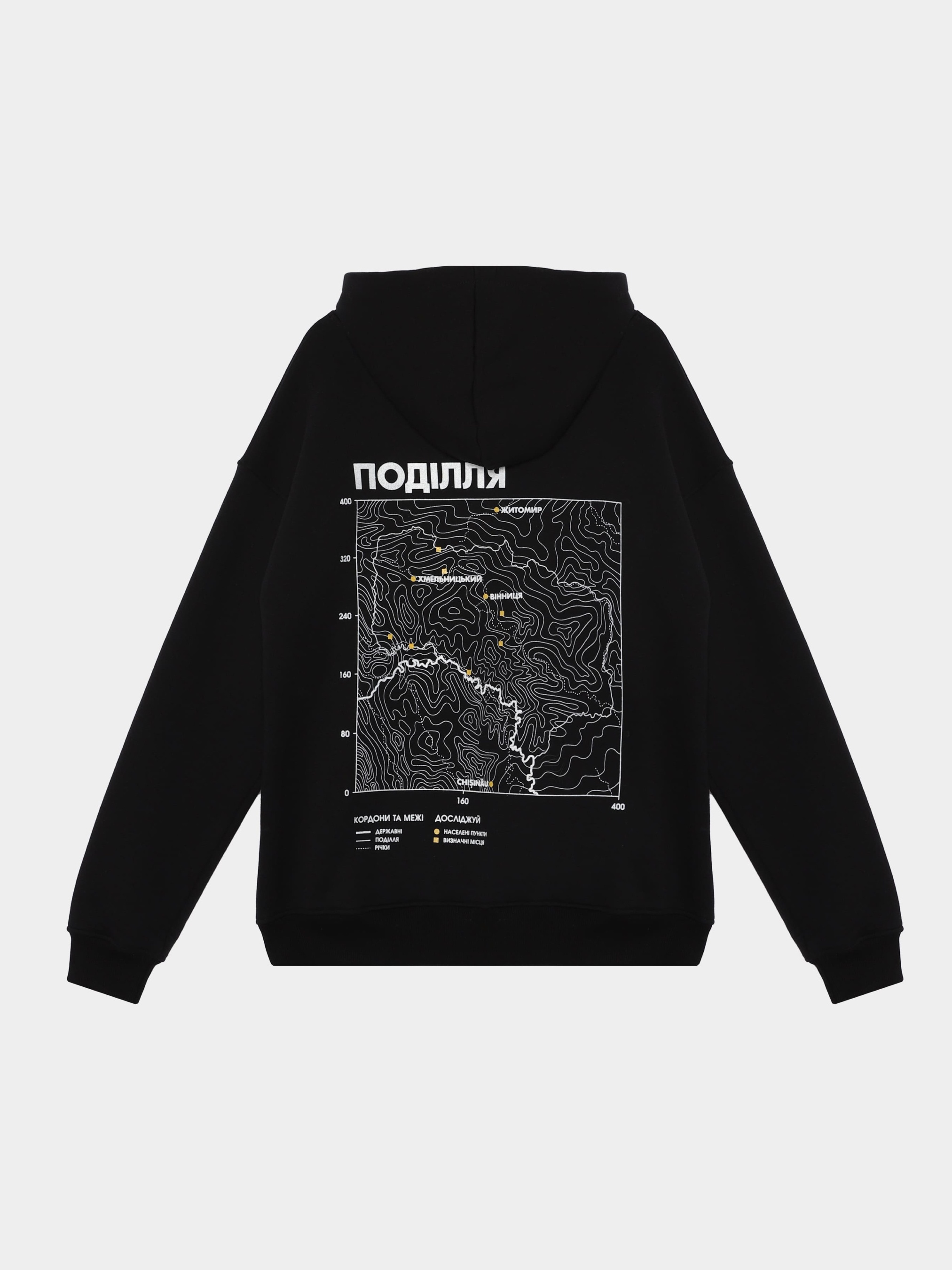 - досліджуй: Поді́лля, рідше Поді́льська земля́, Пони́ззя, Подністро́в'я, Побо́жжя — історико-географічна область України, яка має велику історію, наприклад Болохівська Земля, Терабовлянське Князівство, Подільське Князівство та інше охоплює територію сучасних Тернопільської, Хмельницької, Вінницької, північні райони Одеської областей, а також невеликі прилеглі території Житомирської, Черкаської, Миколаївської, Кіровоградської та Київської областей. До Подільської землі також належить північне Придністров'я. обласні центри - Хмельницький, Вінниця. визначні місця - Кам`янец-Подільський, Меджибіж, Бакота, Староконстянтинів, Тульчина, Немирів, Гайдамацький яр. - характеристика: Оверсайз худі чорного кольору, класична кишеня-кенгуру, шнурки з рефлективними елементами. - матеріали: Чорний колір, шовкотрафаретний друк, трьохнитка з начосом, склад 80% бавовна, 20% еластан. розмірна сітка: S: рукав 77 см, ширина 59 см, довжина 67 см. M: рукав 79 см, ширина 60 см, довжина 68 см. L: рукав 81 см, ширина 62 см, довжина 70 см. XL: рукав 83 см, ширина 65 см, довжина 71 см.