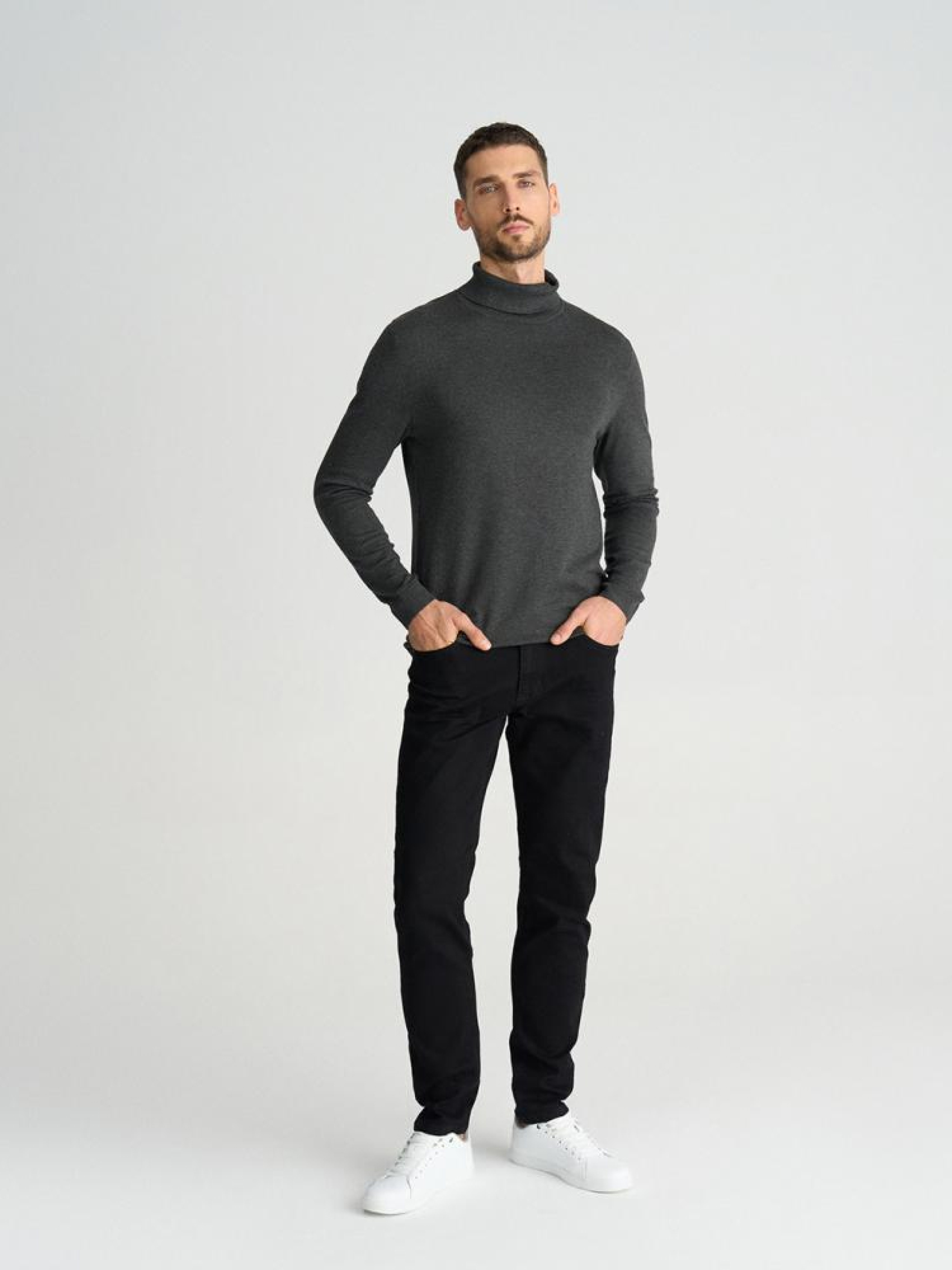 Свитер TOURDO 10045676 Тонкая водолазка из серой меланжевой вискозы: - приятный на ощупь трикотаж, - небольшой ярлык в боковом шве, - манжеты внизу и в рукавах. Сезон: осень/зима 2024 Состав: 70% вискоза 30% полиамид Уход: - не отбеливать - не сушить в сушильной машине - гладить максимум при темп. 110 °С - не химчистка - ручная стирка Размер на модели - XL Рост модели - 191 см