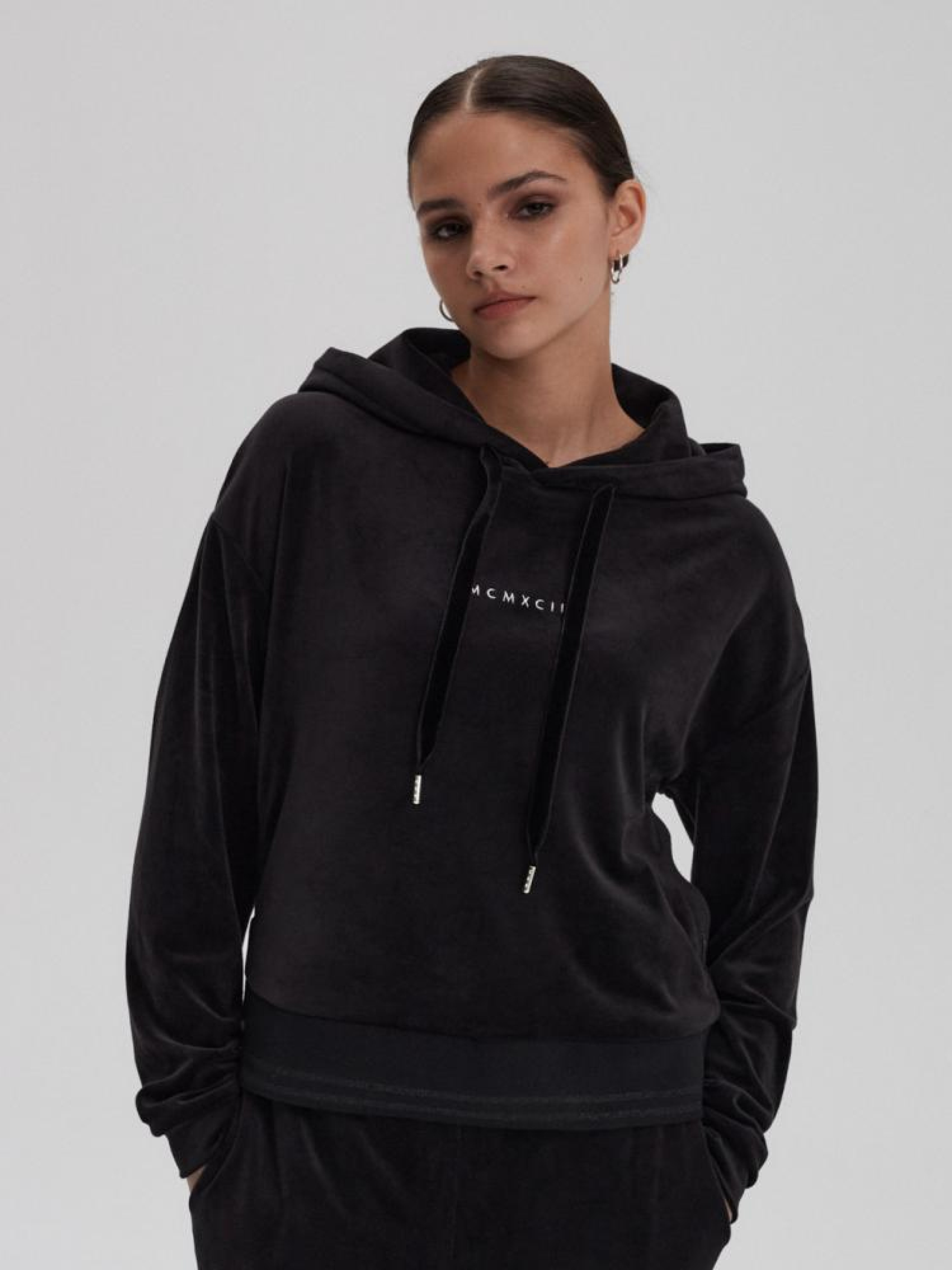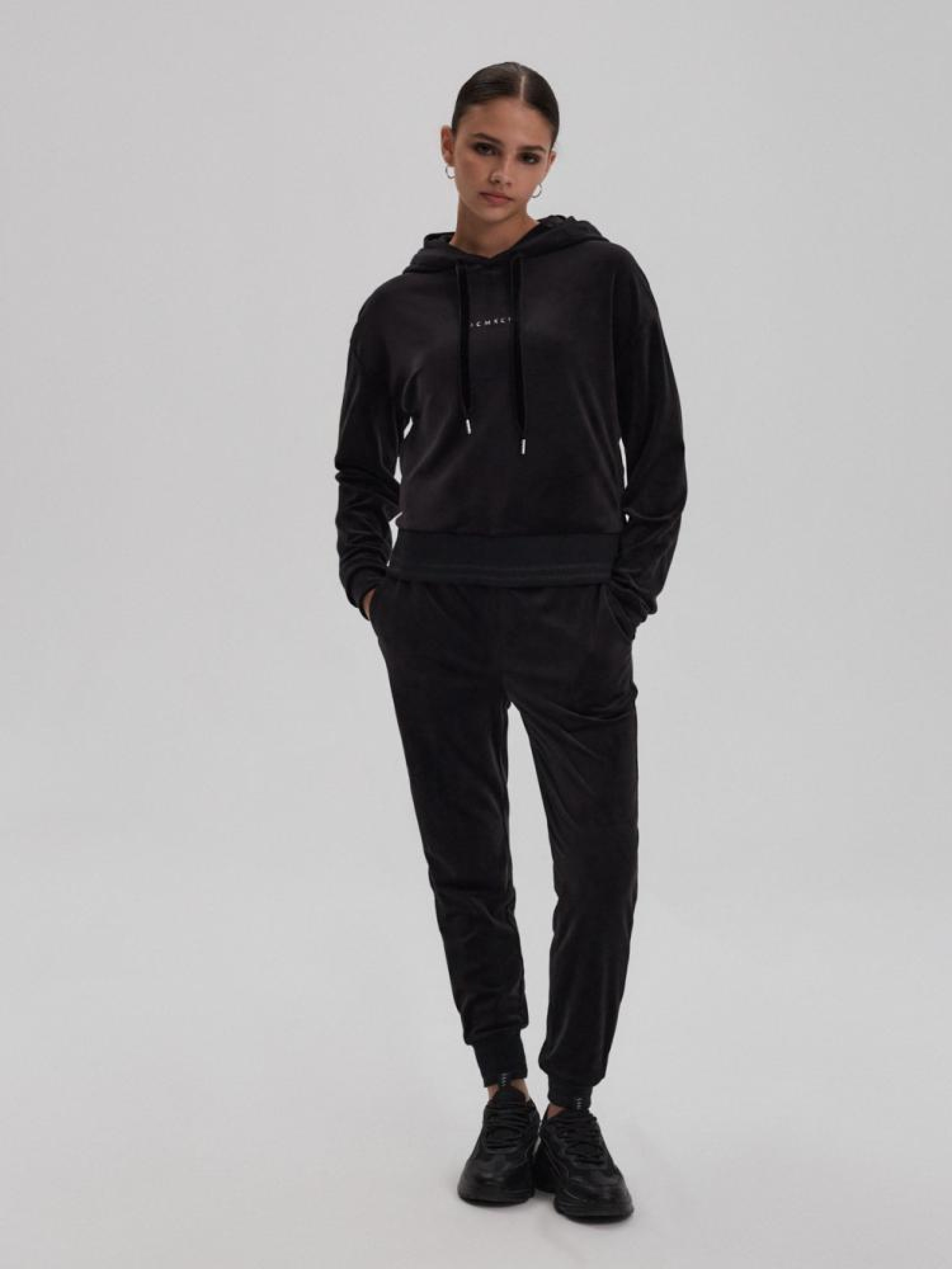 Толстовка AKACJA 10043354 Женская толстовка из коллекции премиум - имеет капюшон, который регулируется с помощью завязок, - низ обработан кантом с блестящим поясом, - вышивка спереди, - толстовка из коллекции премиум, - доступен в черном цвете. Сезон: осень/зима Состав: 95% полиэстер 5% эластан Уход: - стирка при максимум 30 °С - не отбеливать - не сушить в сушильной машине - гладить максимум при темп. 110 °С - не химчистка Размер на модели - S Рост модели - 171 см