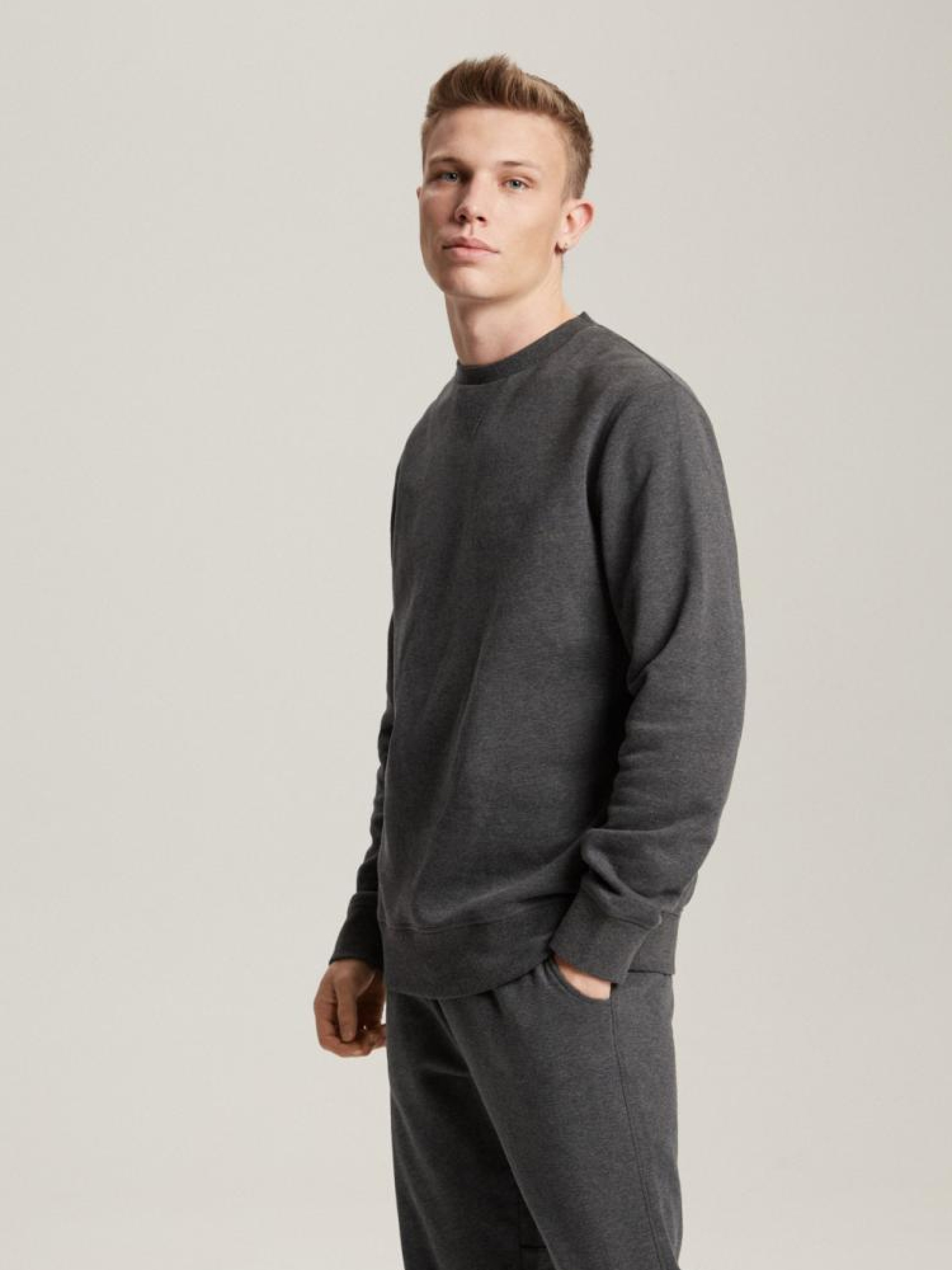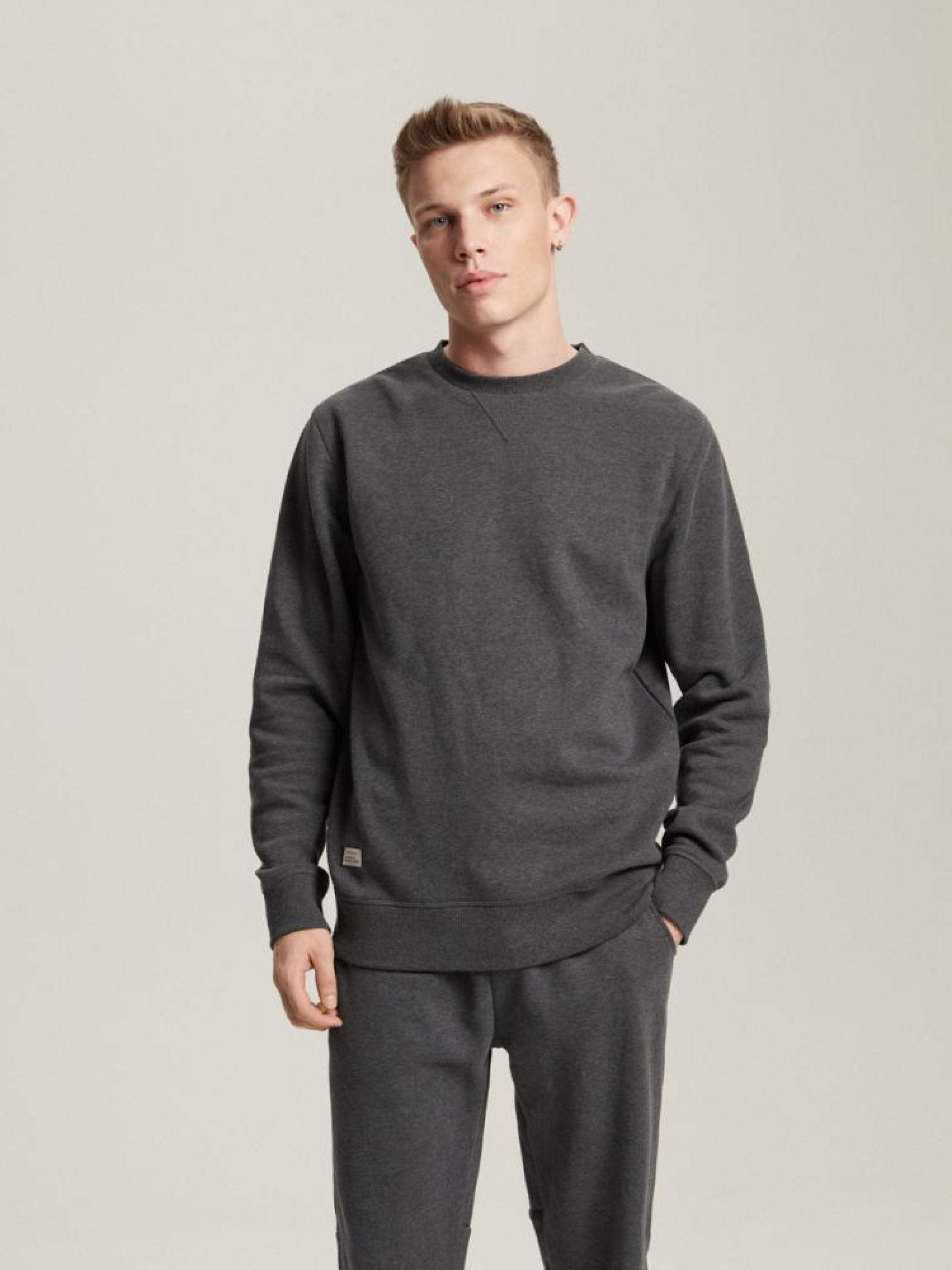 Минималистичный свитшот простого кроя с круглым вырезом, из линии Everbase: - декоративный ярлык расположен внизу спереди, - имеет характерную обработку под горловиной спереди, Сезон: Весна/Лето Состав: 80% хлопок, 20% полиэстер. Уход: - стирка при максимум 30 °С - не отбеливать - не сушить в сушильной машине - гладить максимум при темп. 150 °С - не химчистка Размер на модели – L Рост модели – 188 см