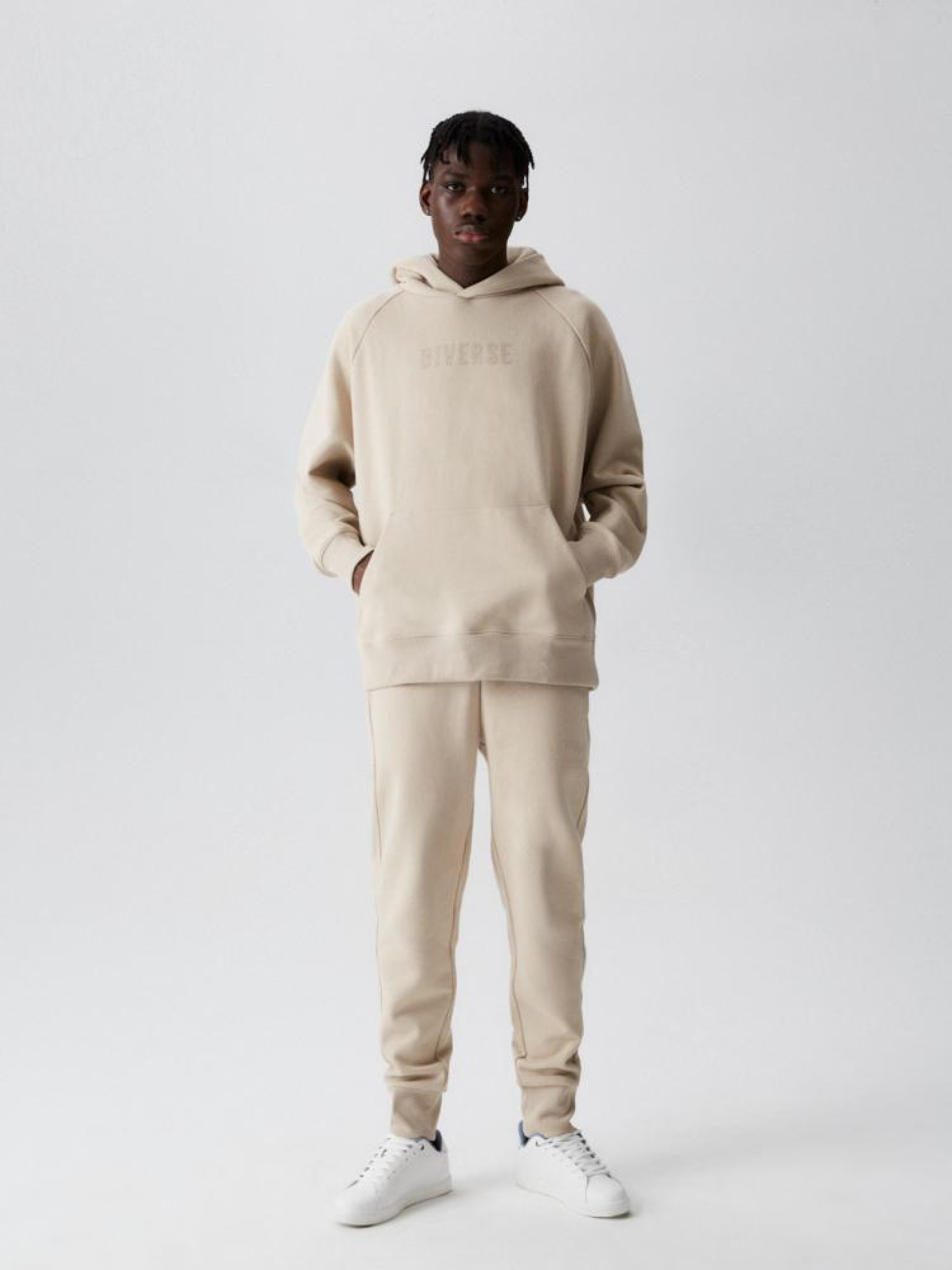 Худи кенгуру свободного кроя из коллекции NEW ATHLETICS. Изготовлен из высококачественной свитшотной ткани. Основные характеристики: -свободный крой, -минималистические детали, -принт с логотипом на груди, - песочный цвет. Сезон: Весна/Лето Состав: 80% хлопок, 20% полиэстер. Уход: - стирка при максимум 30 °С - не отбеливать - не сушить в сушильной машине - гладить максимум при темп. 150 °С - не химчистка Размер на модели – L Рост модели – 186 см