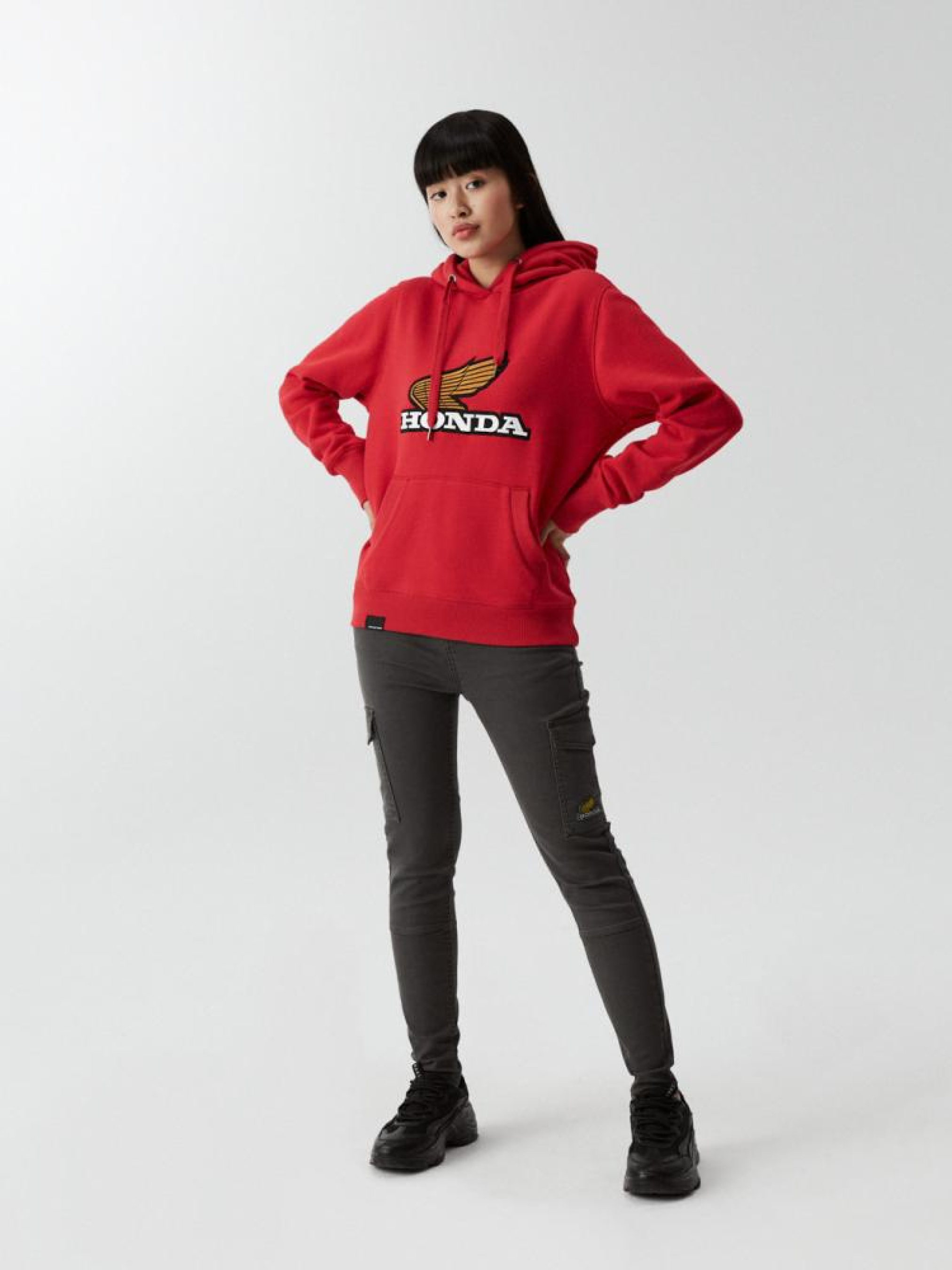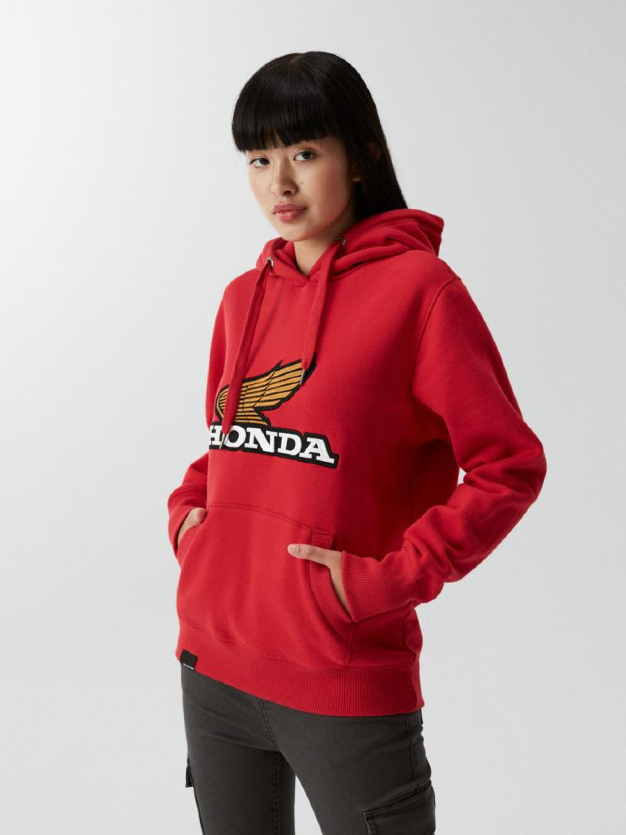 Худи с капюшоном и карманом, с логотипом HONDA: - классического кроя, - с карманом-кенгуру, - с капюшоном на шнурке, - с вышивкой на передней части, - изготовлен из мягкой трикотажной ткани, - доступно в красном цвете. Сезон: осень/зима. Состав: 80% хлопок, 20% полиэстер. Уход: - стирка при максимум 30 °С - не отбеливать - не сушить в сушильной машине - гладить максимум при темп. 150 °С - не химчистка Размер на модели – S Рост модели – 168 см
