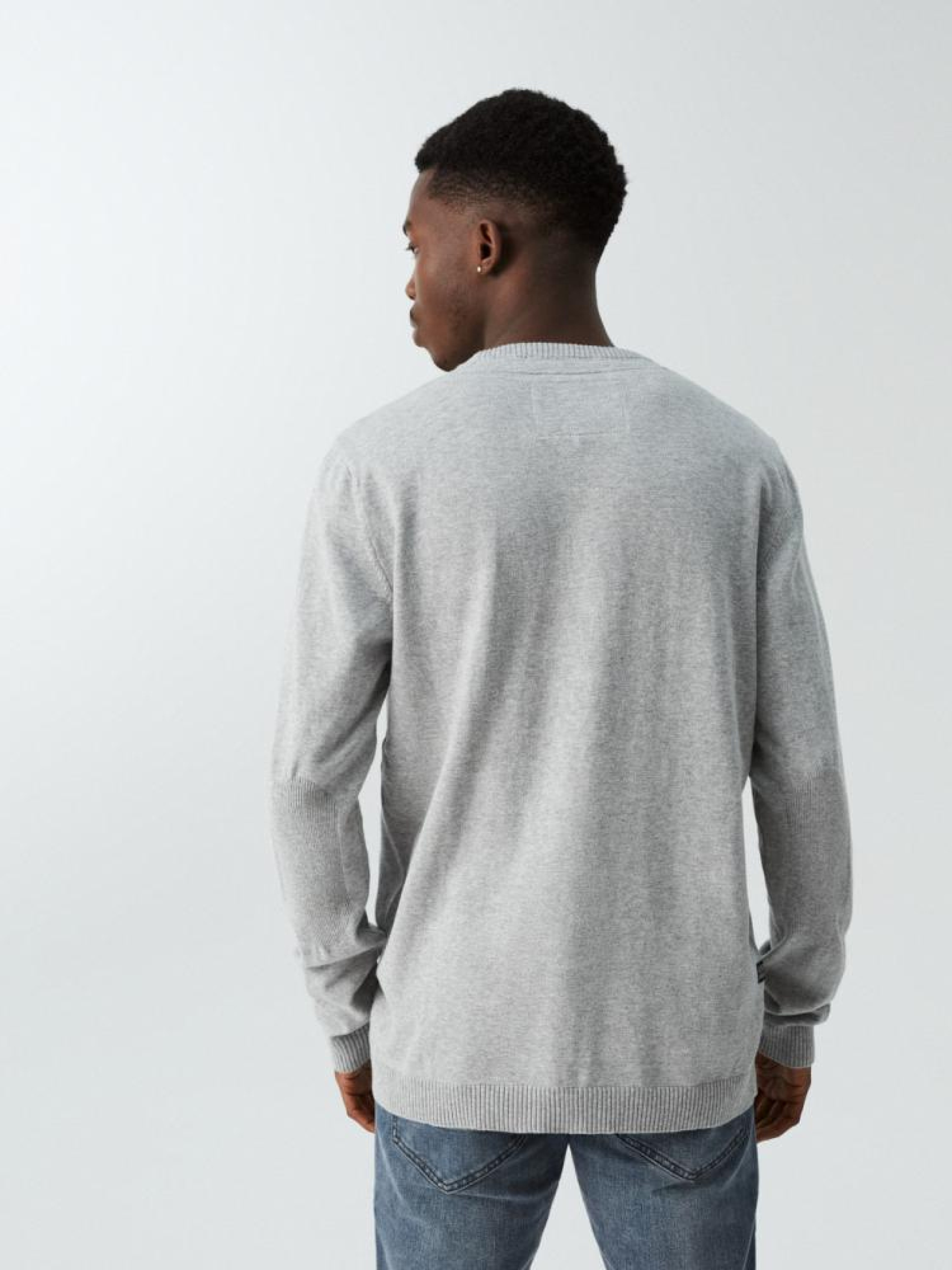 Хлопковый мужской свитер: - тонкий хлопковый свитер, - большая тисненая надпись на груди, - имеет рубчики на горловине, на рукавах и внизу, - в наличии серый меланж. Сезон: осень/зима. Состав: 100% хлопок. Уход: - не отбеливать - не сушить в сушильной машине - гладить максимум при темпе. 110 °С - не химчистка - ручная стирка Размер на модели – L Рост модели – 182 см
