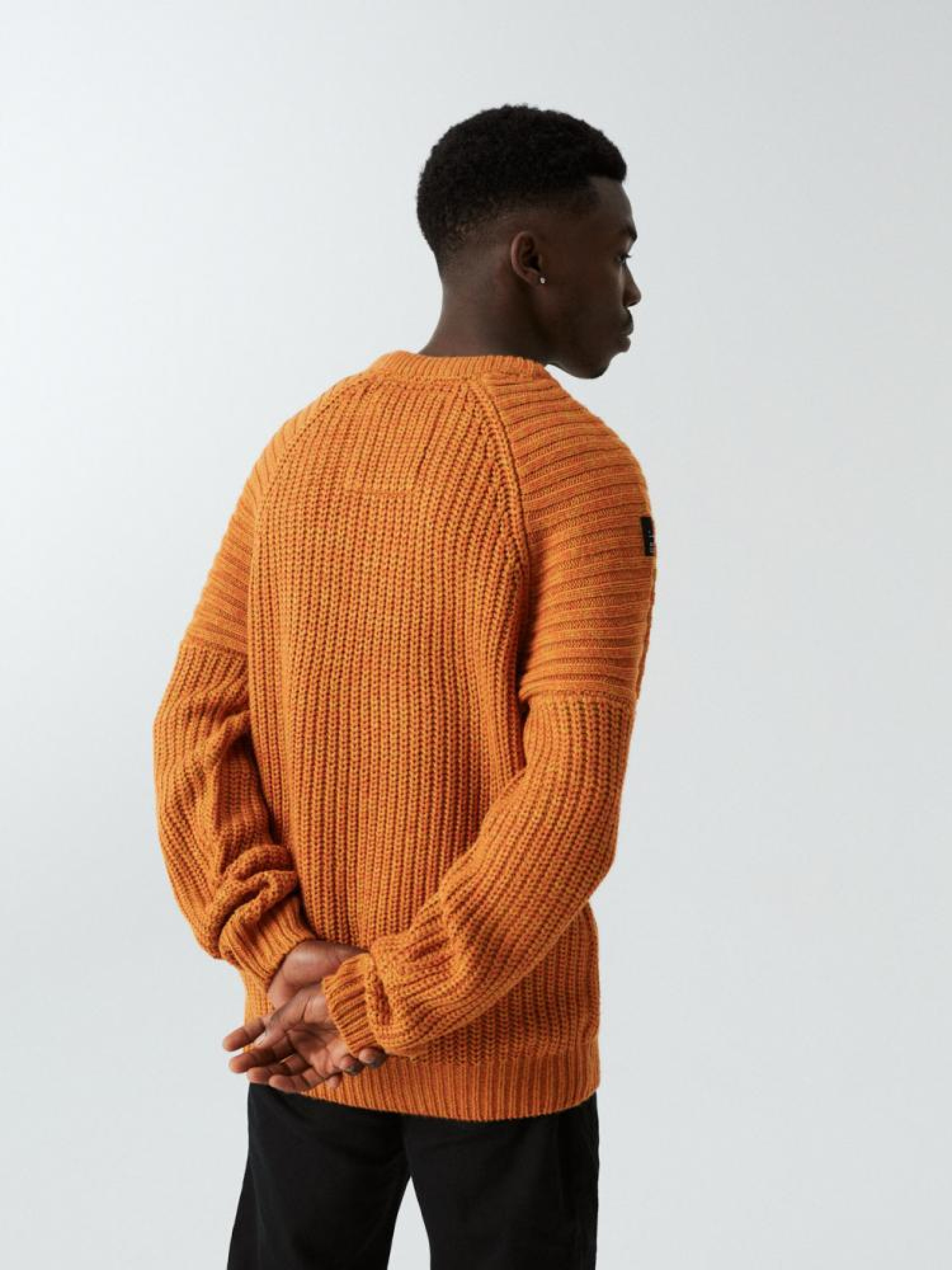 Мужской свитер свободного кроя: - свитер с рукавом реглан, - со значком на одном из рукавов, - Декоративная гофрированная горловина, на рукавах и внизу. Сезон: осень/зима. Состав: 100% акрил. Уход: - не отбеливать - не сушить в сушильной машине - гладить максимум при темп. 110 °С - не химчистка - ручная стирка Размер на модели – L Рост модели – 182 см