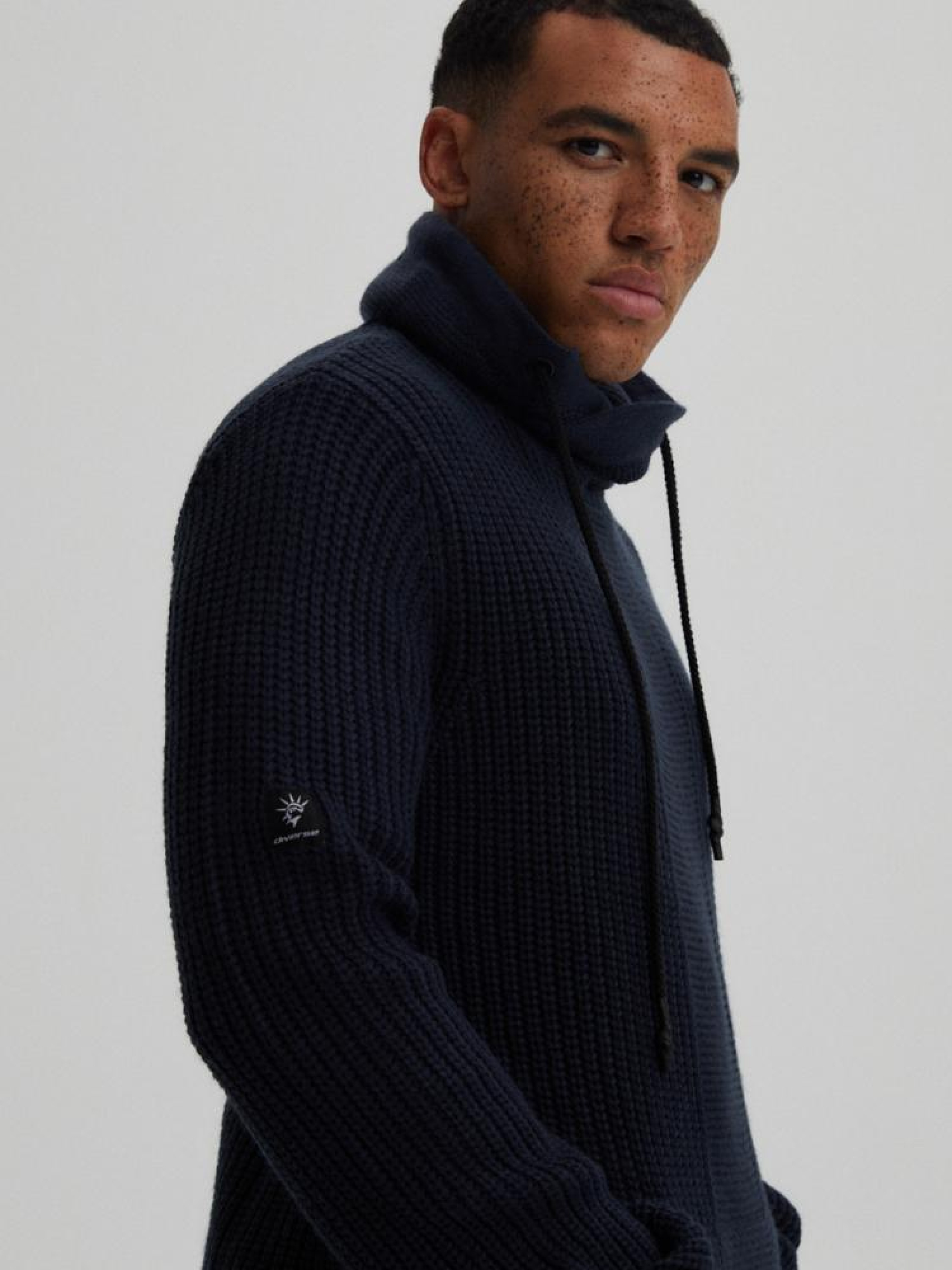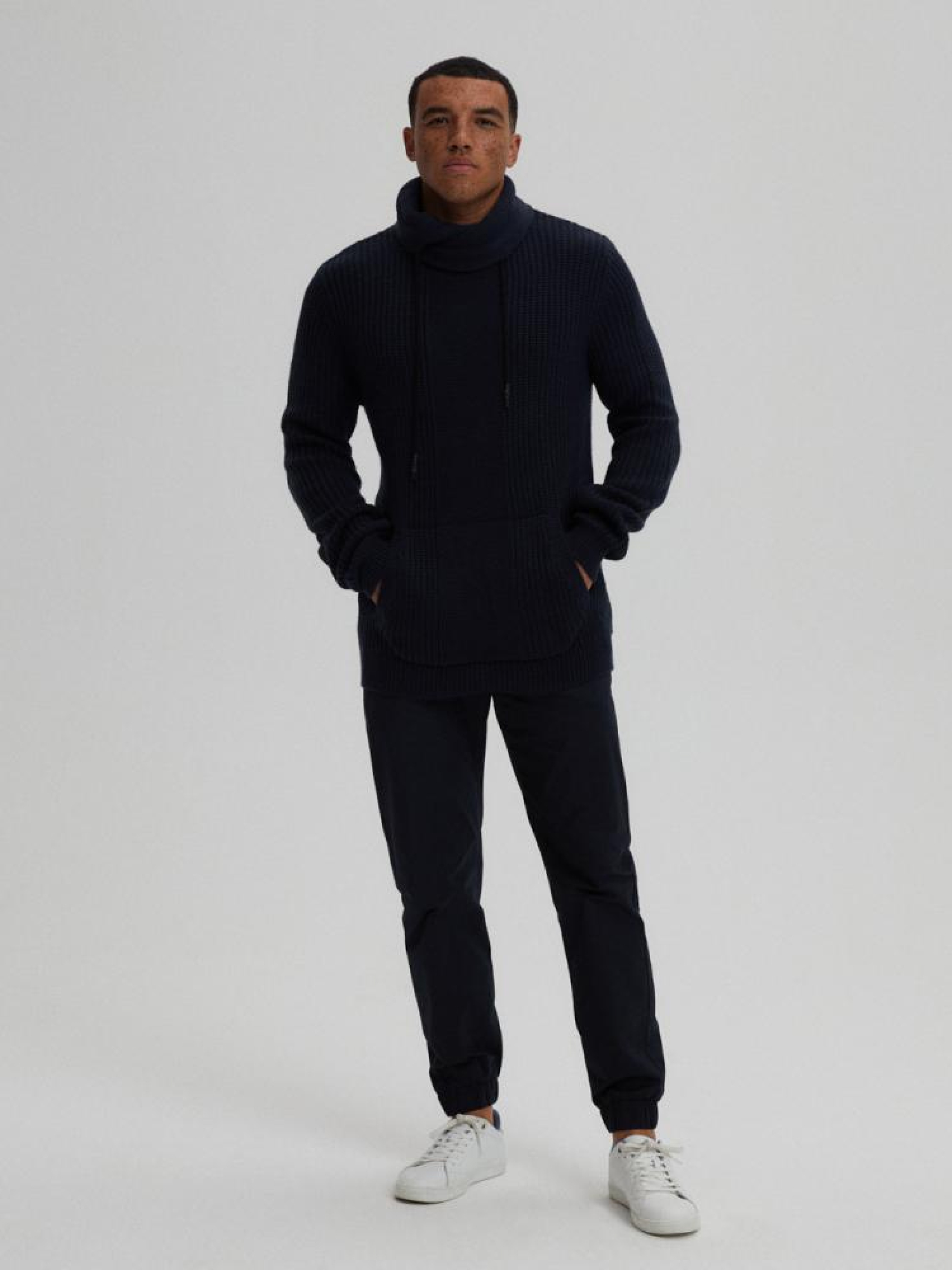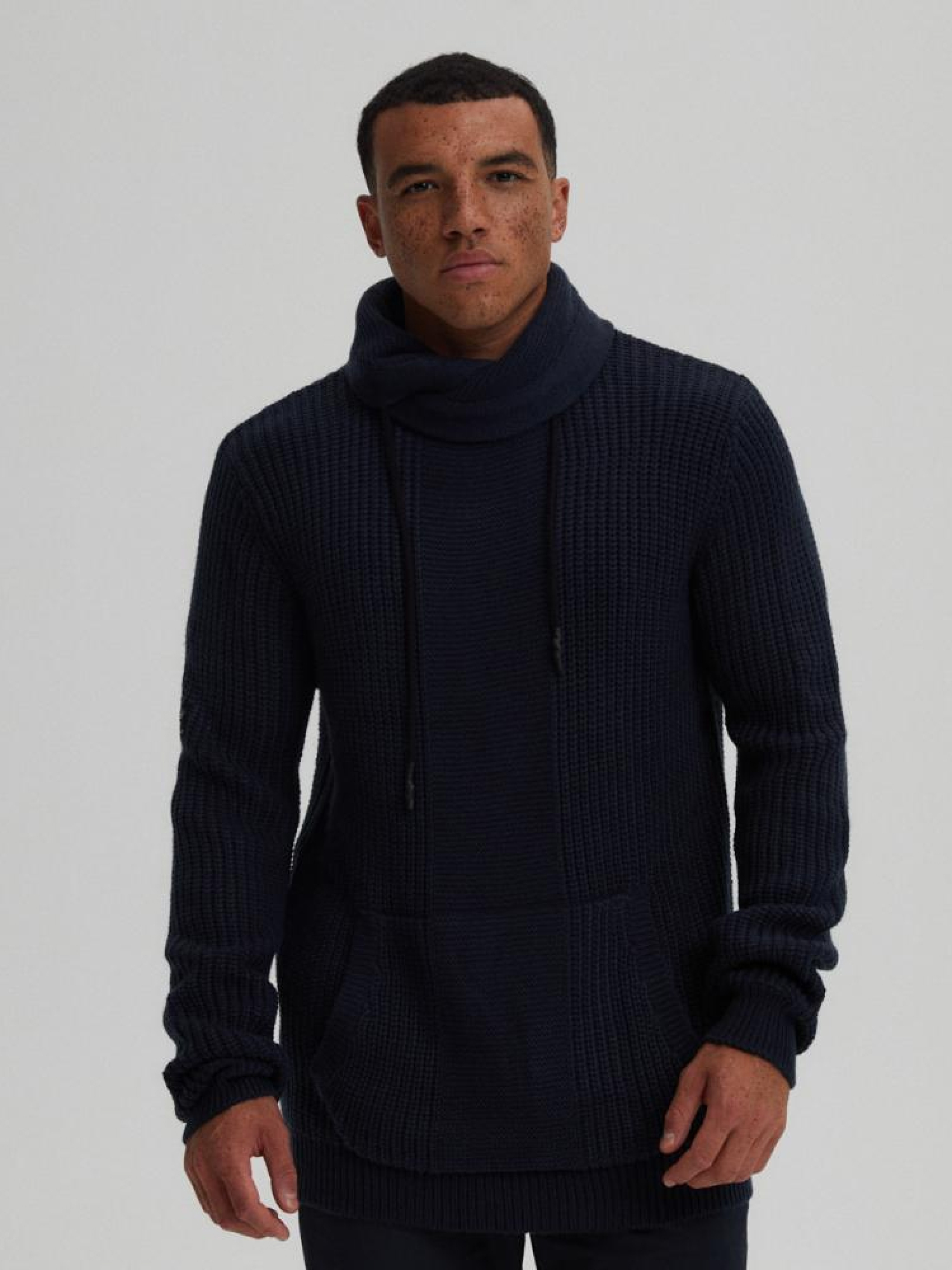 Свитер ROVEZZ 10042817 Модель немного военного характера: - с высоким отложным воротником на завязках, отделанных декоративной резинкой, - карман кенгуру спереди, - свитер с интересным плетением, Сезон: осень/зима Состав: 100% акрил Уход: - не отбеливать - не сушить в сушильной машине - гладить максимум при темп. 110 °С - не химчистка ручная стирка Размер на модели - XL Рост модели - 187 см