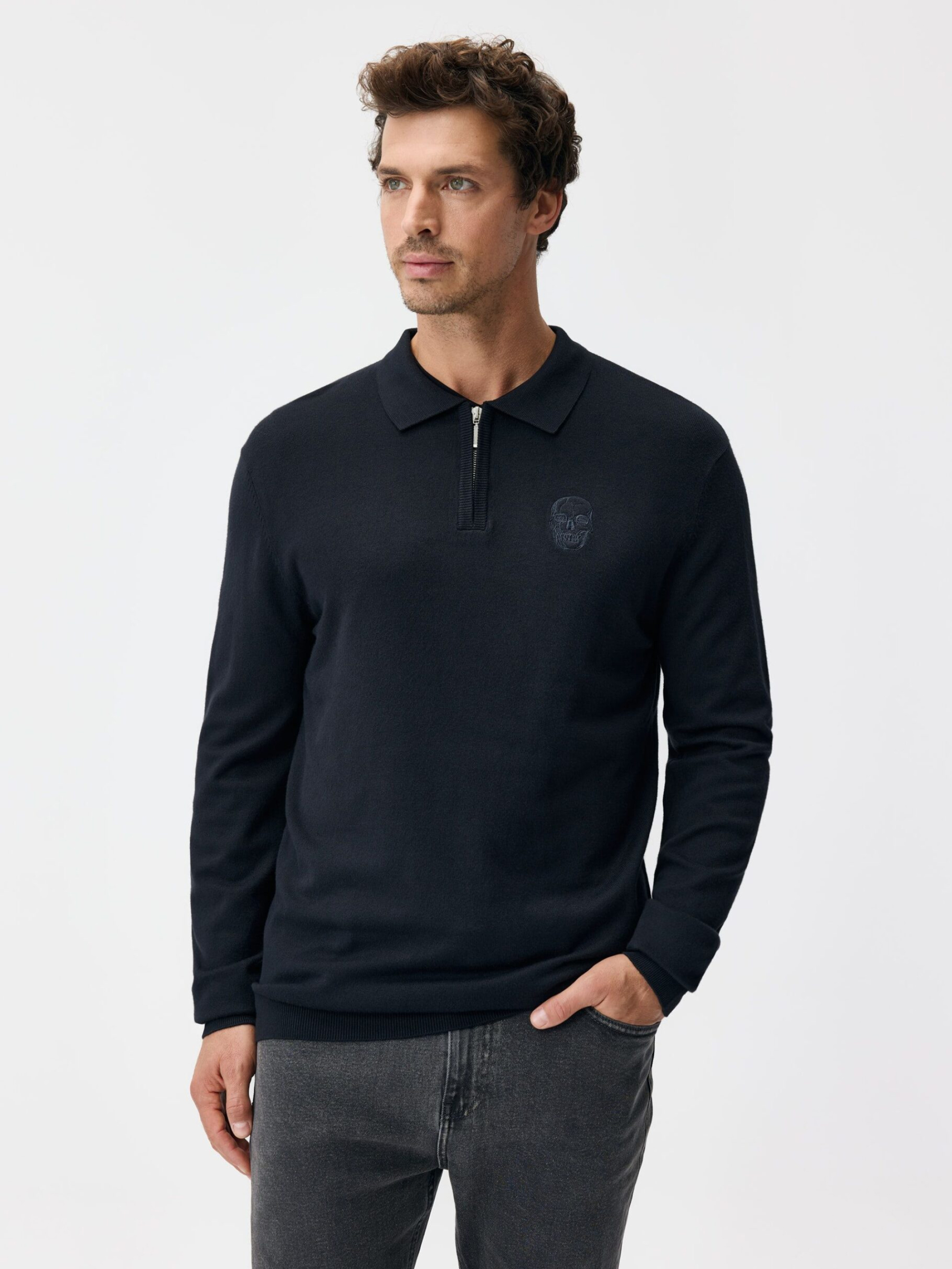 Свитер PRM SK ZIPP / ID: 10048127 Рост модели: 187 см Размер товара: XL элегантный свитер с застежкой: - классический крой, - стильный воротник, придающий шик, - изящная вышивка с черепом, - длинные рукава с манжетами, - изготовлен из вискозы с добавлением полиамида, что обеспечивает мягкость и тепло. Внешний состав 70% вискоза 30% полиамид Уход: - не отбеливать - не сушить в сушильной машине - гладить максимум при темп. 110 °С - не подвергать химчистке - ручная стирка Размер: М L XL XXL Длина по центру спинки: 70 72 74 76 Ширина снизу: 43 45 47 49 Ширина подмышками: 51 53 55 57 Длина рукава: 66,5 68 69,5 71