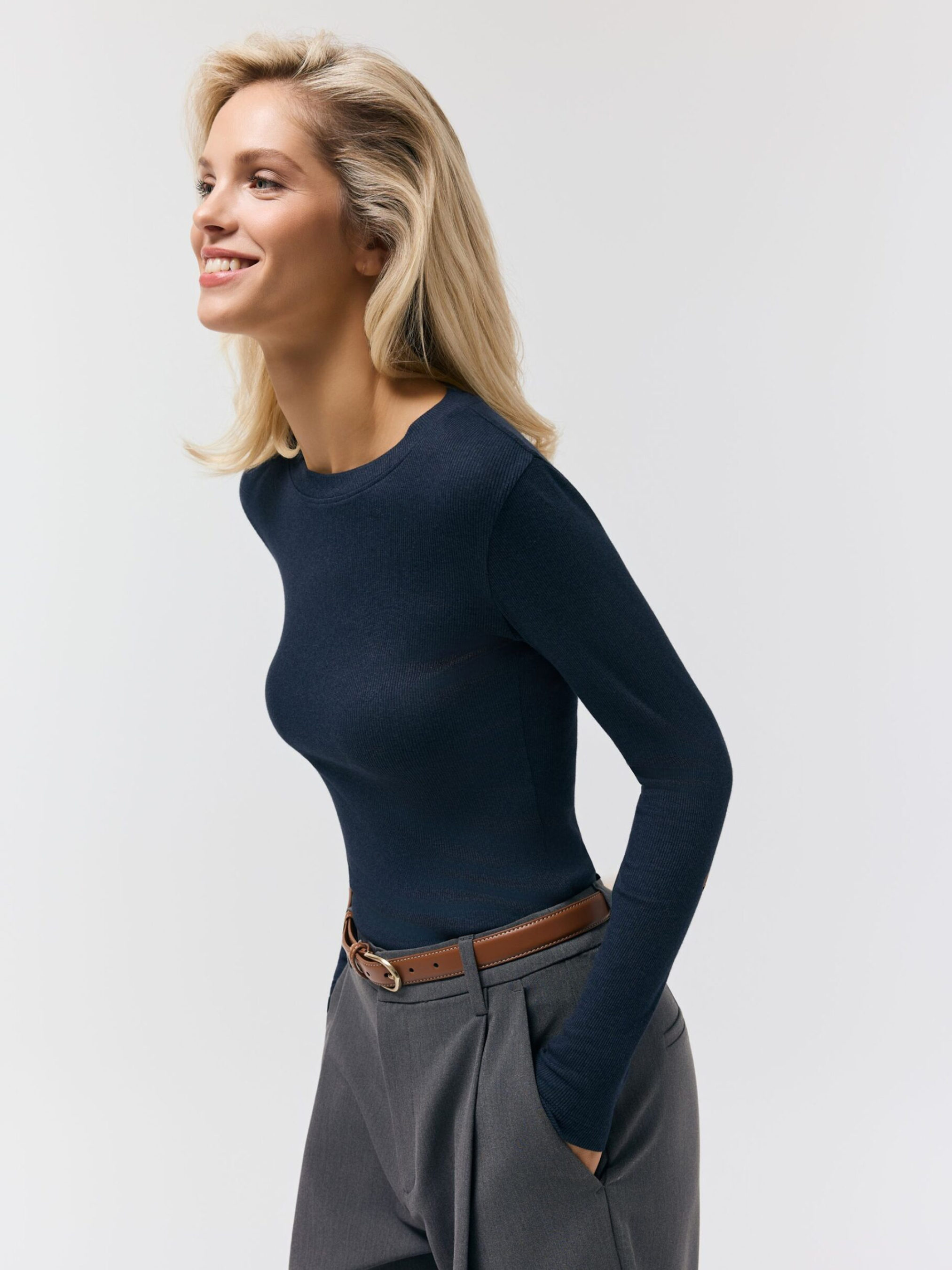 AMUSED 261 / ID: 10048855 Рост модели: 175 см Размер товара: S Женский лонгслив с длинными рукавами из рубчатого трикотажа - приталенный крой, круглый вырез горловины и приталенные длинные рукава. Классический крой - основа для многих стилей. Внешний состав 60% хлопок 35% вискоза 5% эластан Уход: - стирка при максимум 30 °С - деликатная стирка - не отбеливать - не сушить в сушильной машине - гладить при максимальной температуре 110 °C - не подвергать химчистке Размер: XS S* М L XL Общая длина спинки: 51 53 55 57 59 Ширина снизу: 34,5 36,5 38,5 40,5 42,5 Ширина груди: 33 35 37 39 41 Внешняя длина рукава: 56 57 58 59 60